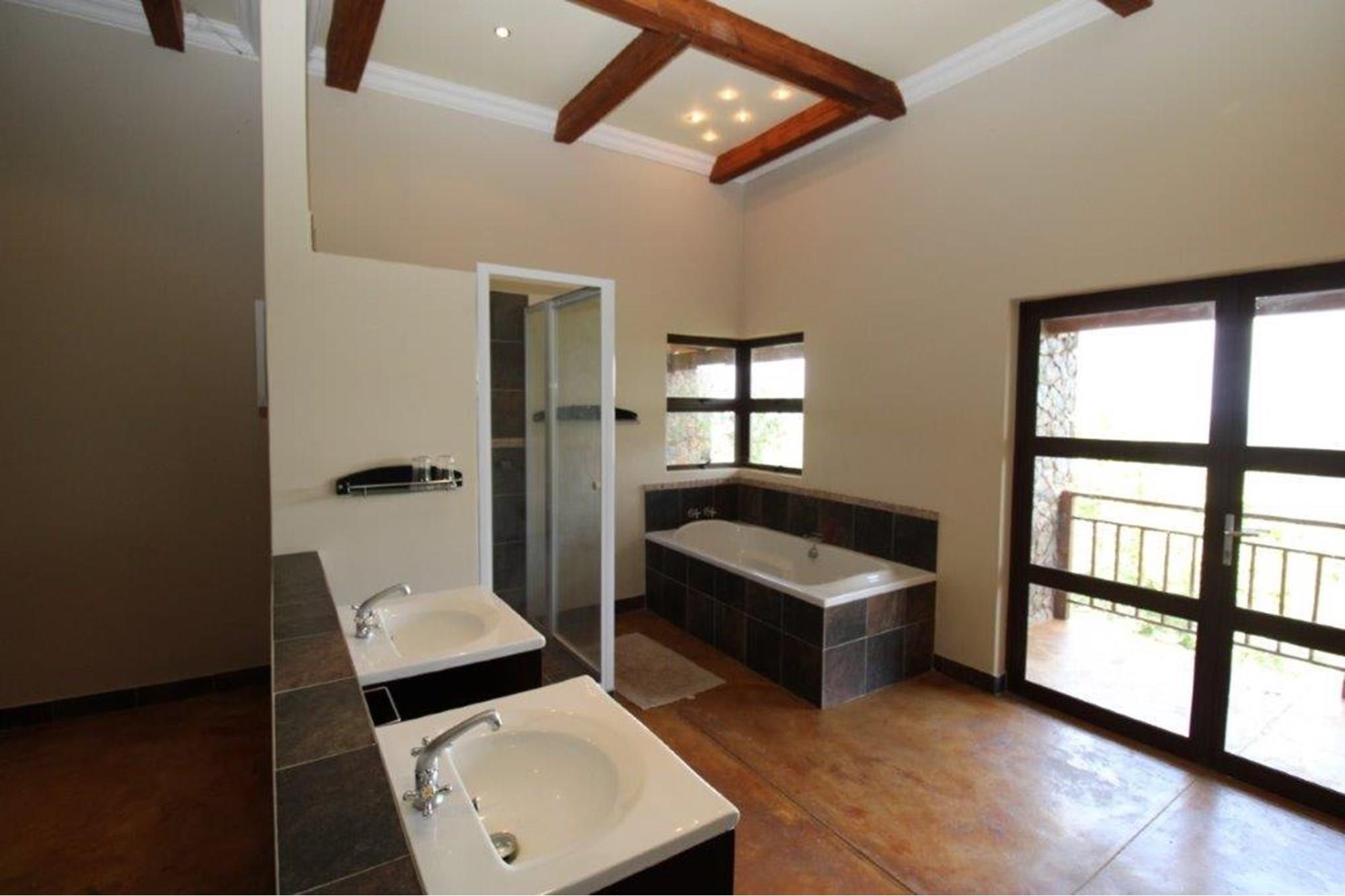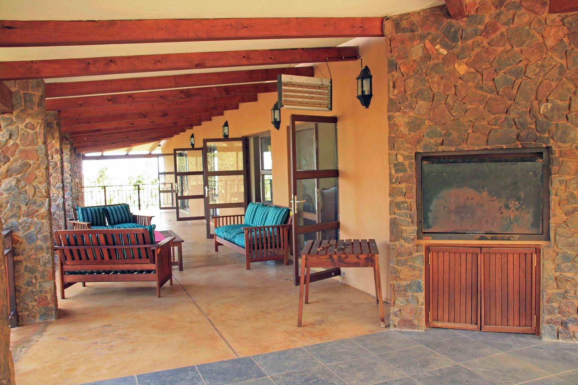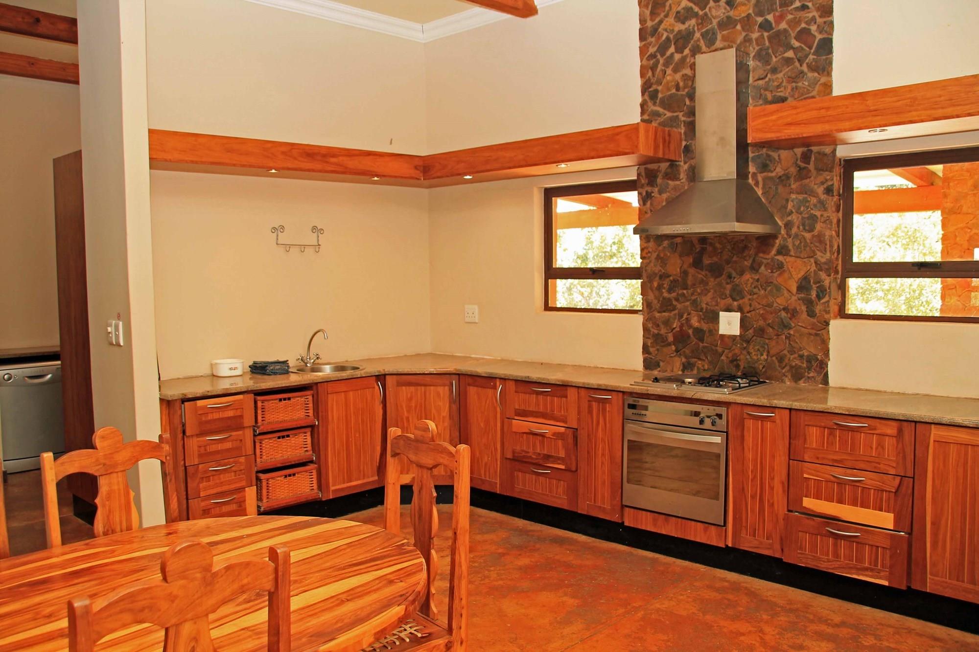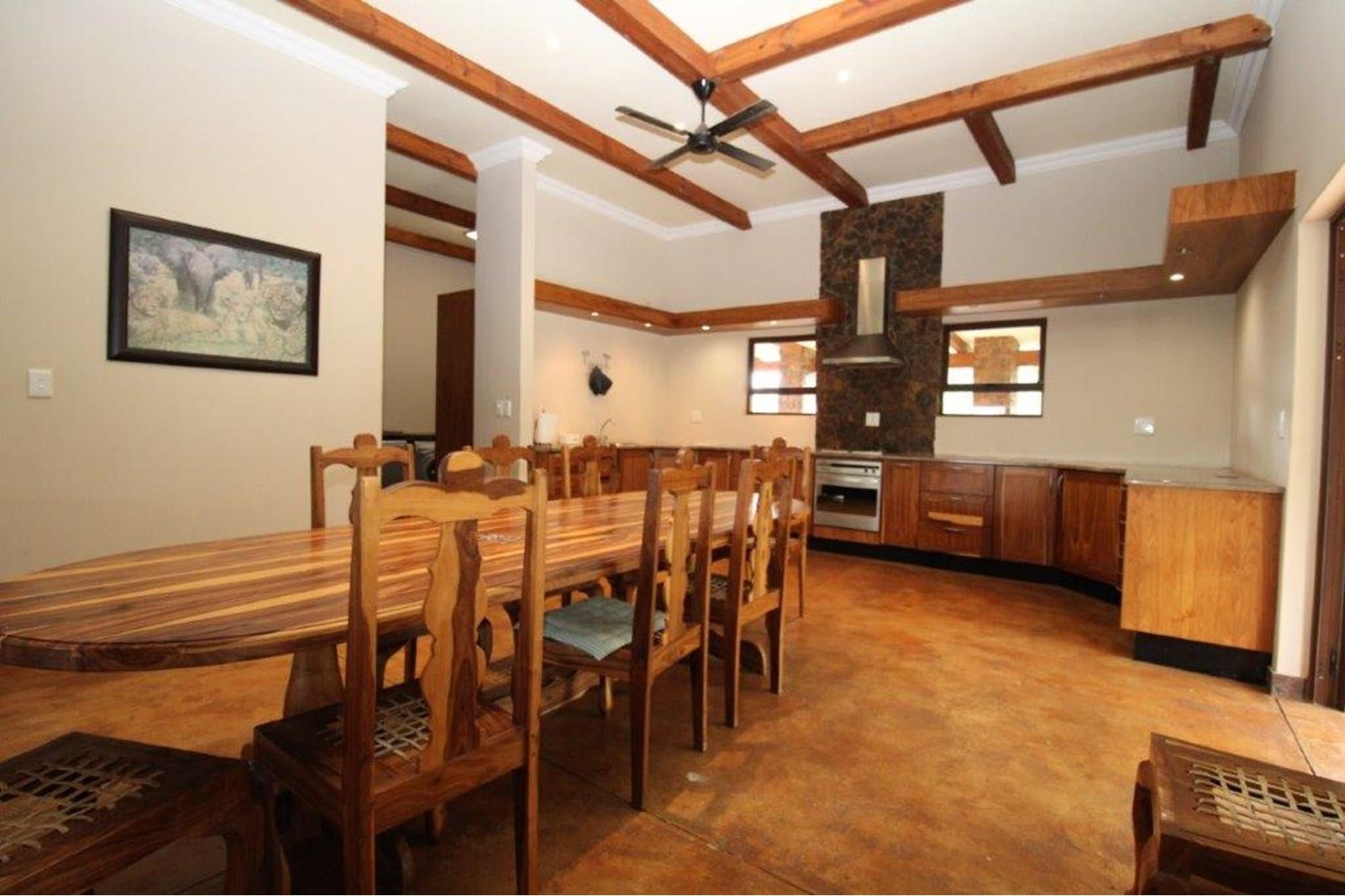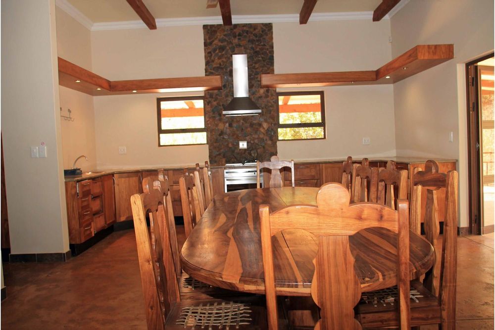 Thaba Moriri, near Bela Bela, South Africa - Double story 5 bedroom house in private game reserve with breathtaking views. 3 Bedrooms (two en-suite) in main house with lounge, dining room, kitchen, scullery and large pantry. Large patio flanking 3 sides of the house. Separate flat on the ground floor with kitchen, lounge/dining area, and two bedrooms. Boma Braai area with pool room and bar and multiple store rooms. Triple garage (two with roll down doors). Space in patio deck for sunken jacuzzi. The kitchen is equipped with a combination gas and electric stove. The passage to the laundry area has large space for two fridge/freezers. A beautiful fireplace in the lounge/open plan area creates a cozy and romantic atmosphere. The boma braai area is complemented with a built-in braai on the patio for the rainy days. The house has spectacular views of the foothills of the Waterberg.