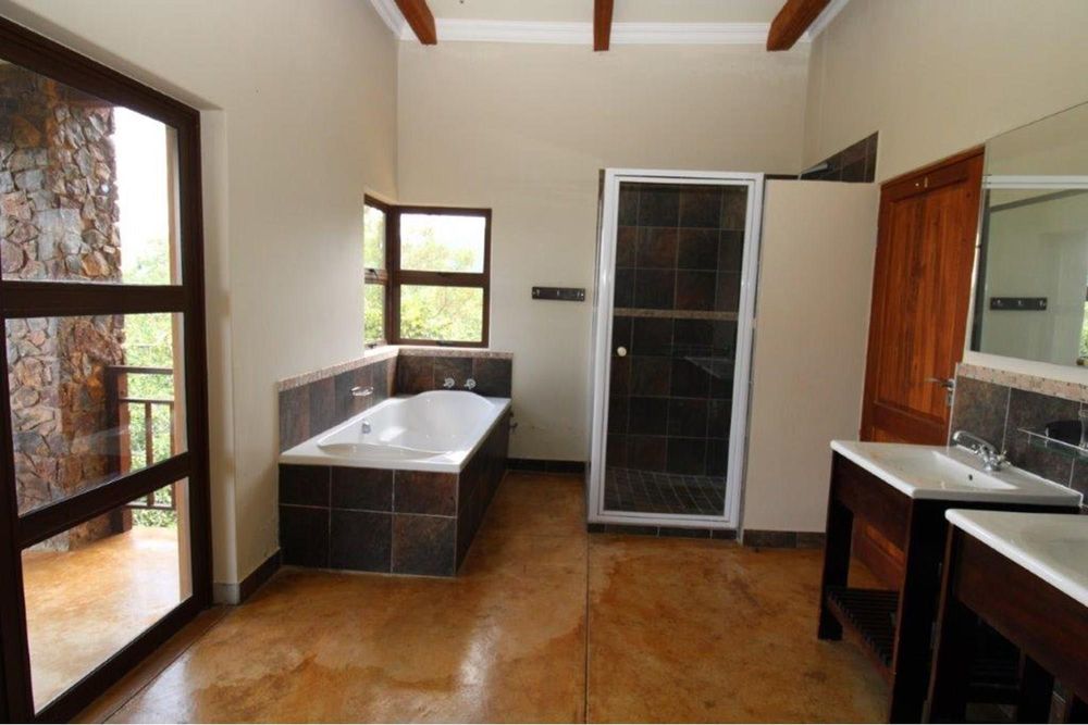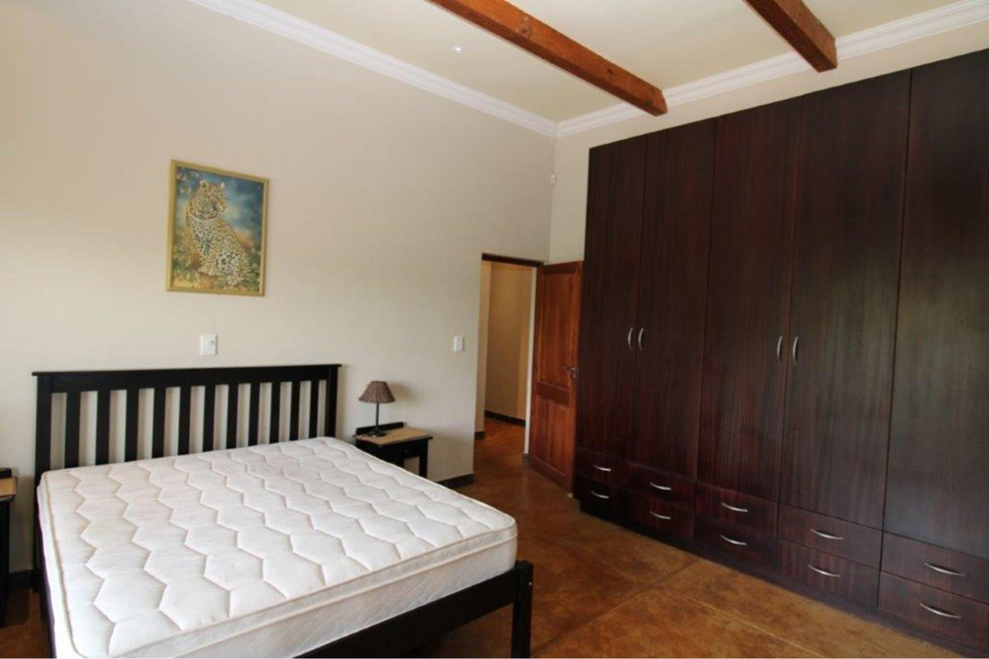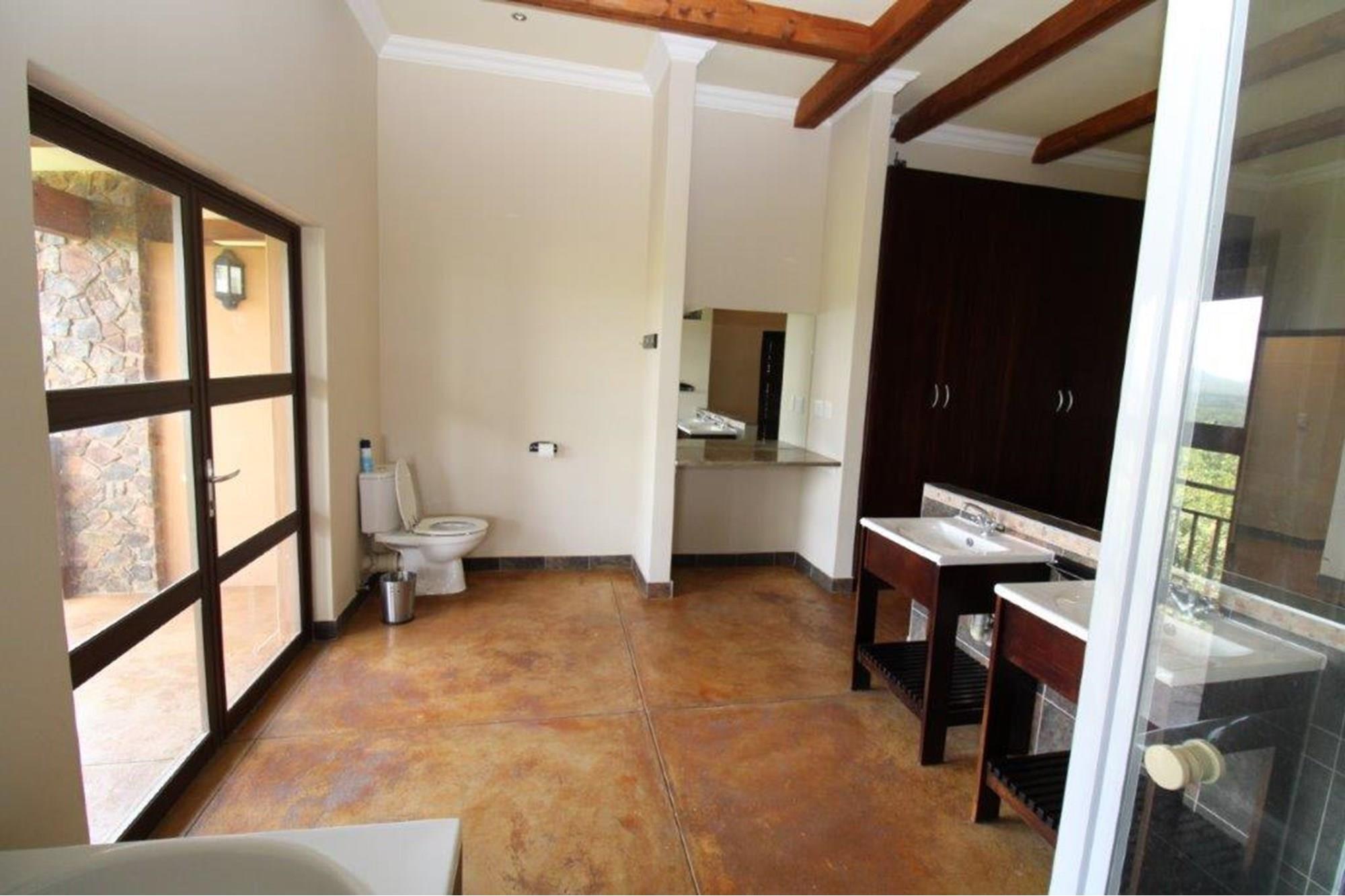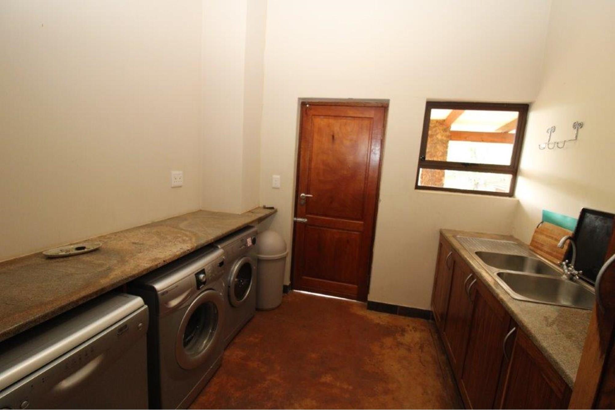 Thaba Moriri, near Bela Bela, South Africa - Double story 5 bedroom house in private game reserve with breathtaking views. 3 Bedrooms (two en-suite) in main house with lounge, dining room, kitchen, scullery and large pantry. Large patio flanking 3 sides of the house. Separate flat on the ground floor with kitchen, lounge/dining area, and two bedrooms. Boma Braai area with pool room and bar and multiple store rooms. Triple garage (two with roll down doors). Space in patio deck for sunken jacuzzi. The kitchen is equipped with a combination gas and electric stove. The passage to the laundry area has large space for two fridge/freezers. A beautiful fireplace in the lounge/open plan area creates a cozy and romantic atmosphere. The boma braai area is complemented with a built-in braai on the patio for the rainy days. The house has spectacular views of the foothills of the Waterberg.