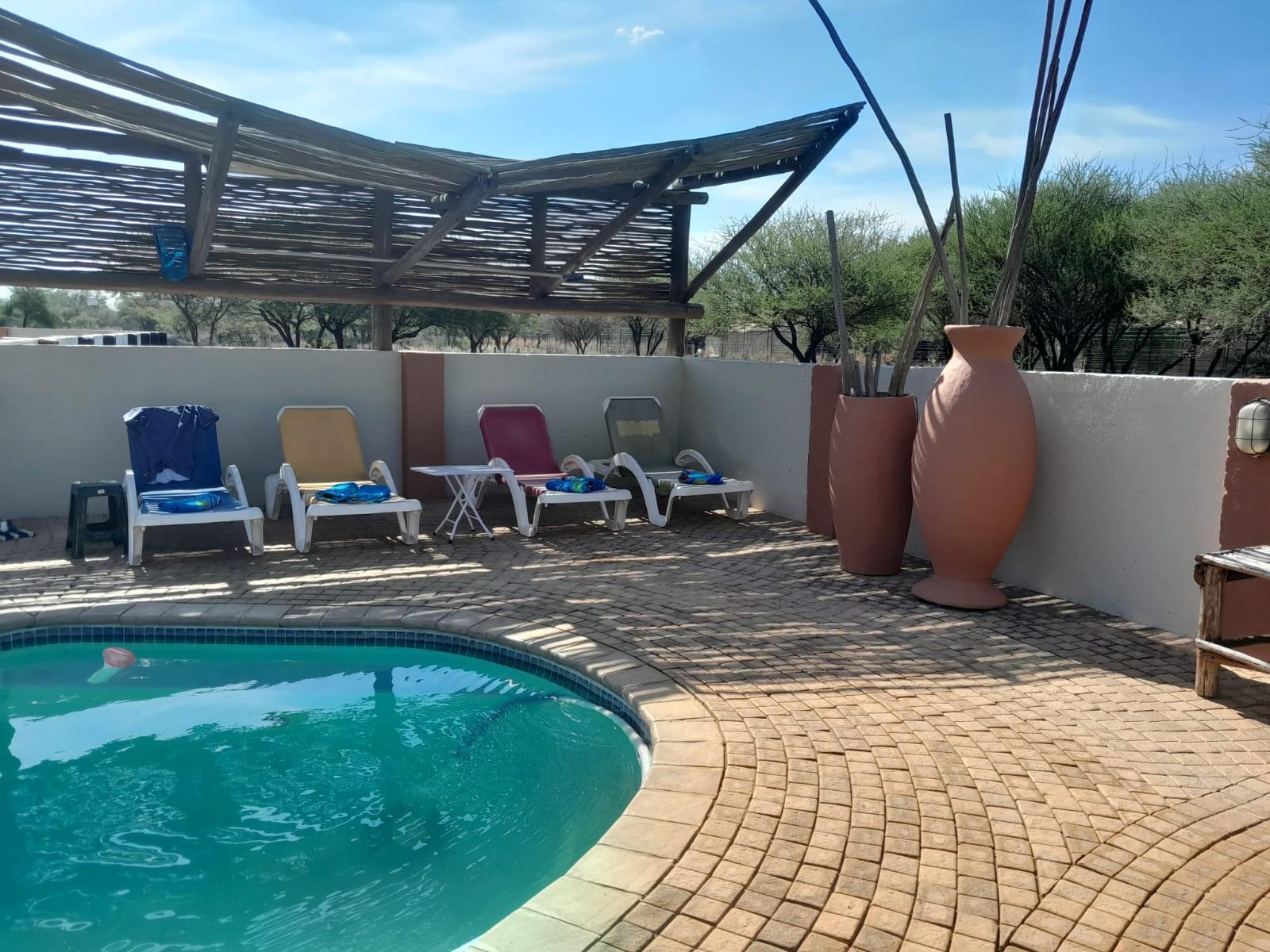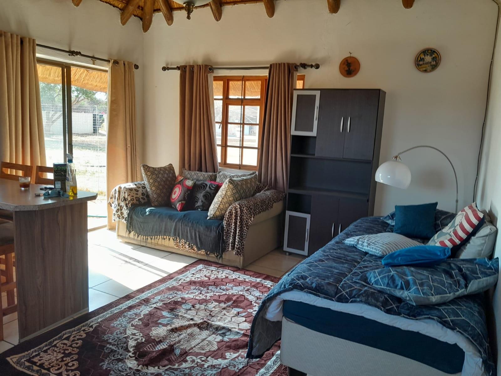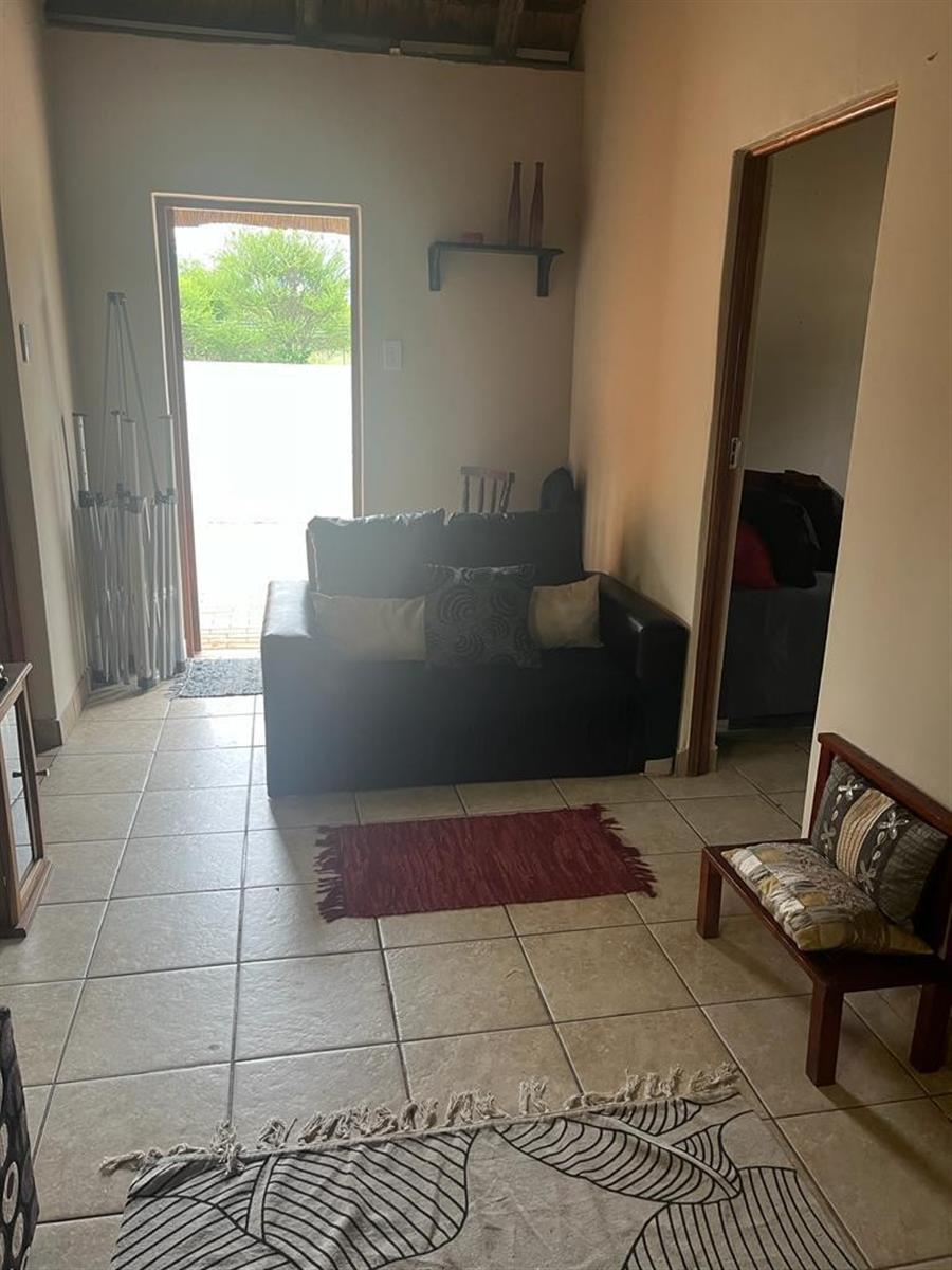 The second house offers two bedrooms, a bathroom, and an open lounge and kitchen, complemented by its own lapa for relaxed bushveld evenings.
