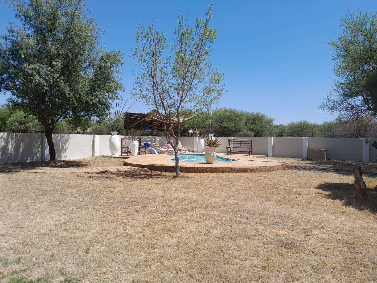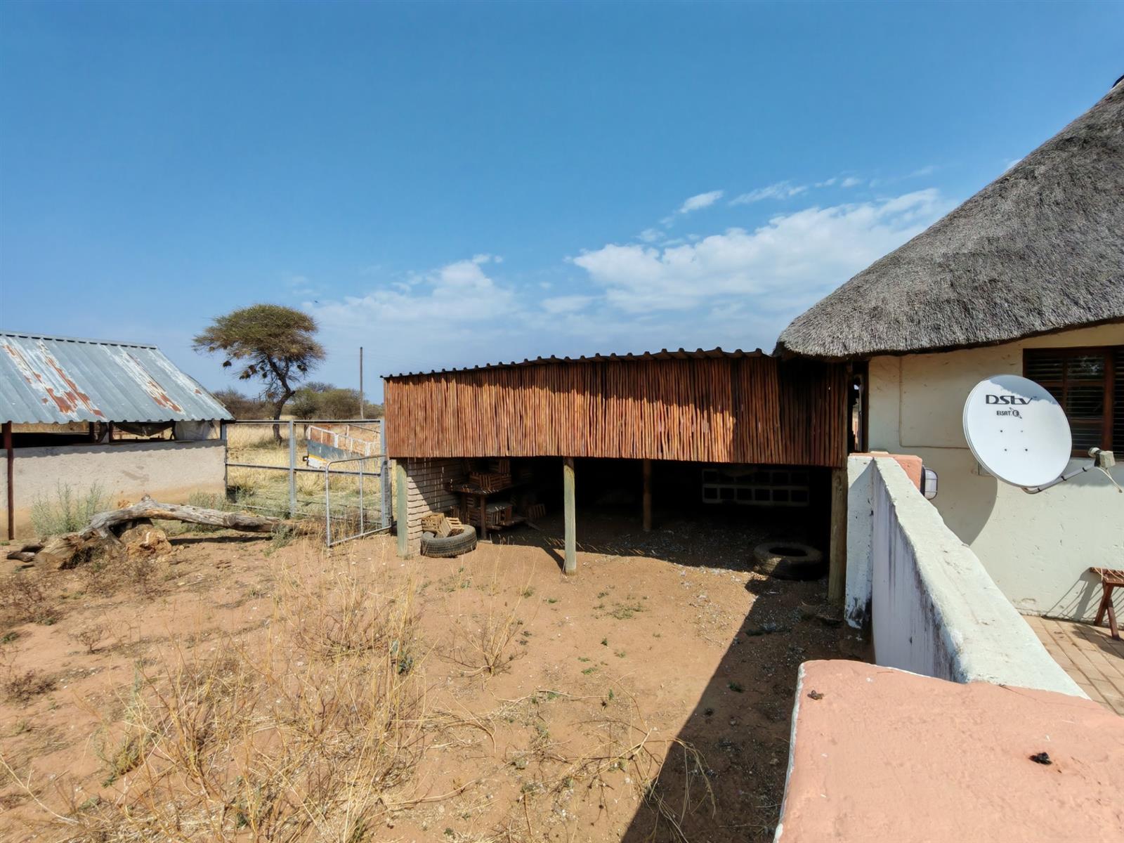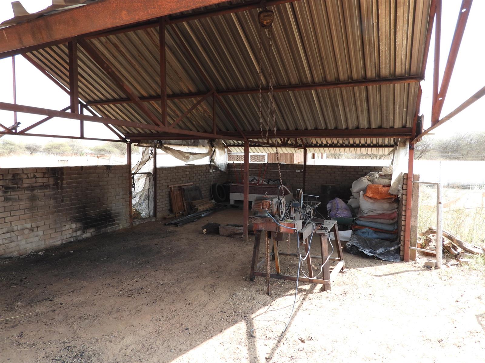The communal areas add even more value, with a swimming pool creating a central space for relaxation and enjoyment. The property is well-equipped for farming and lifestyle purposes, featuring a shed with livestock handling facilities, a storeroom, and a laundry room. Workers’ housing is also available on-site. Practical infrastructure includes prepaid electricity, a strong borehole supplying water to three reservoirs, and an irrigation system that ensures the land remains productive. For vehicles, three carports provide sheltered parking.