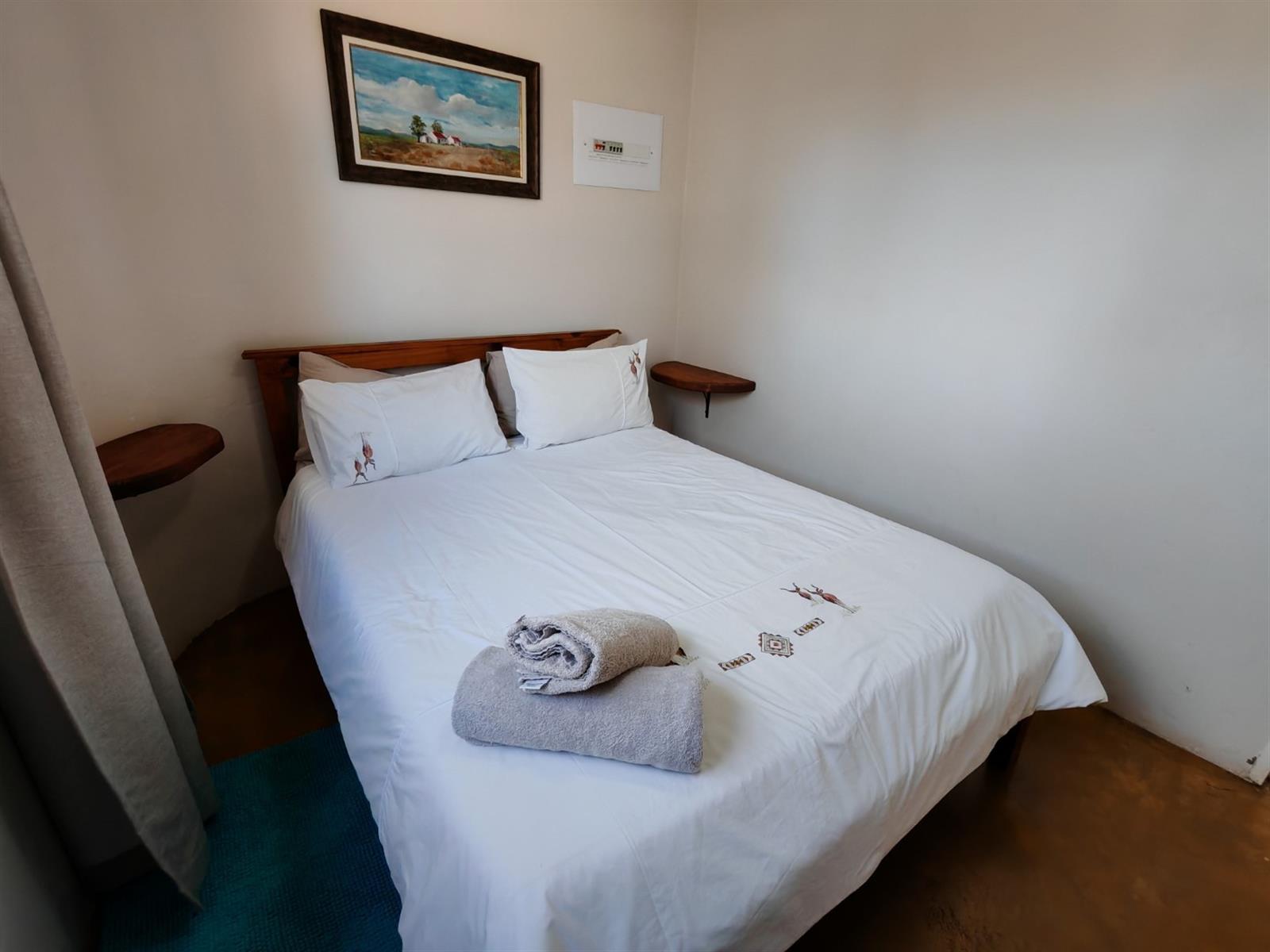 The second chalet is a one-bedroom unit with a queen-size bed, a bathroom, kitchen, verandah and braai area.