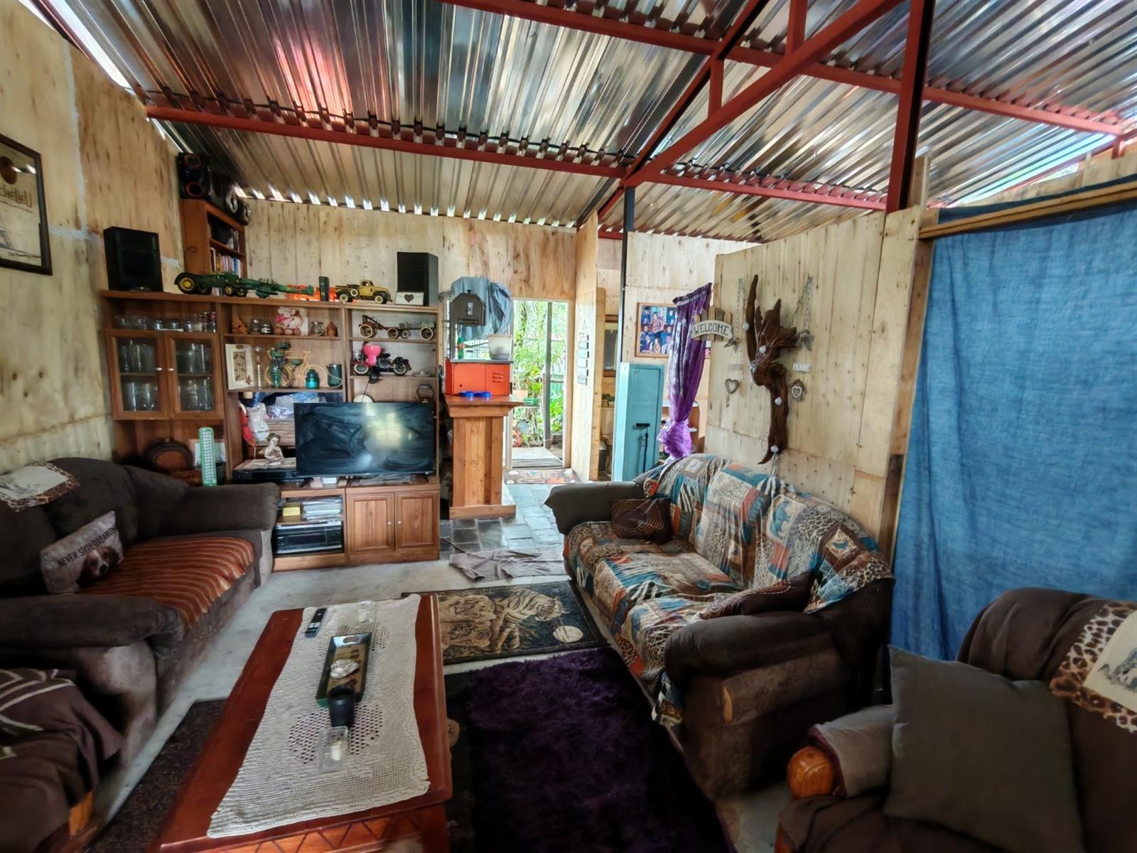 The solidly built home is cleverly constructed with low cost material beneath a robust steel shed frame with a strong cement floor and practical shutterply walling – ideal for low-maintenance, durable living in the African bush.