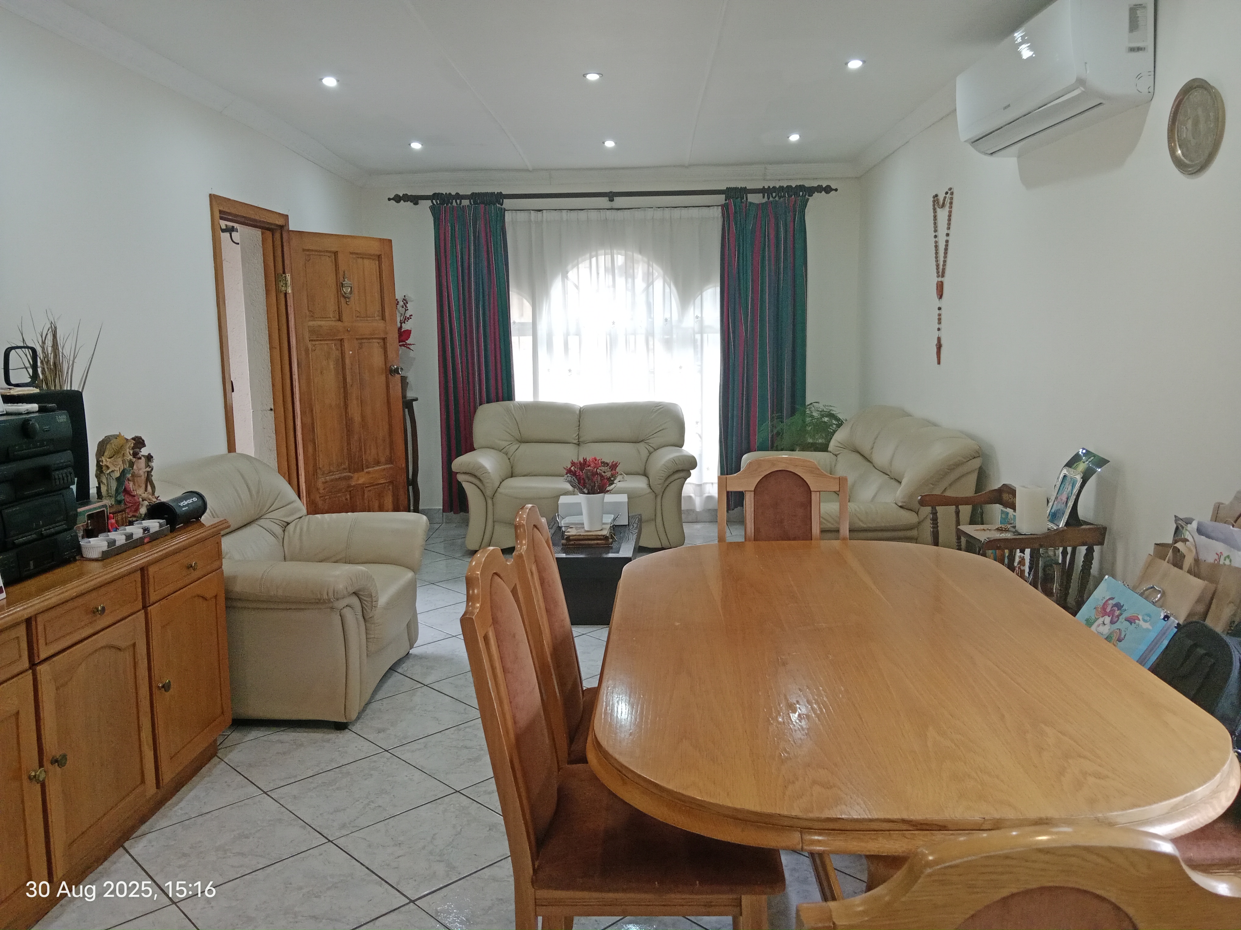 Opportunities like this don’t come around often – a modern, move-in ready home set on one of the largest flat plots in the road. With 910sqm of land, this property offers exceptional space for family living, entertaining, and future potential. From the moment you step inside, you’re welcomed by bright, open-plan living areas that create a sense of space and flow. The lounge and dining area blend effortlessly into a stylish kitchen, complete with solid Oak cabinetry, granite countertops, an eye-level oven, and hob – designed for both practicality and elegance. The home features three generously sized bedrooms, including a luxurious master suite with a walk-in closet, a full ensuite bathroom (featuring both a shower and a corner bath), and direct access to a private patio. The additional bedrooms are well-fitted and share a beautifully modern family bathroom. A dedicated linen/storage room with laundry fittings adds a thoughtful touch for everyday convenience. For family time, a second lounge/TV room offers the perfect spot to relax and unwind together. Step outside and discover your own private paradise: A heated swimming pool surrounded by paved entertainment areas A covered patio and entertainment space for gatherings, braais, or weekend fun A lush, landscaped garden ideal for kids and pets to play freely Additional features include: A lock-up garage plus a double carport Conveniently located within walking distance to both primary and secondary schools This property is more than just a home – it’s a lifestyle. Whether you’re hosting friends, enjoying family time by the pool, or simply appreciating the peace of your spacious garden, this residence has it all. Don’t miss the chance to own one of the most desirable homes in this sought-after area. Call today to arrange a private viewing!!
