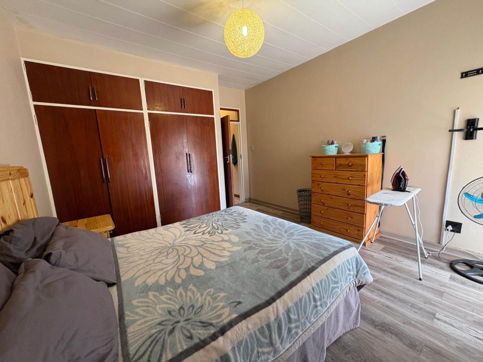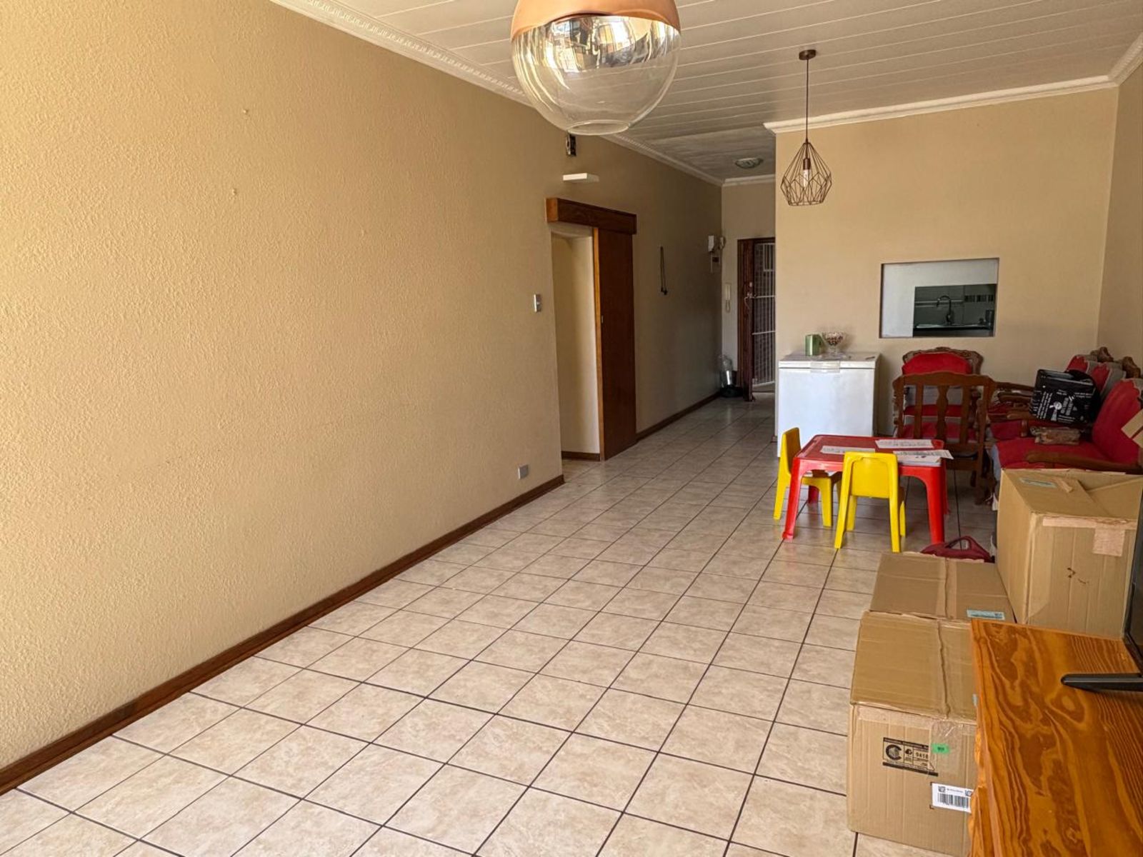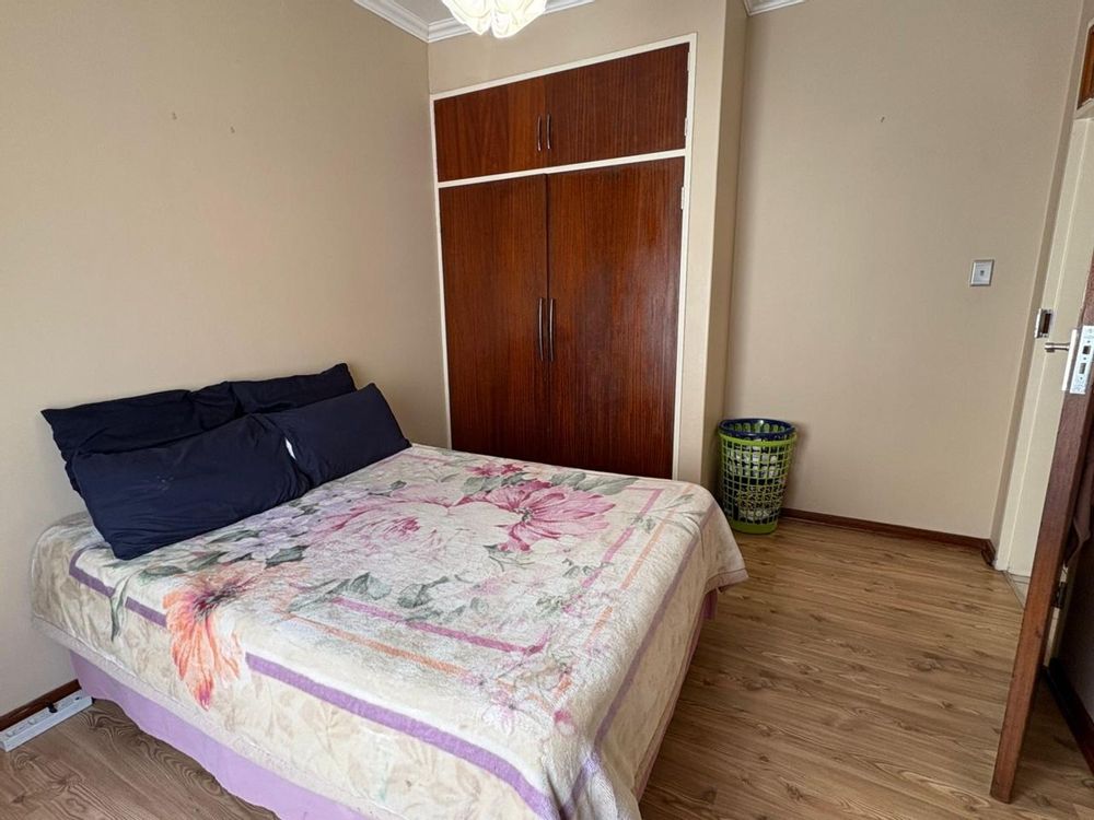 Neat and comfortable two-bedroom, one-bathroom apartment situated in a quiet and peaceful area. The lounge is fitted with an air conditioner for year-round comfort, and the kitchen offers built-in cupboards, an under-counter oven, hob, and extractor fan. A single carport provides secure parking. The property is fully fenced and fitted with burglar bars for added security.
