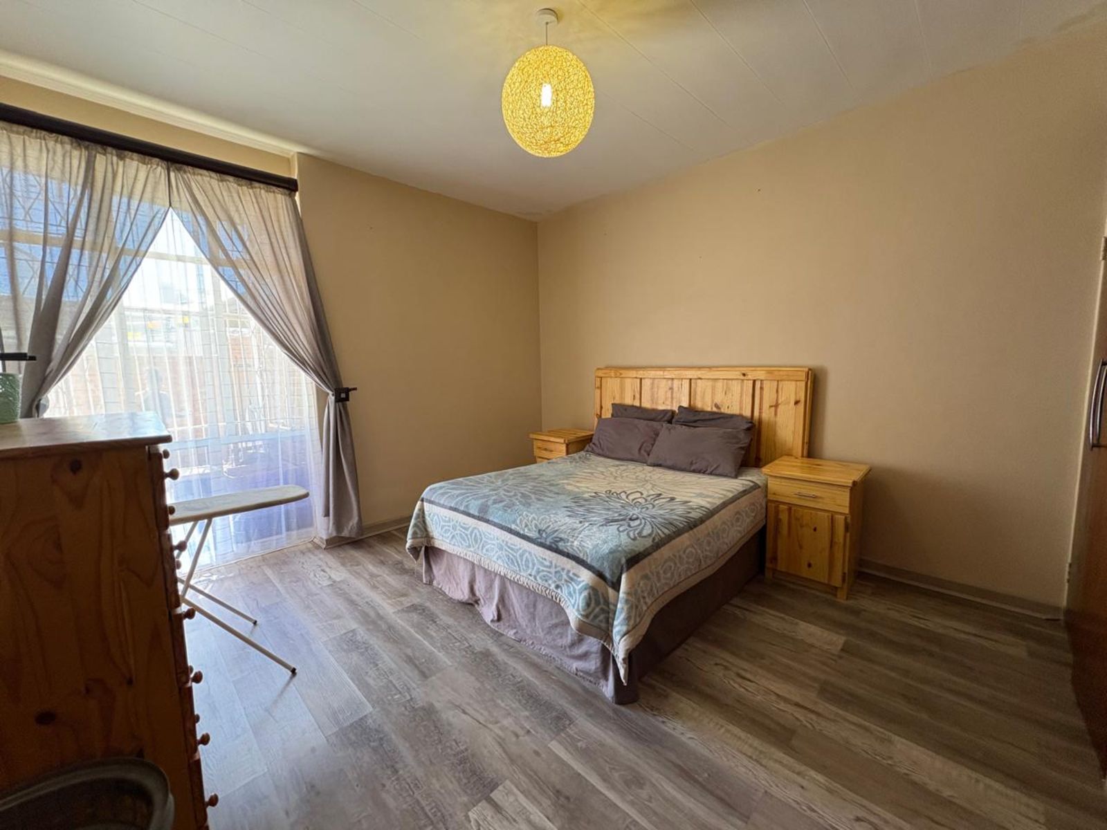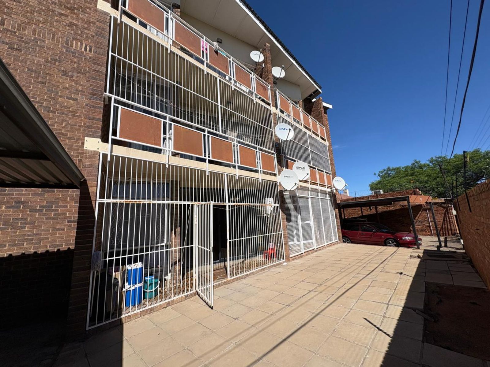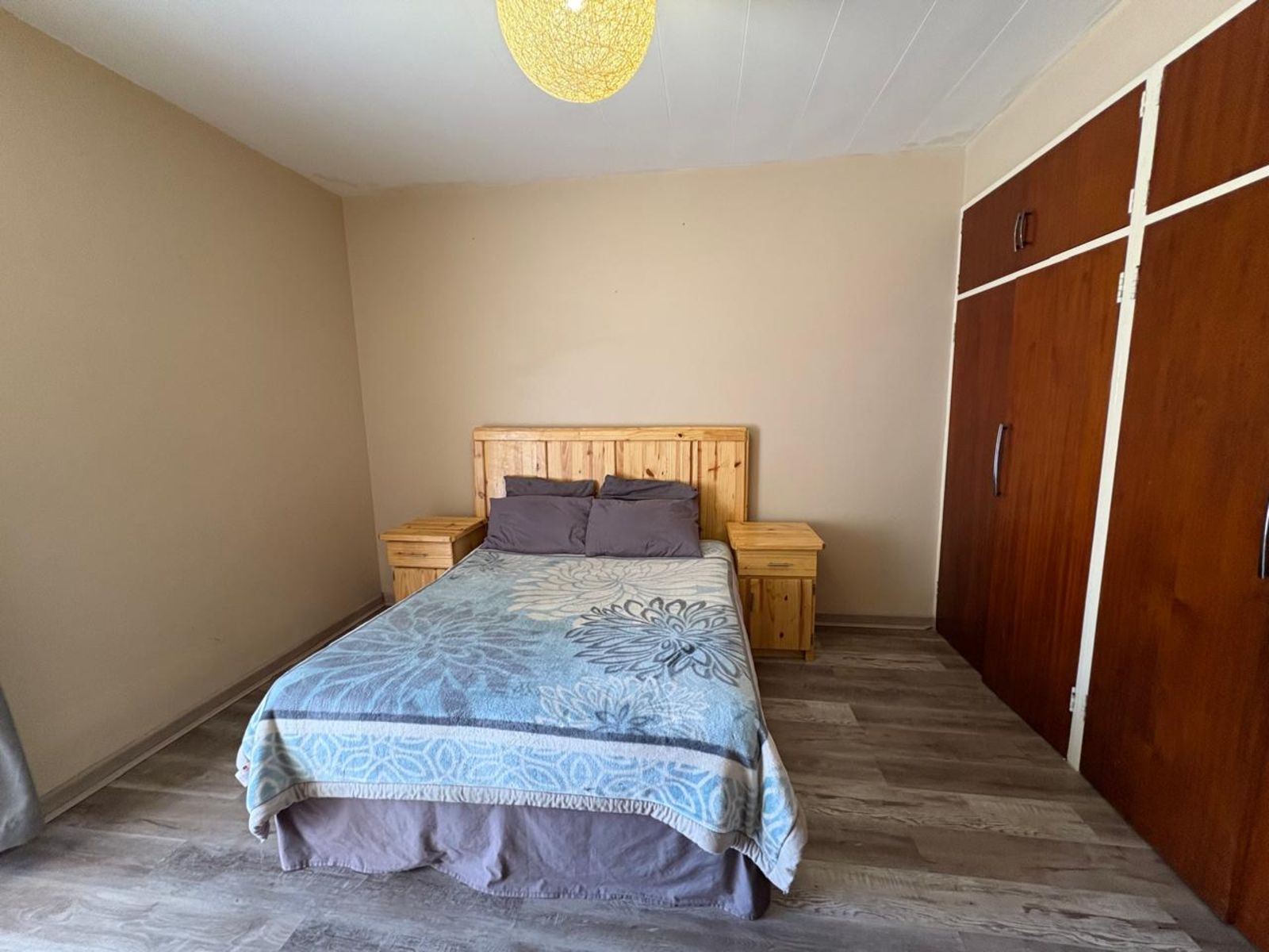 Neat and comfortable two-bedroom, one-bathroom apartment situated in a quiet and peaceful area. The lounge is fitted with an air conditioner for year-round comfort, and the kitchen offers built-in cupboards, an under-counter oven, hob, and extractor fan. A single carport provides secure parking. The property is fully fenced and fitted with burglar bars for added security.