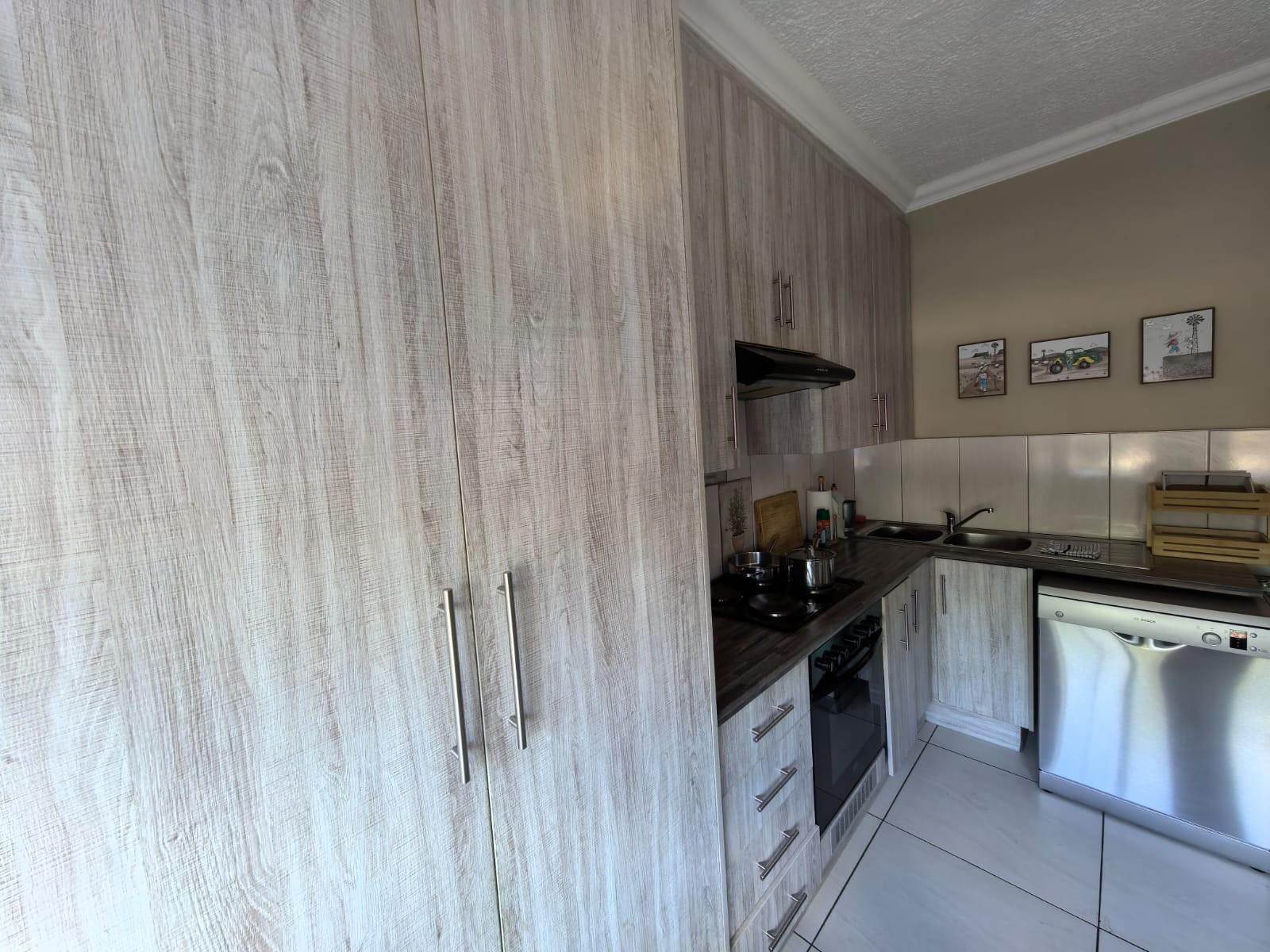 Stunning Modern Kitchen: The neat kitchen is a dream, boasting modern finishes, ample built-in cupboards (BIC), a fitted stove, hob, and extractor fan.