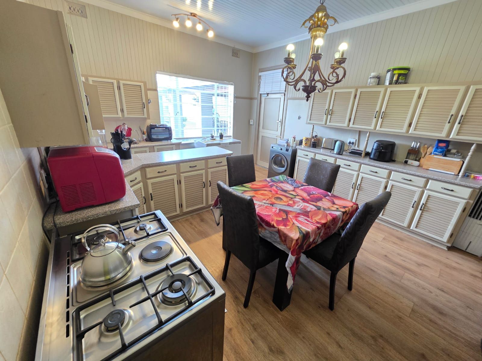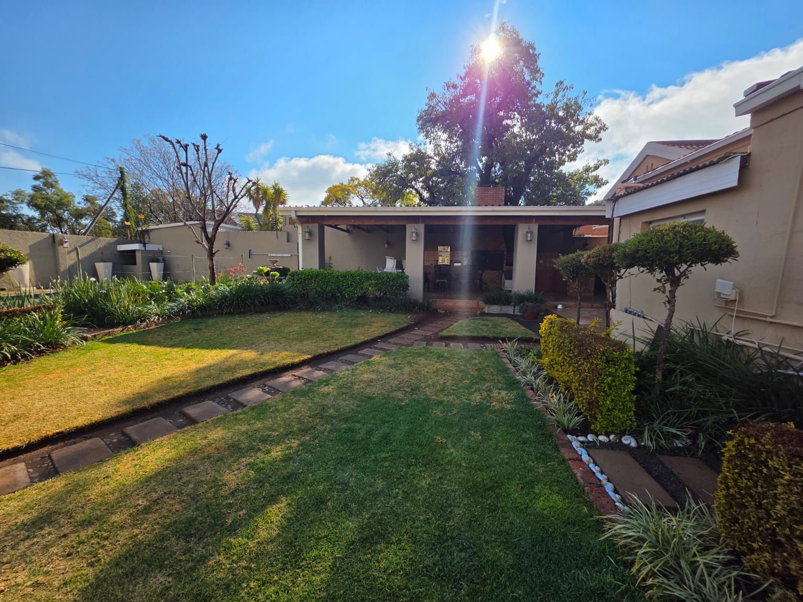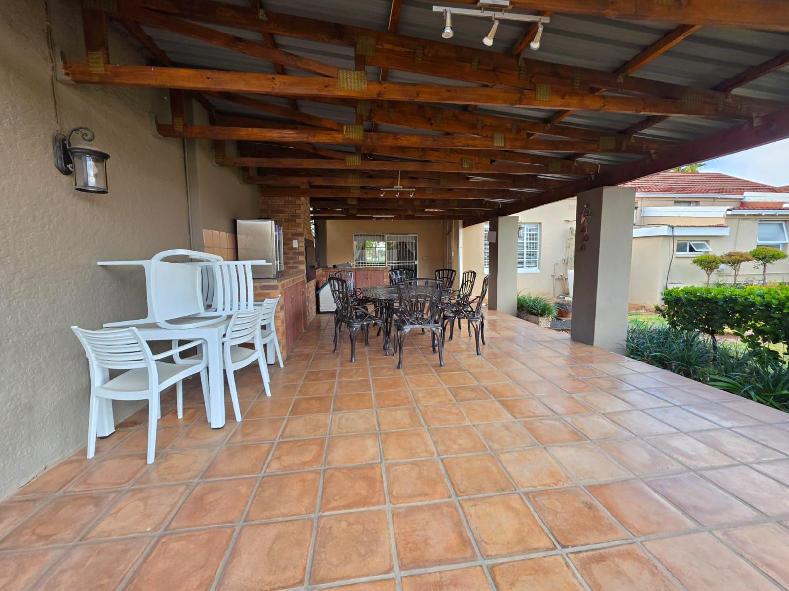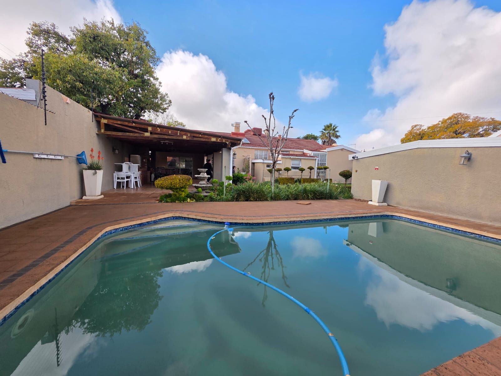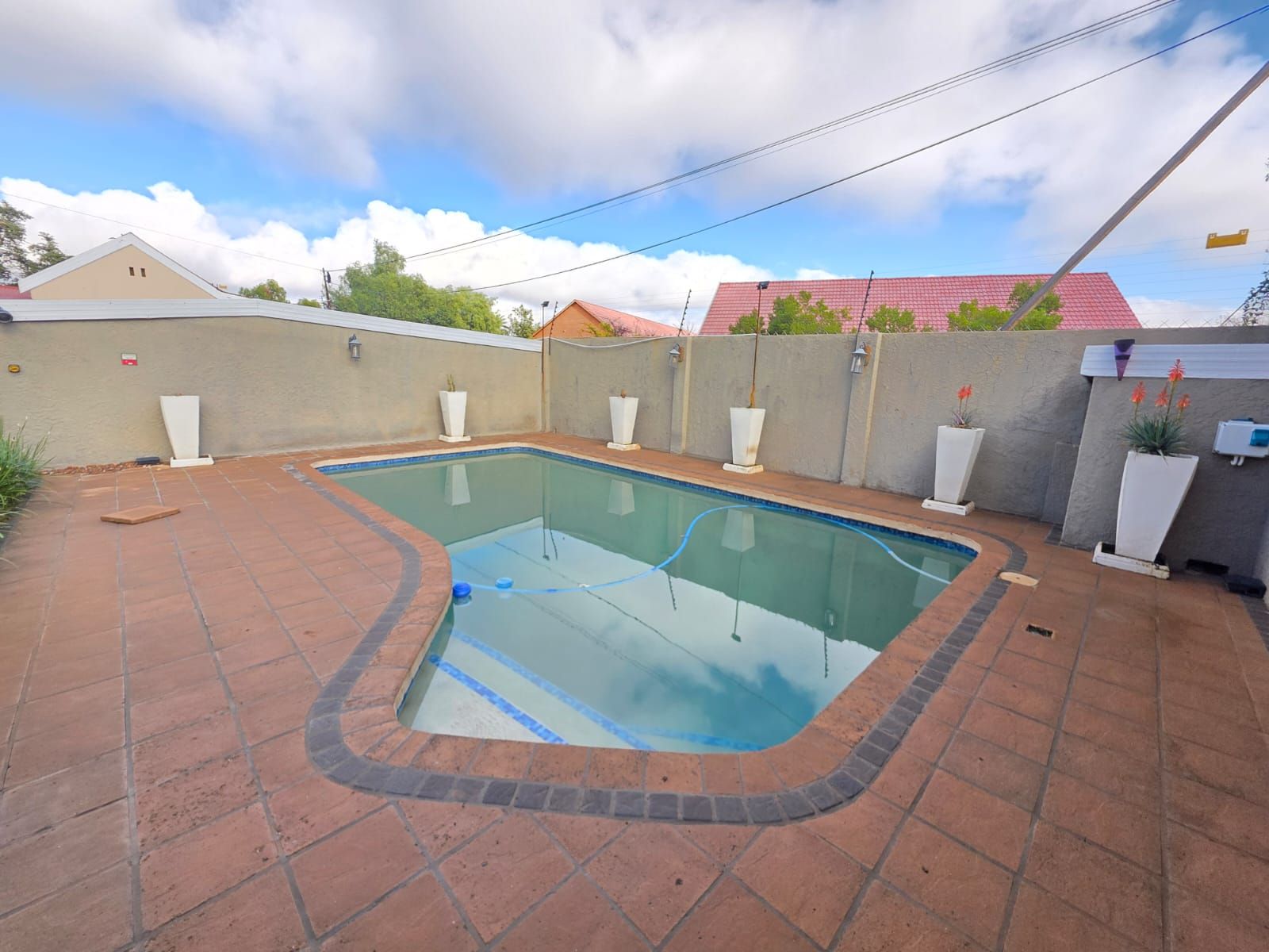 The kitchen is well-equipped with built-in cupboards, a walk-in pantry, scullery, and a dedicated ironing room with additional cupboard space. Entertain effortlessly with an undercover braai area that overlooks a sparkling pool and an immaculate garden.