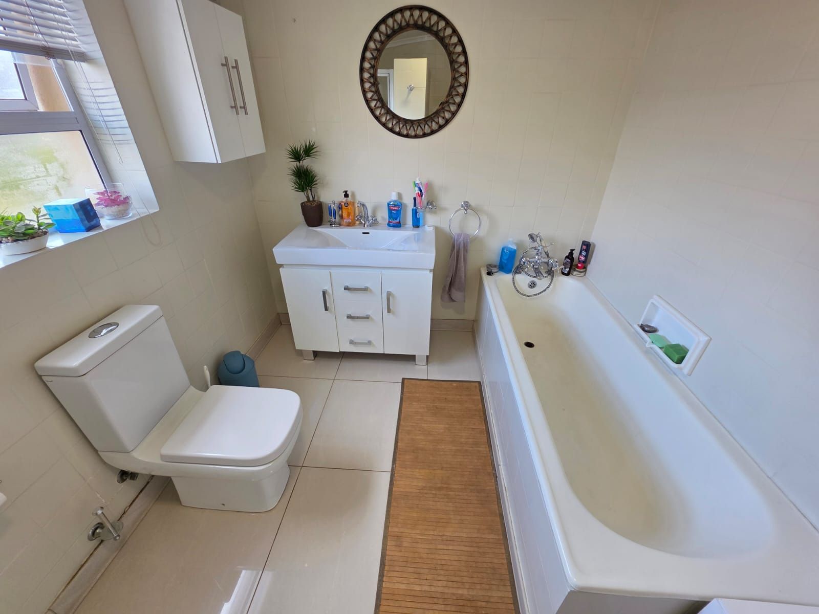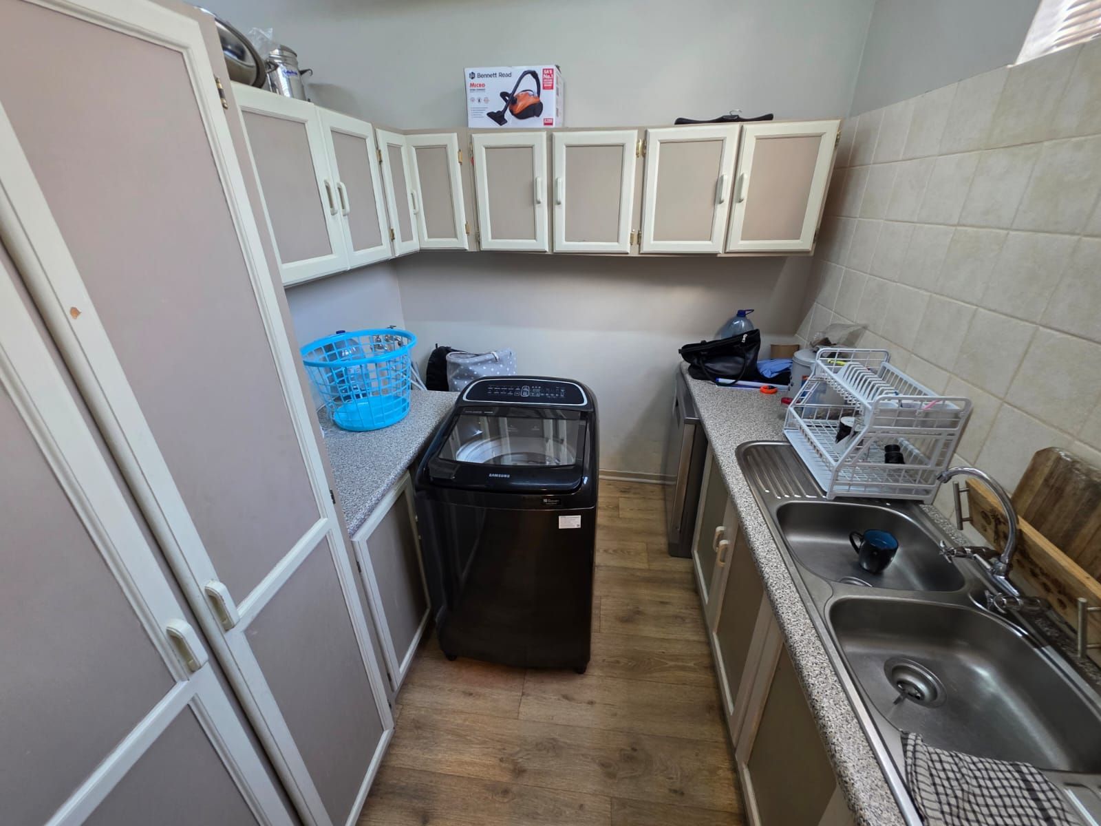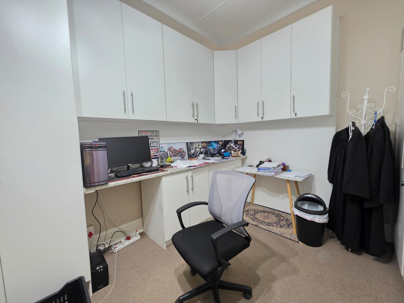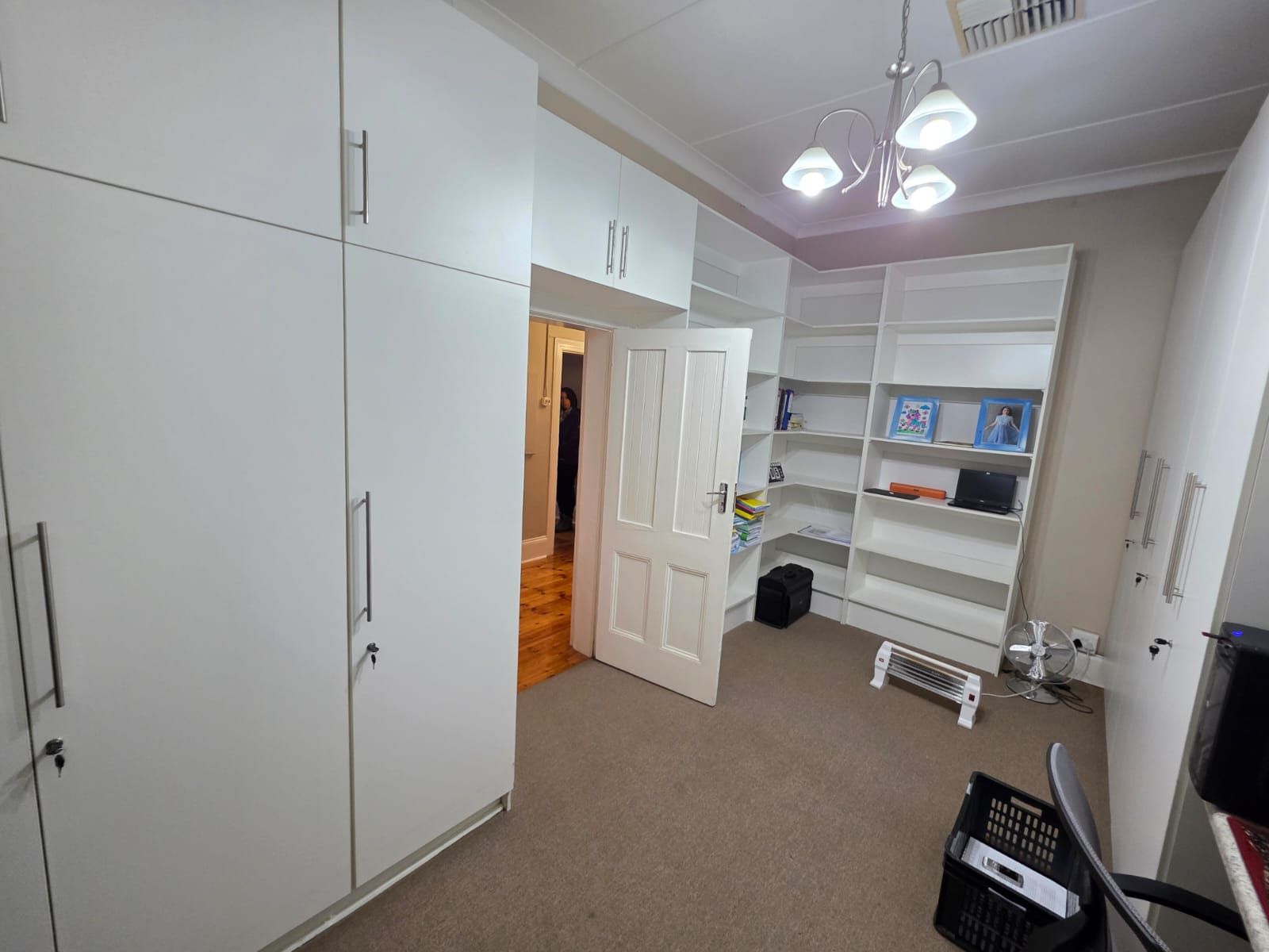The kitchen is well-equipped with built-in cupboards, a walk-in pantry, scullery, and a dedicated ironing room with additional cupboard space. Entertain effortlessly with an undercover braai area that overlooks a sparkling pool and an immaculate garden.