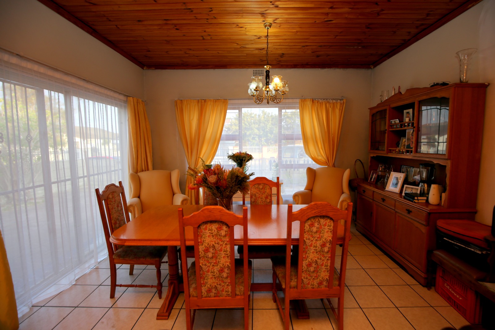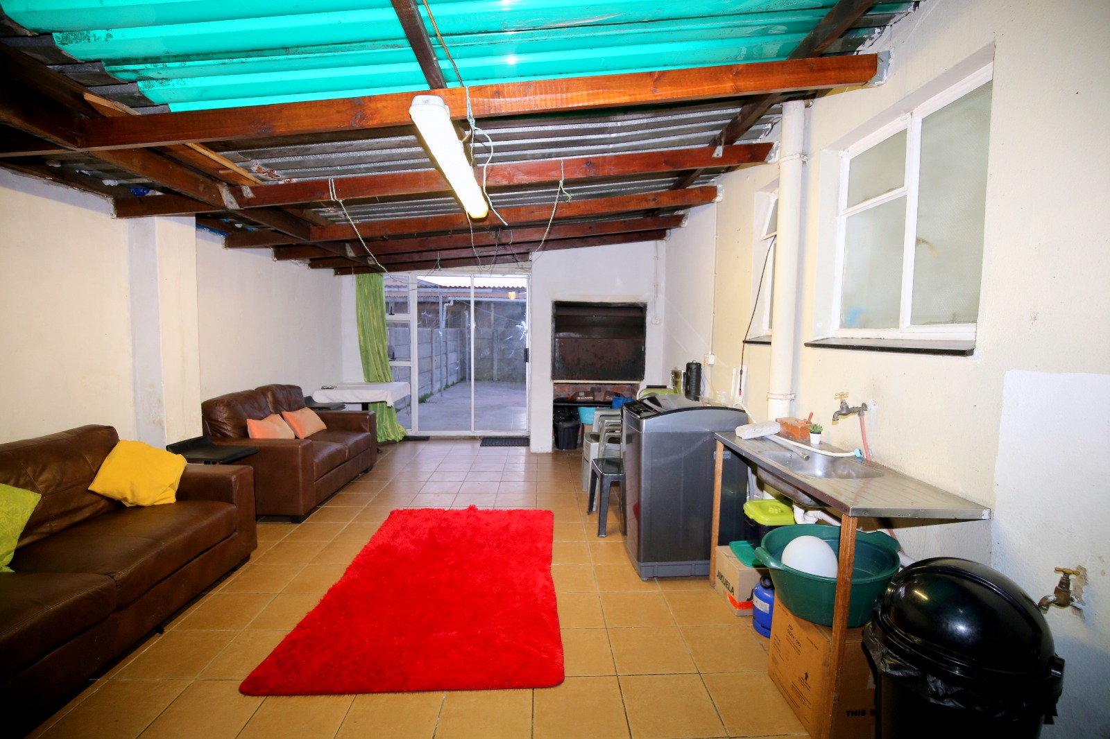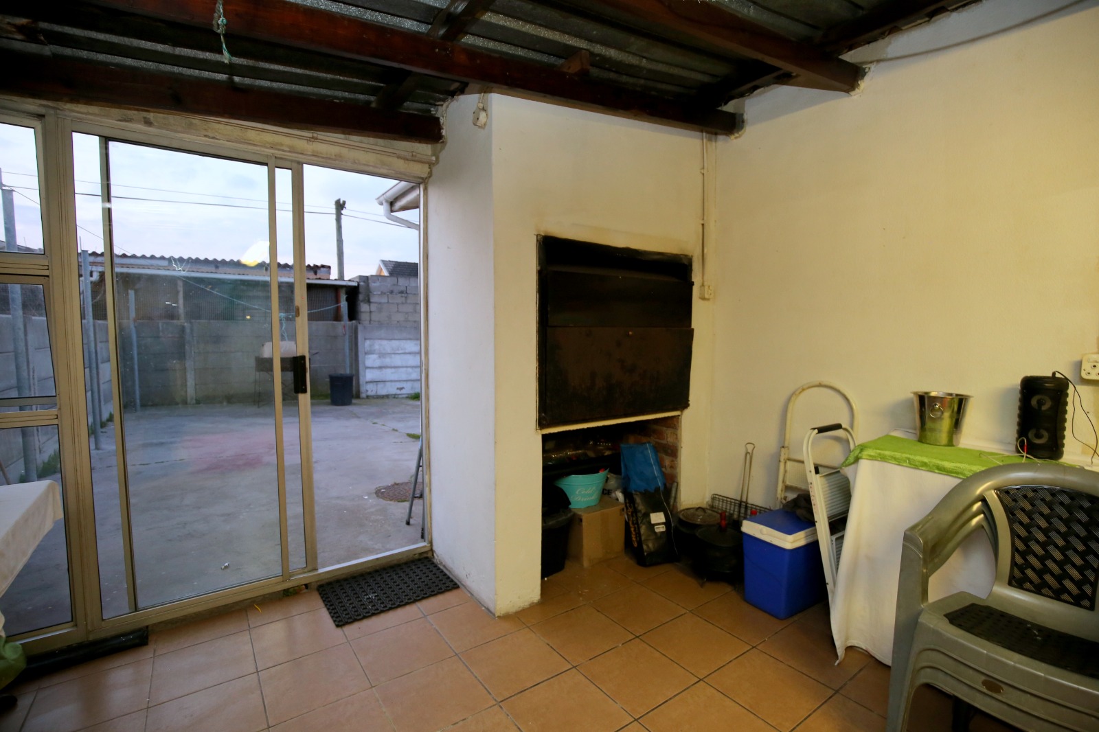 The kitchen is equipped with ample cupboard space and counter area and provides direct access to the fourth bedroom and the large Entertainment area. This versatile space includes a built-in braai, a designated washing area, and provisions for a washing machine, tumble dryer, and space for a fridge. A door leading to the front of the house and a sliding door opens to the expansive backyard, providing an ideal space for year-round family gatherings, regardless of the weather....