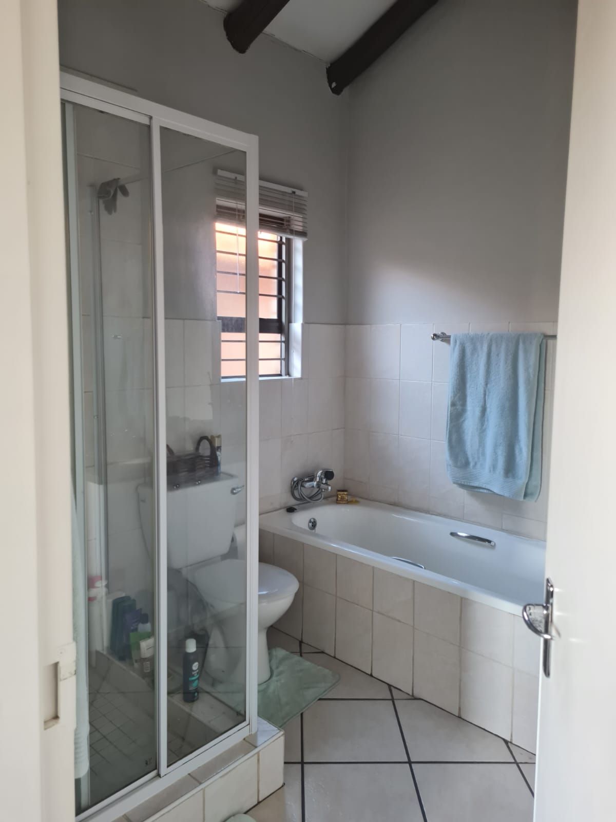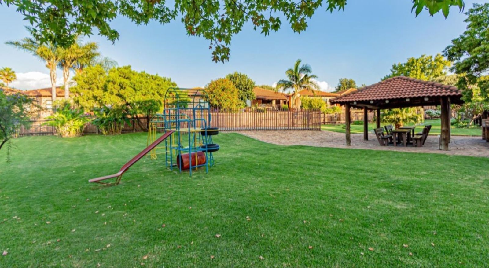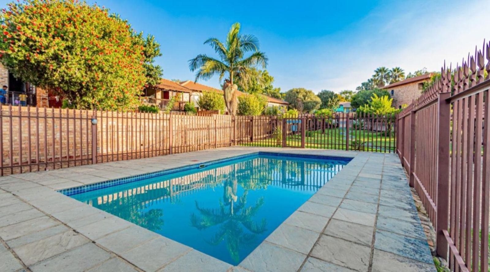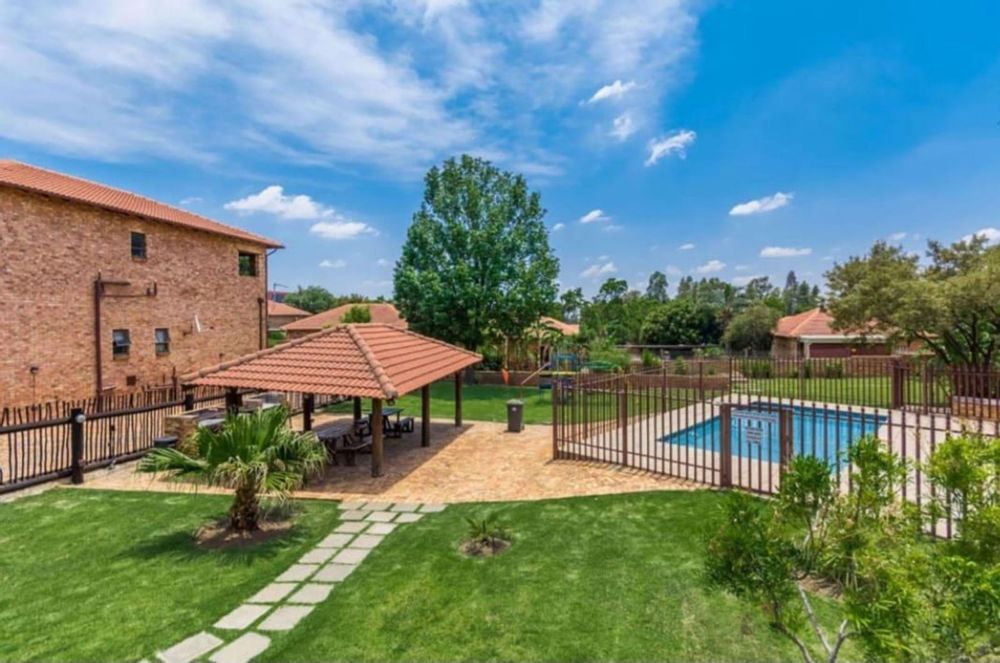An outdoor storage room adds extra space for essentials, making day-to-day living even more convenient. The property also offers a double carport for secure parking. Residents of the complex enjoy access to two swimming pools, round-the-clock security, and the added sense of community provided by an on-site church. Its central location places you close to shops, schools, and major highways, ensuring easy connectivity.