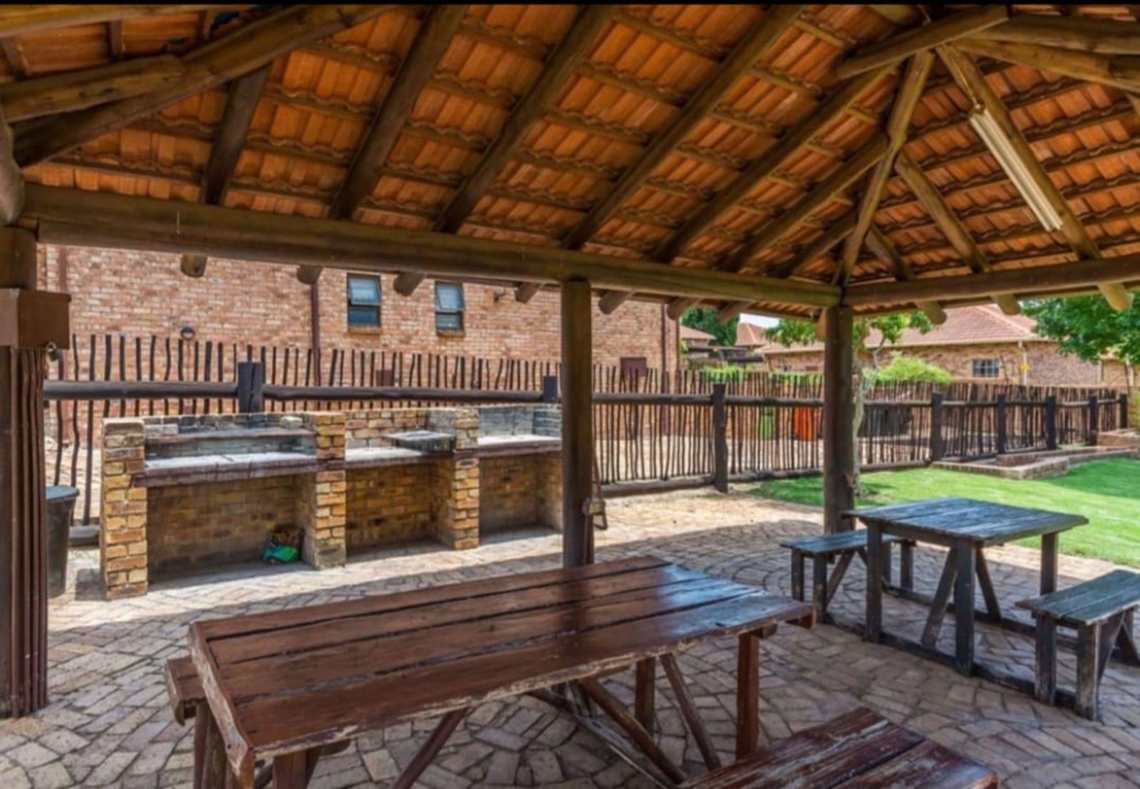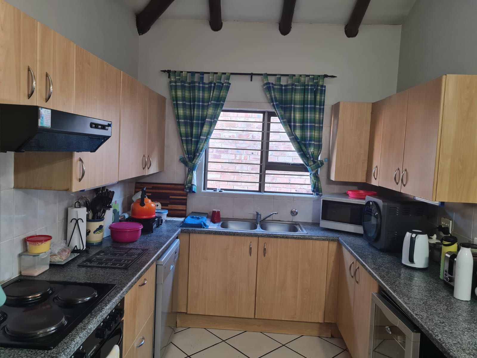 This charming free-standing two-bedroom home offers an ideal blend of space, comfort, and convenience. High ceilings with exposed wooden beams create a warm, airy atmosphere, while the open-plan layout enhances the sense of flow throughout the living areas. The home is tiled from end to end, providing a sleek and low-maintenance finish.