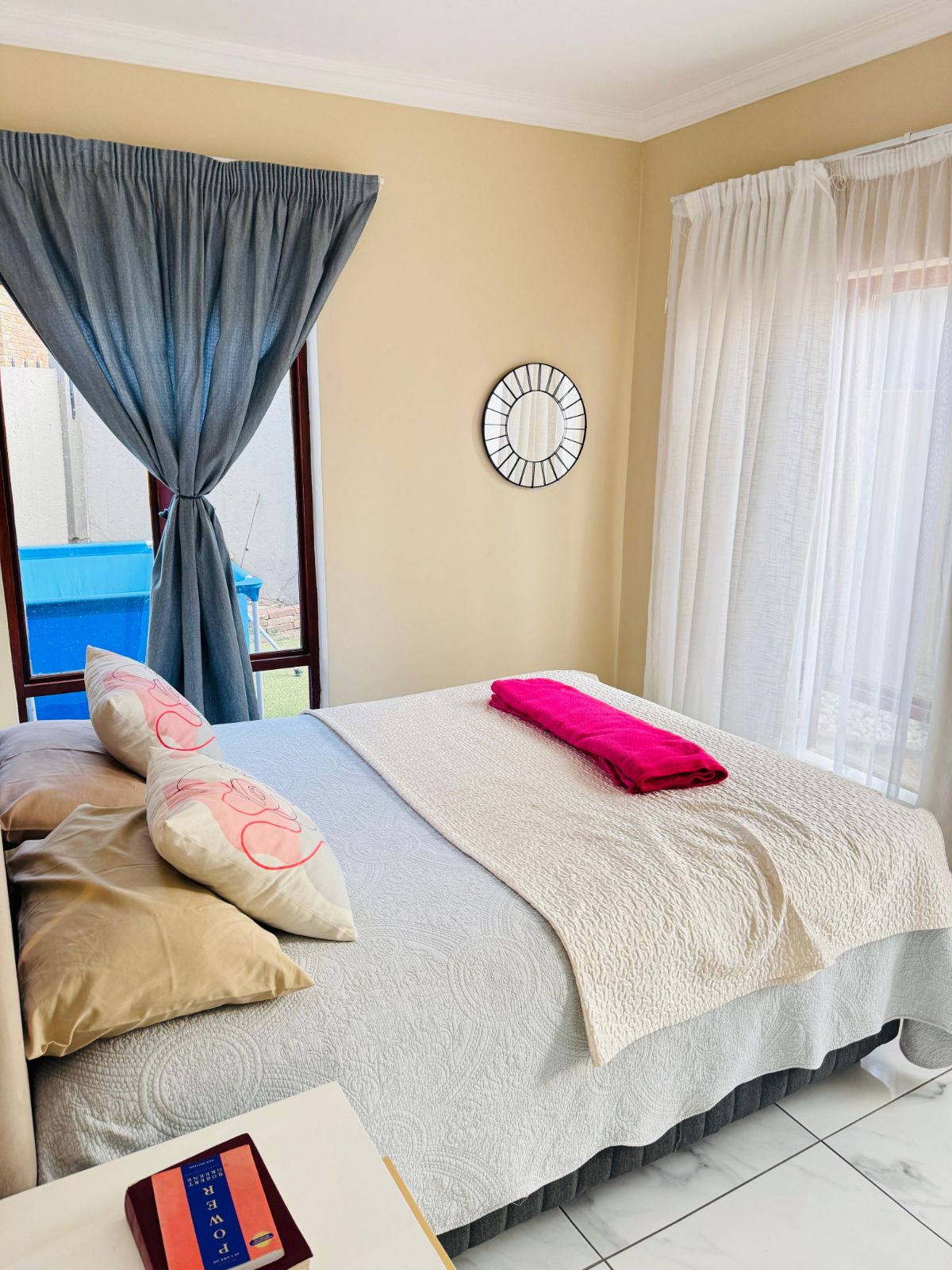 welcome to the luxy home in germin villa this is 4bedroom house with 4bathroom with stunning open plan kitchen close to braai area. This house welcome the sun perfectly this is a home you can grow your family or even grow old on.