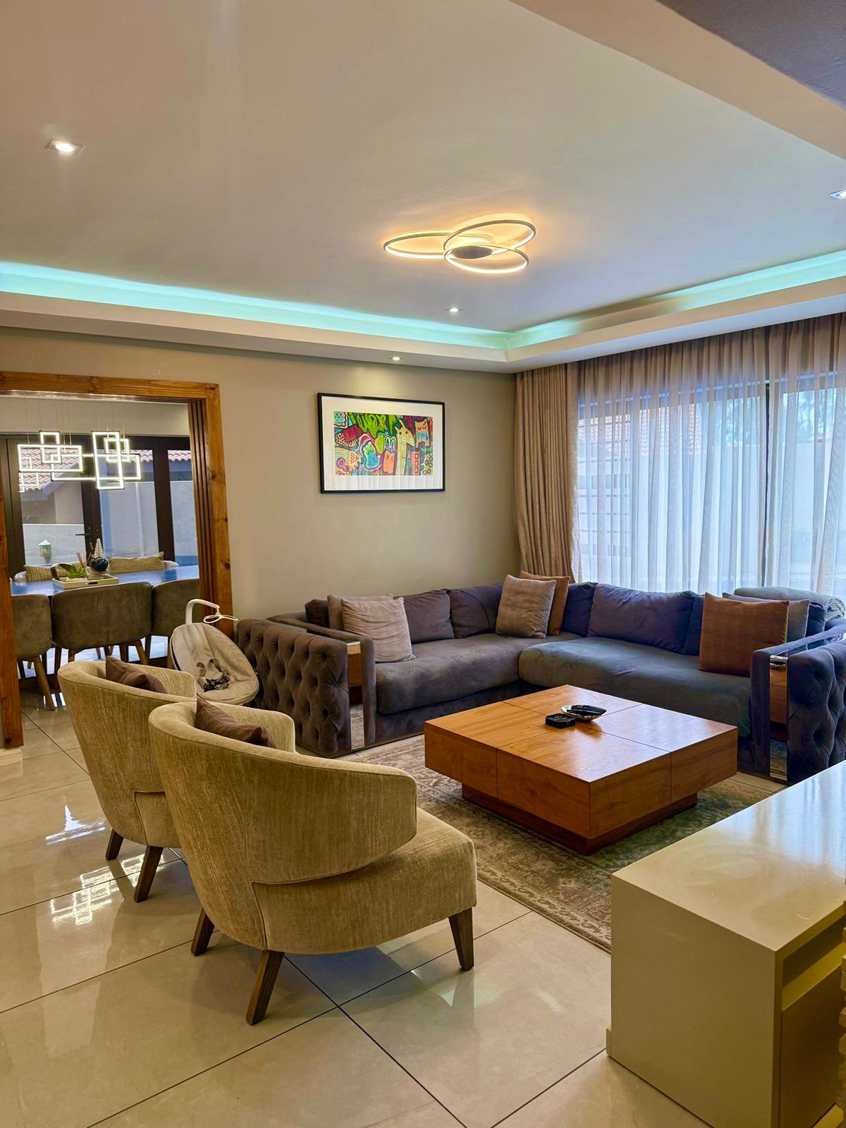 The home is set on a well-maintained stand, complemented by a landscaped garden supported by a fully installed irrigation system, ensuring effortless upkeep throughout the year. Upon entering, generous open-plan living areas create an immediate sense of flow, seamlessly connecting the lounge, dining area, and entertainment spaces, perfectly suited to both everyday family living and elegant hosting.