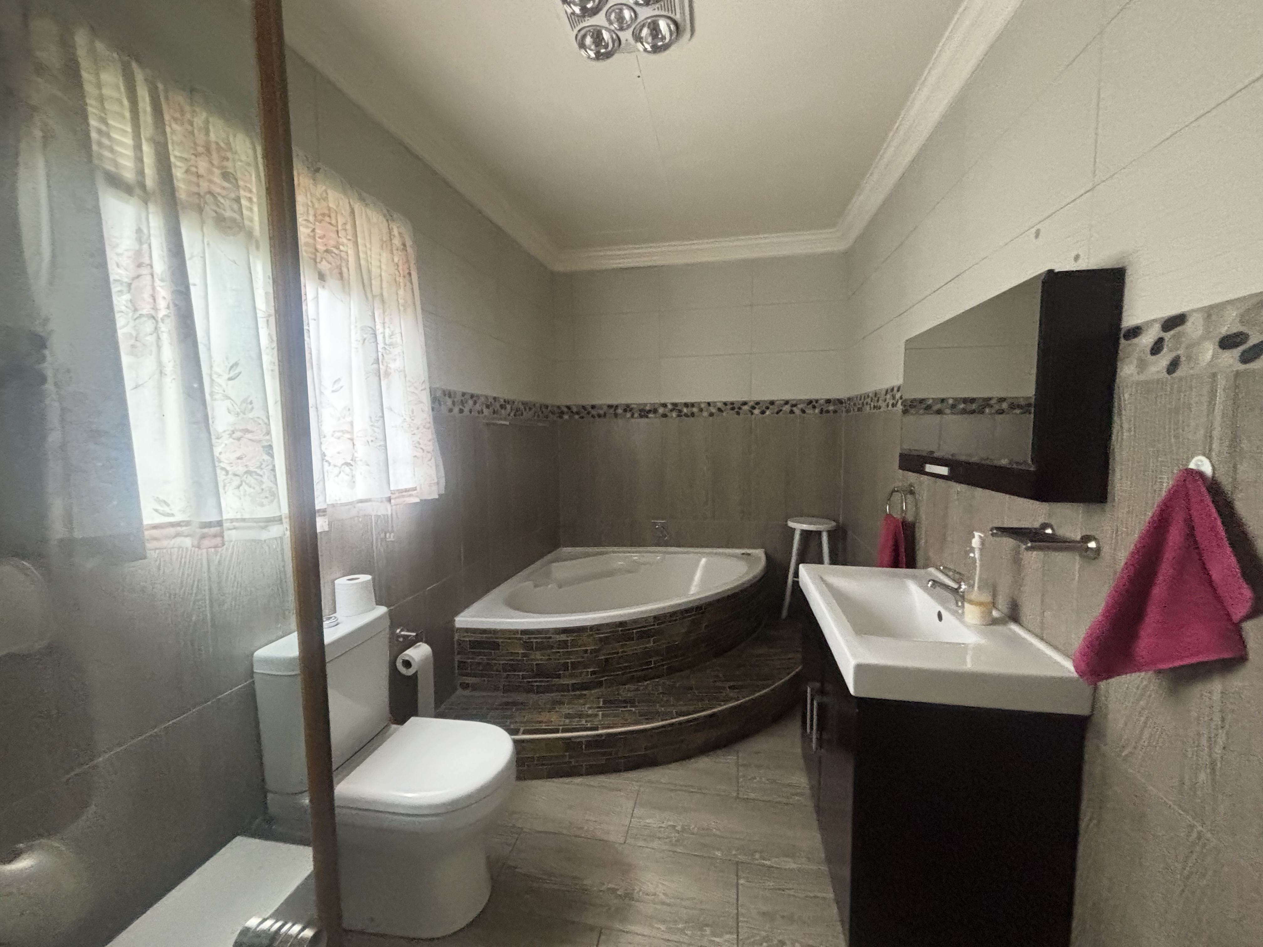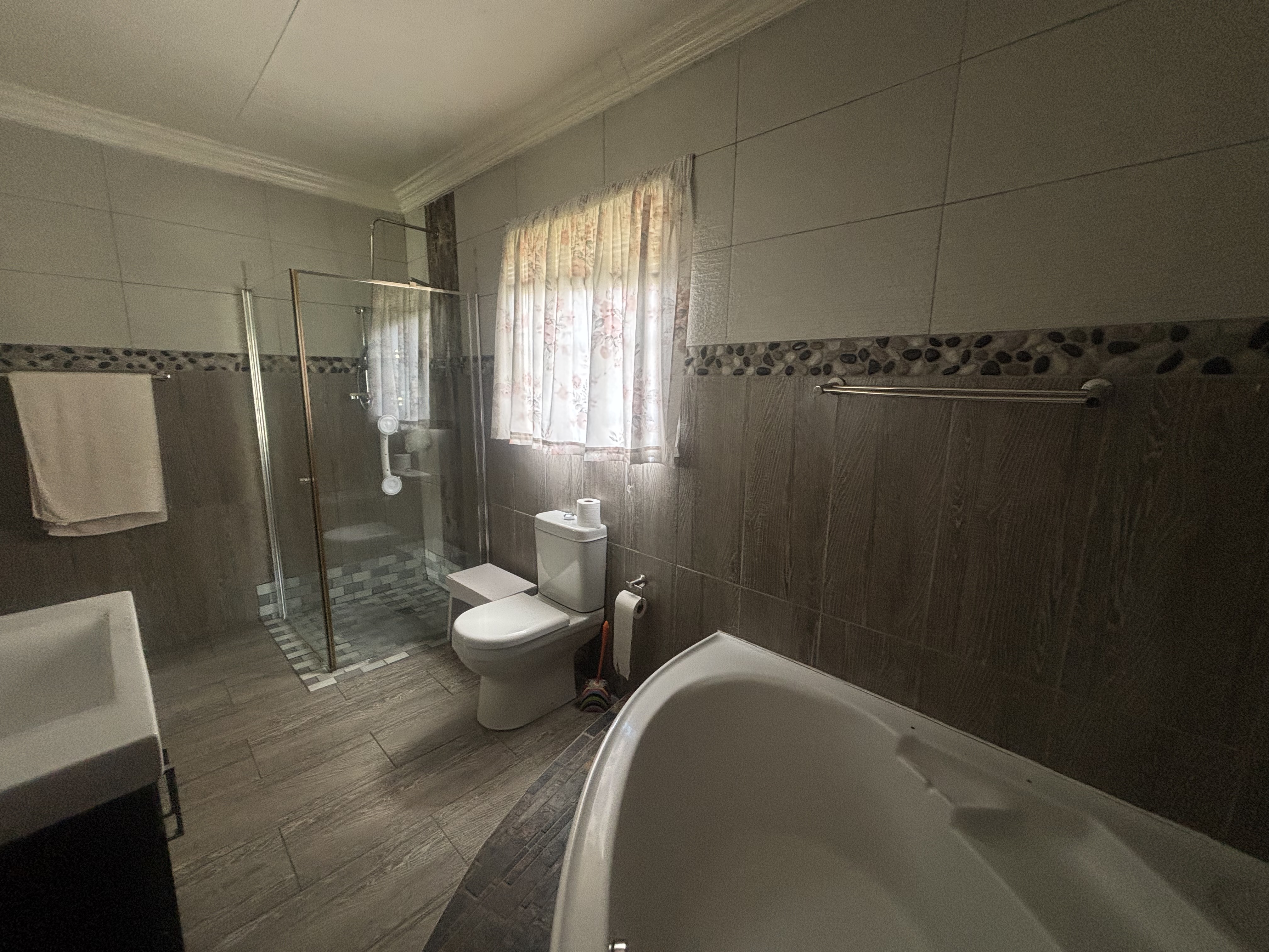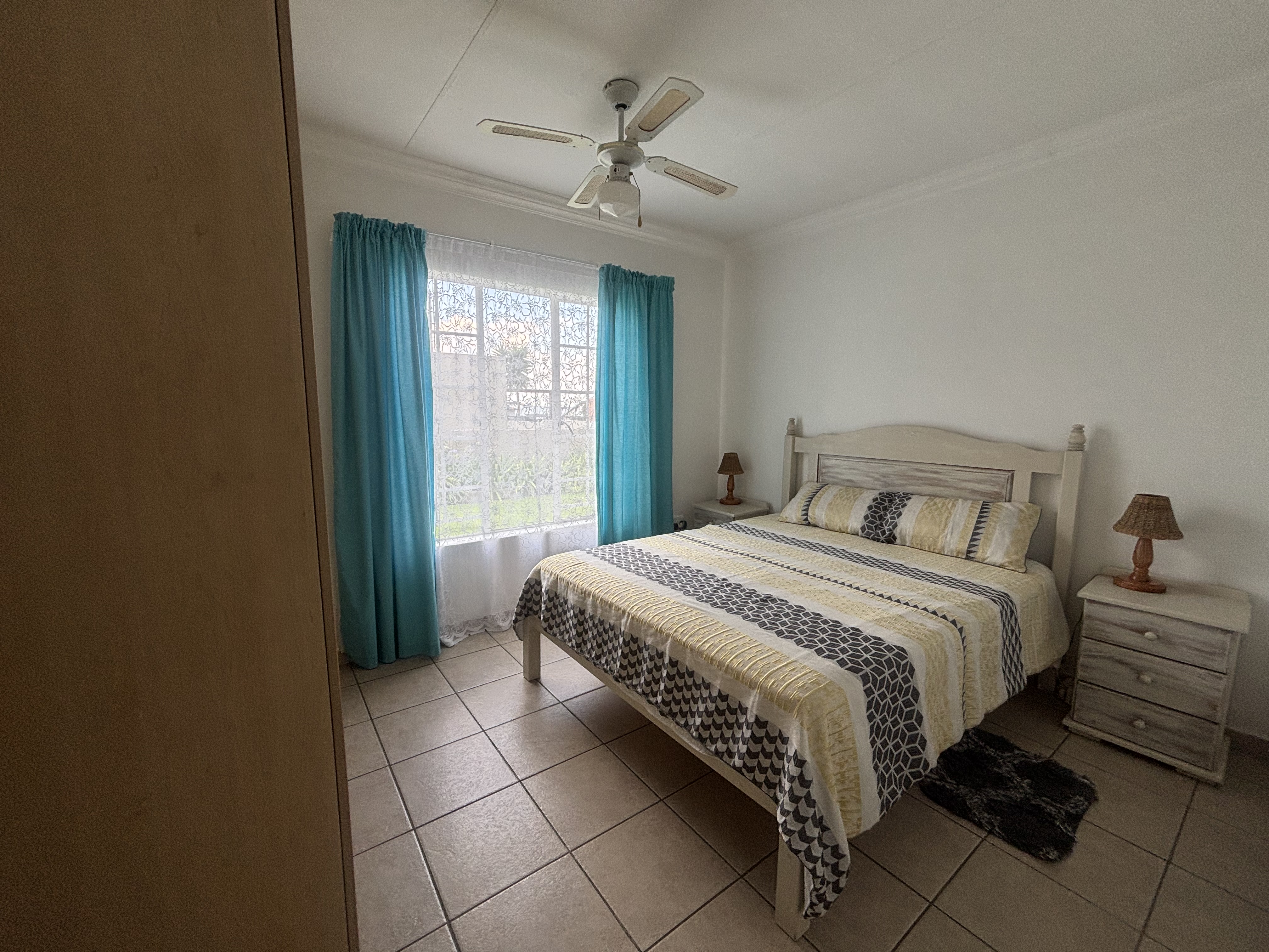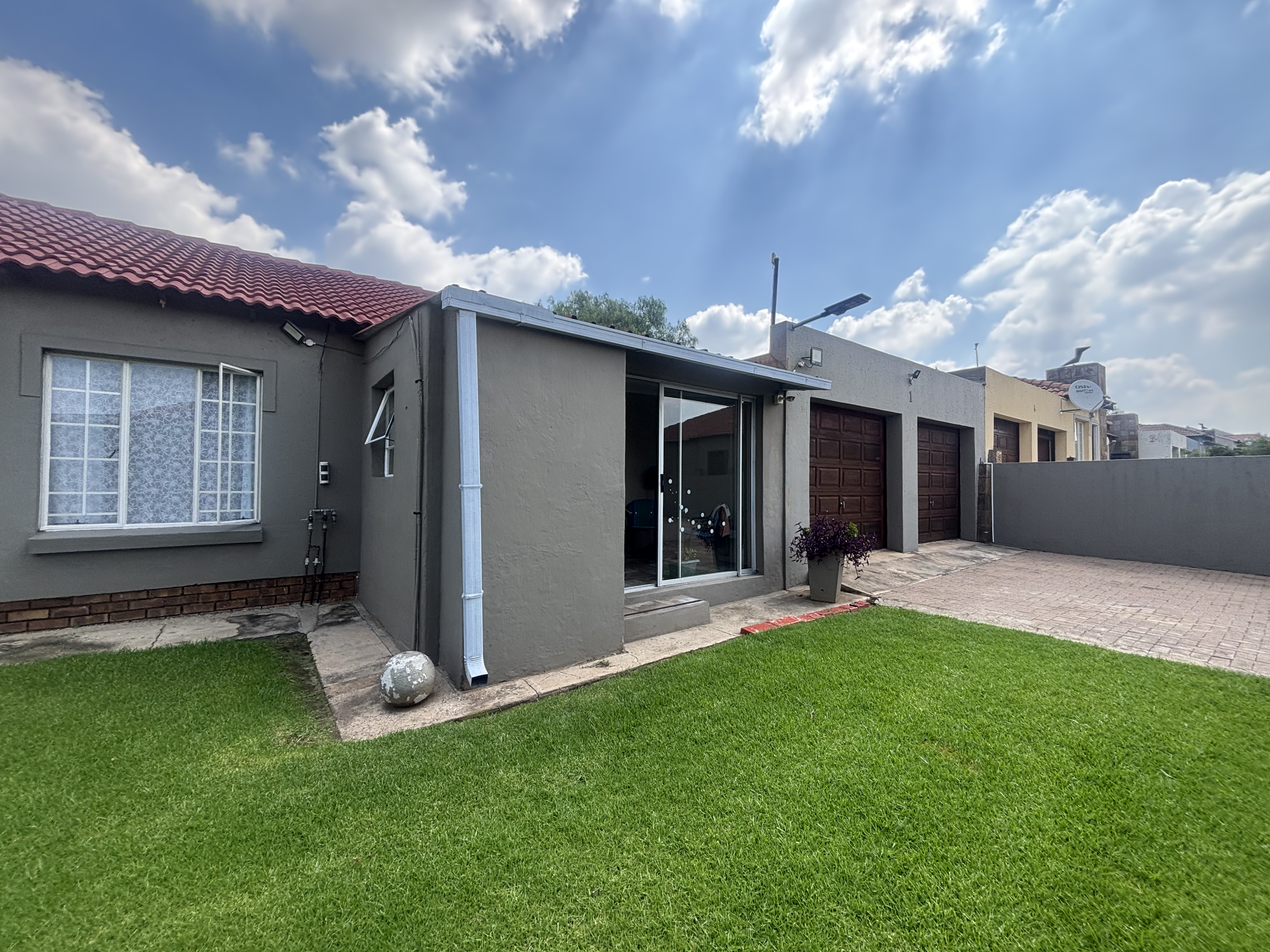 Four garages with the possibility are attached to the home and make it perfect to extend both kitchen and living area. A small patio is enclosed on the home and outside in the back garden a built-in braai and awning has been erected for protection from the sun. A small garden perfect and manageable.