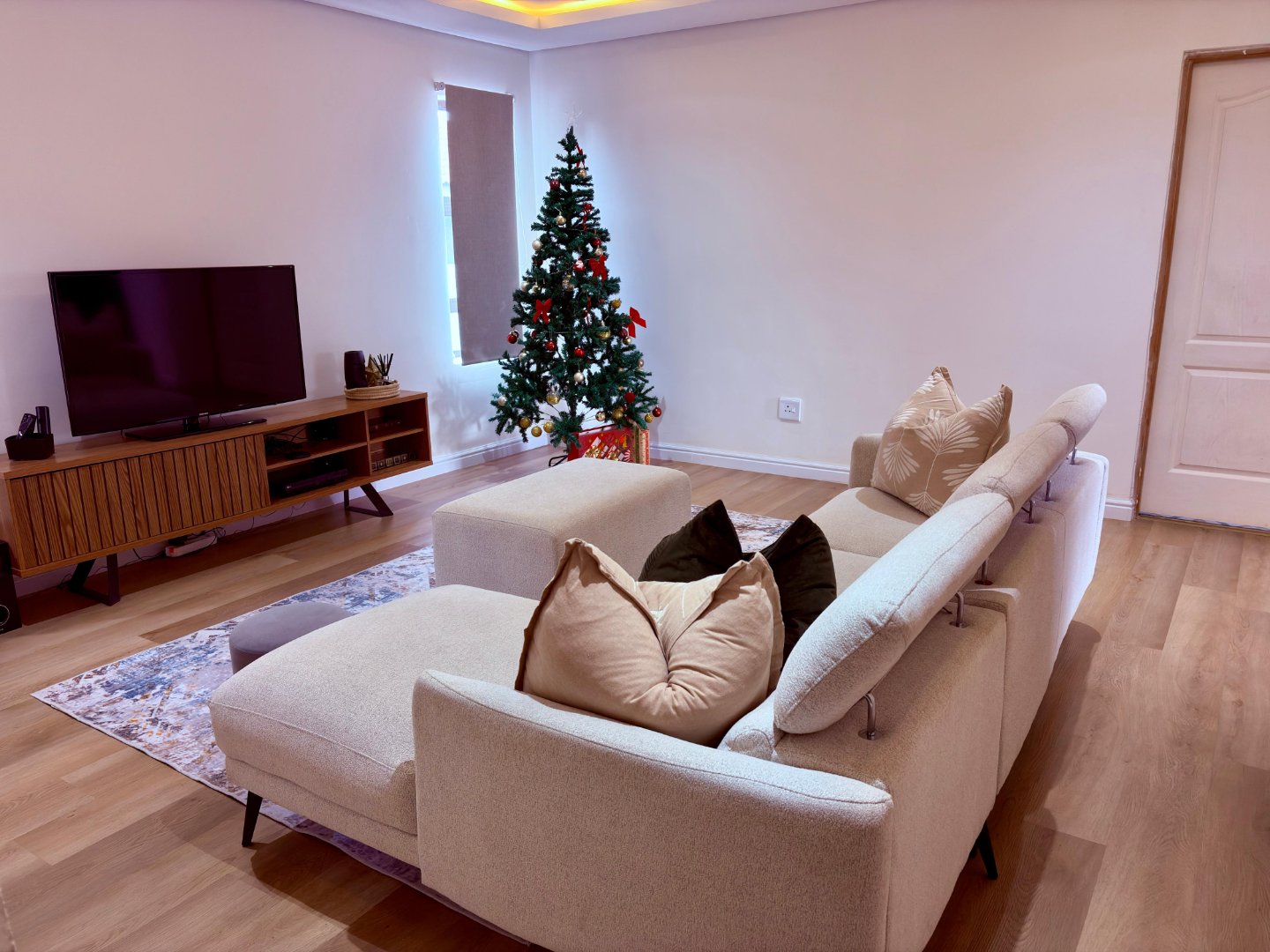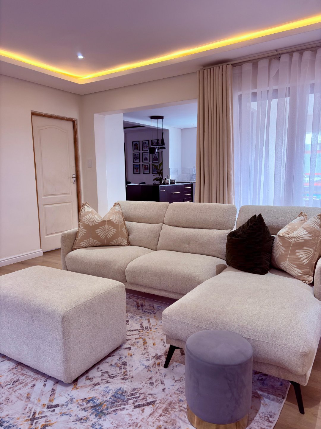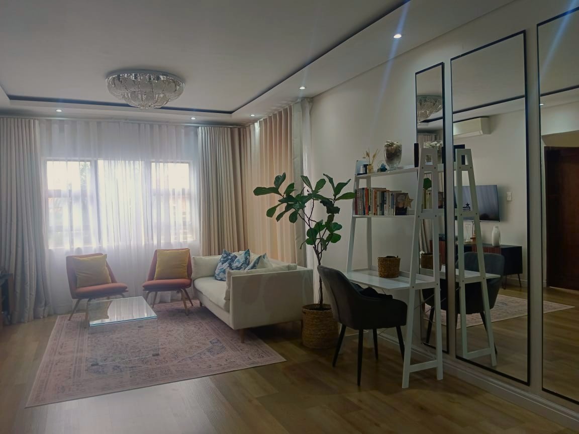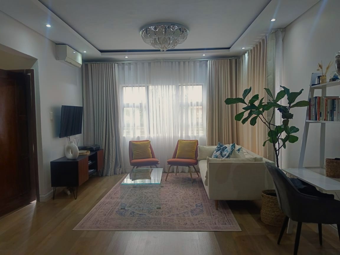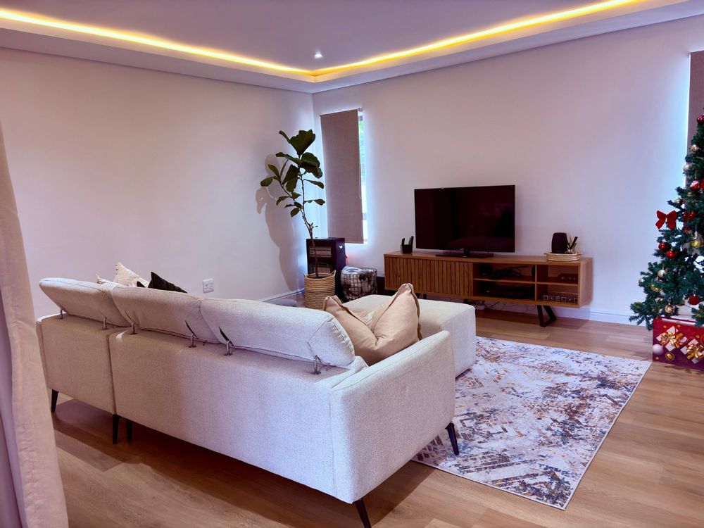 – A sunlit open-plan lounge fitted with an air conditioner sets the tone for modern comfort.