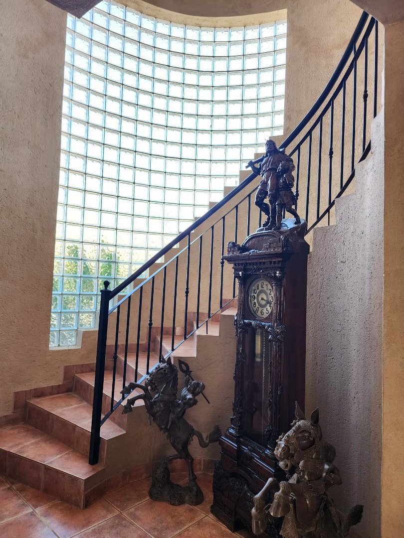 *Elegant Grand Entrance: A majestic entrance with double wooden doors leading to a dramatic, fairytale-like staircase.