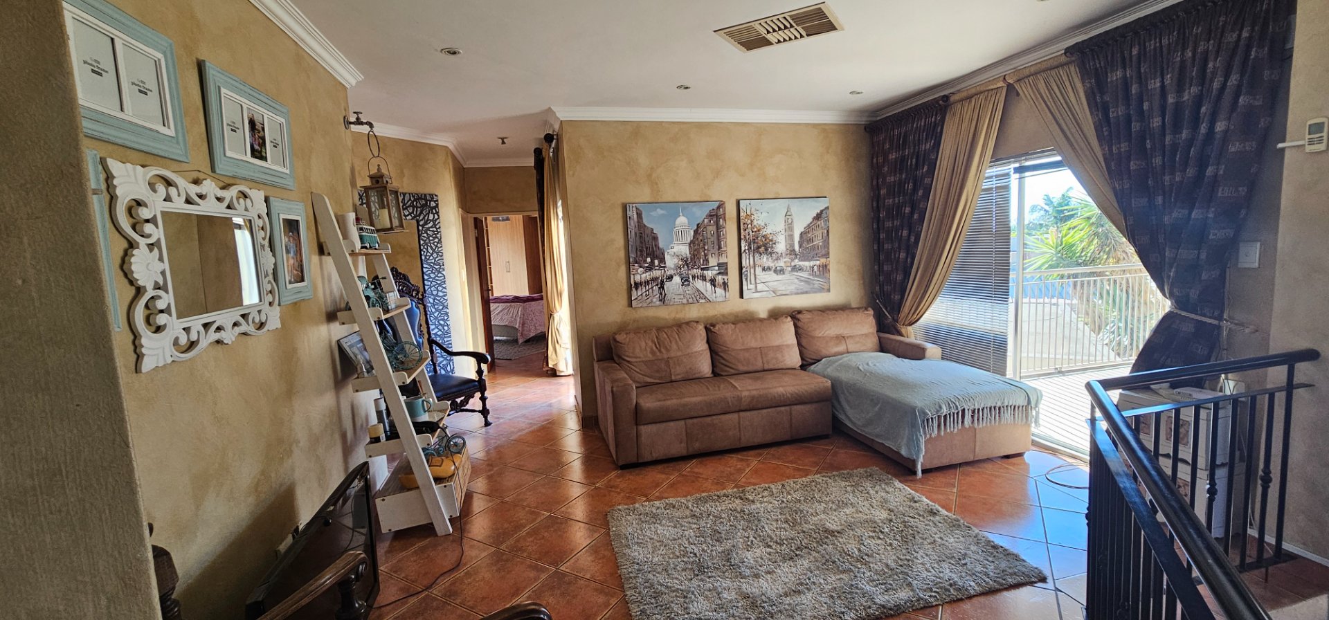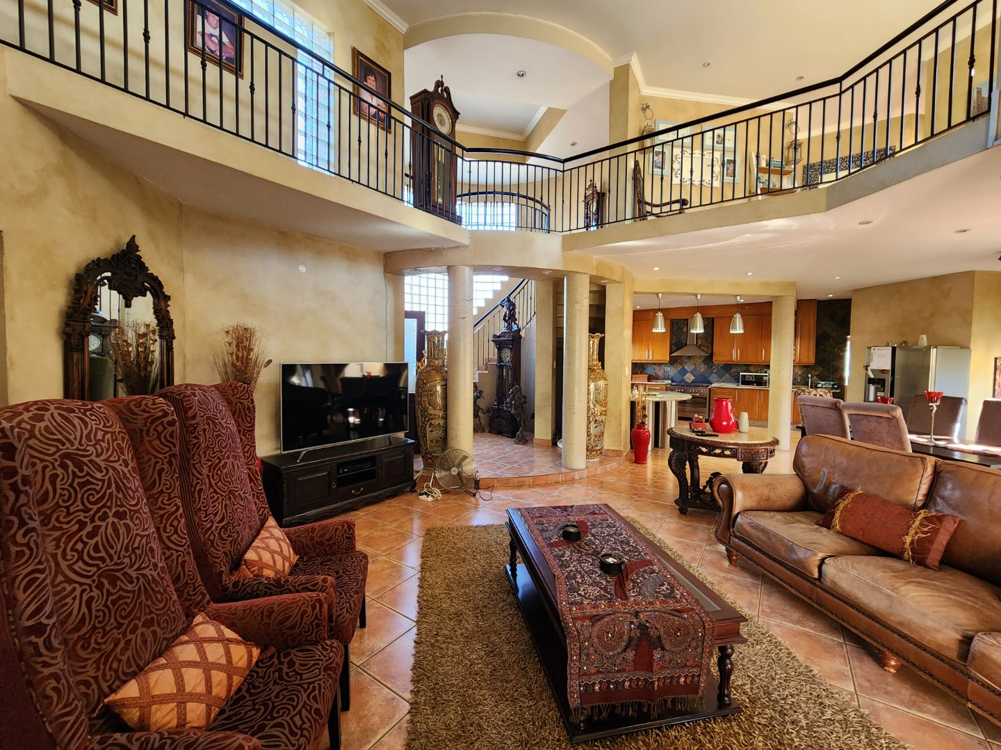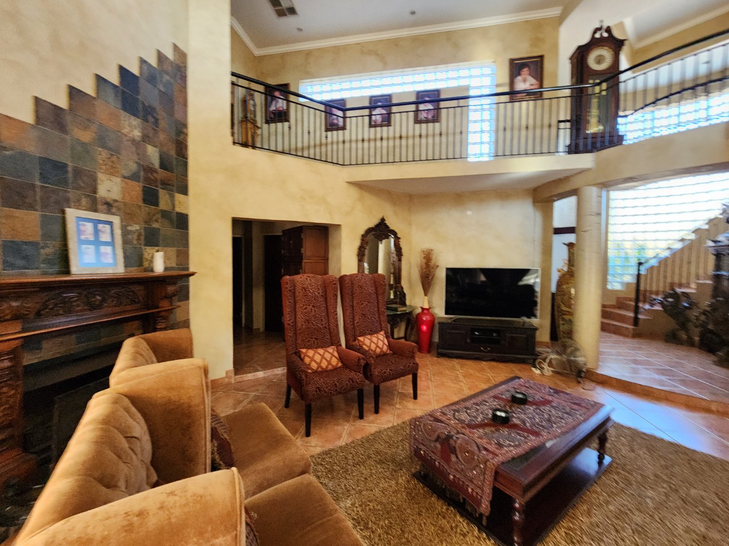 *Expansive Living Area: Open-plan TV lounge with double-volume ceilings and a cozy gas fireplace, ideal for chilly Polokwane evenings.