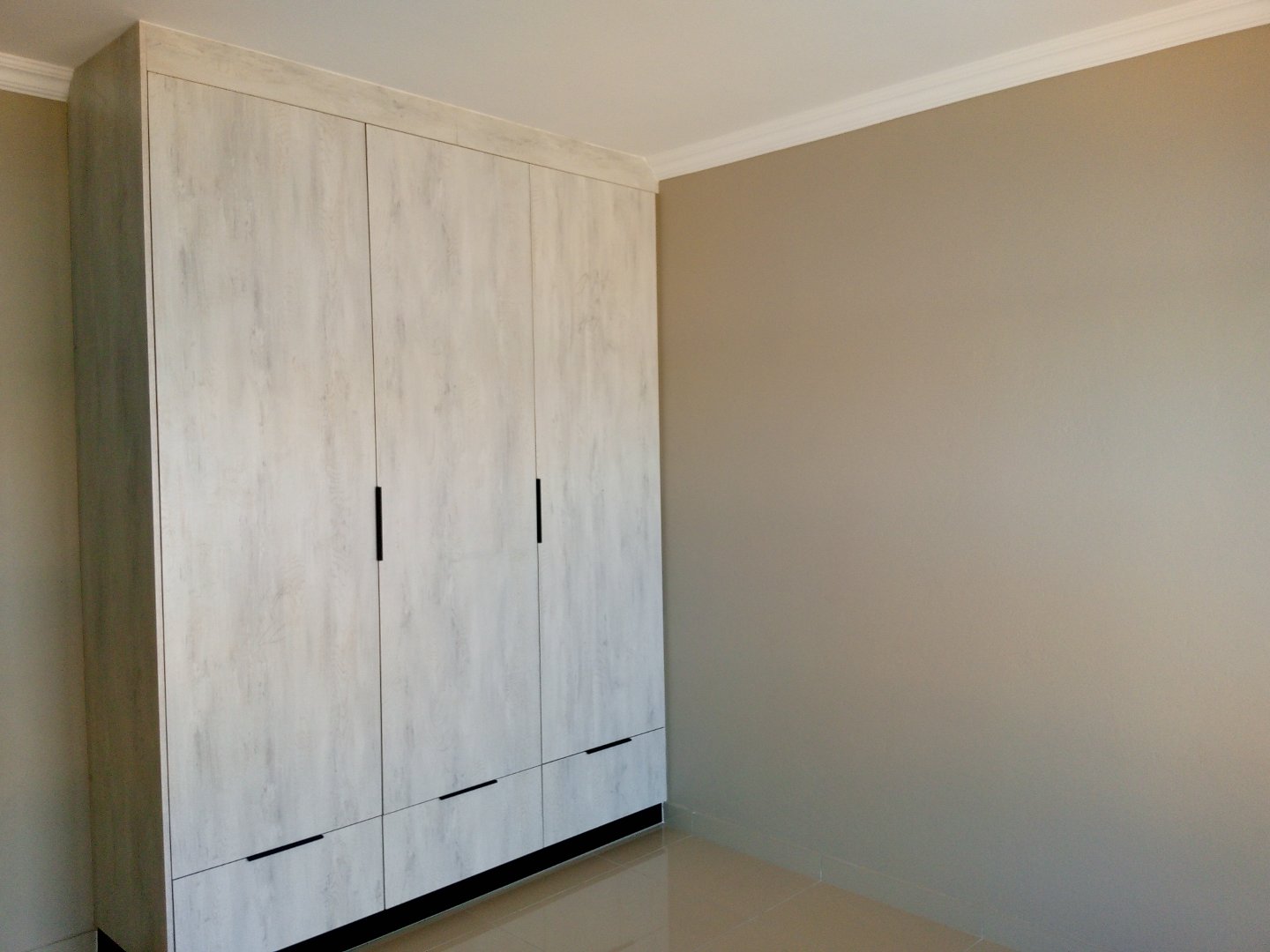 The modern kitchen is beautifully designed, perfect for culinary enthusiasts, while all bedrooms come with built-in cupboards for ample storage. The main bedroom includes a full ensuite bathroom, offering a private retreat, and the other two bedrooms share a bathroom conveniently located between them.