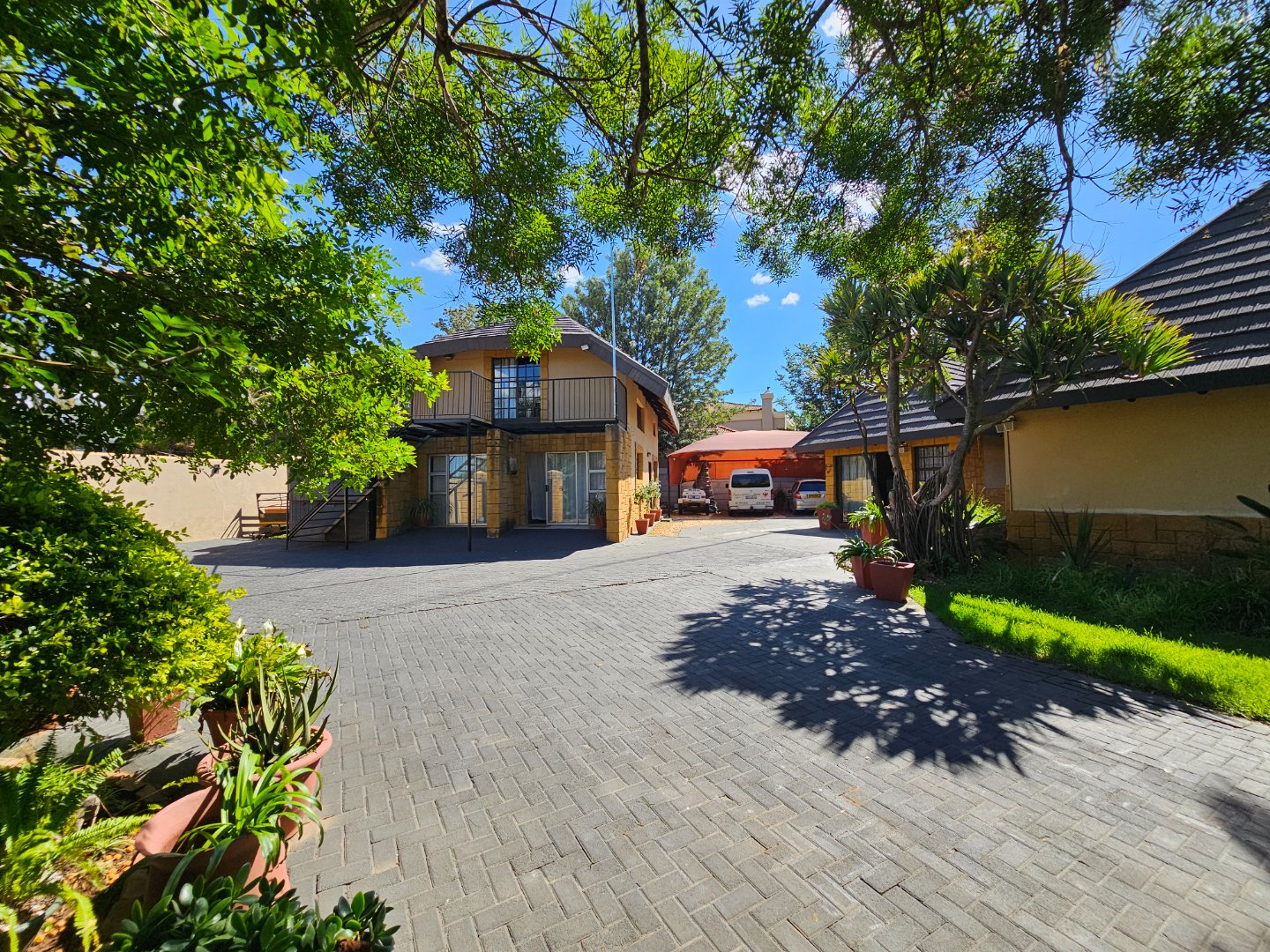 Ample Shaded Parking: Plenty of space for your vehicles and guests.