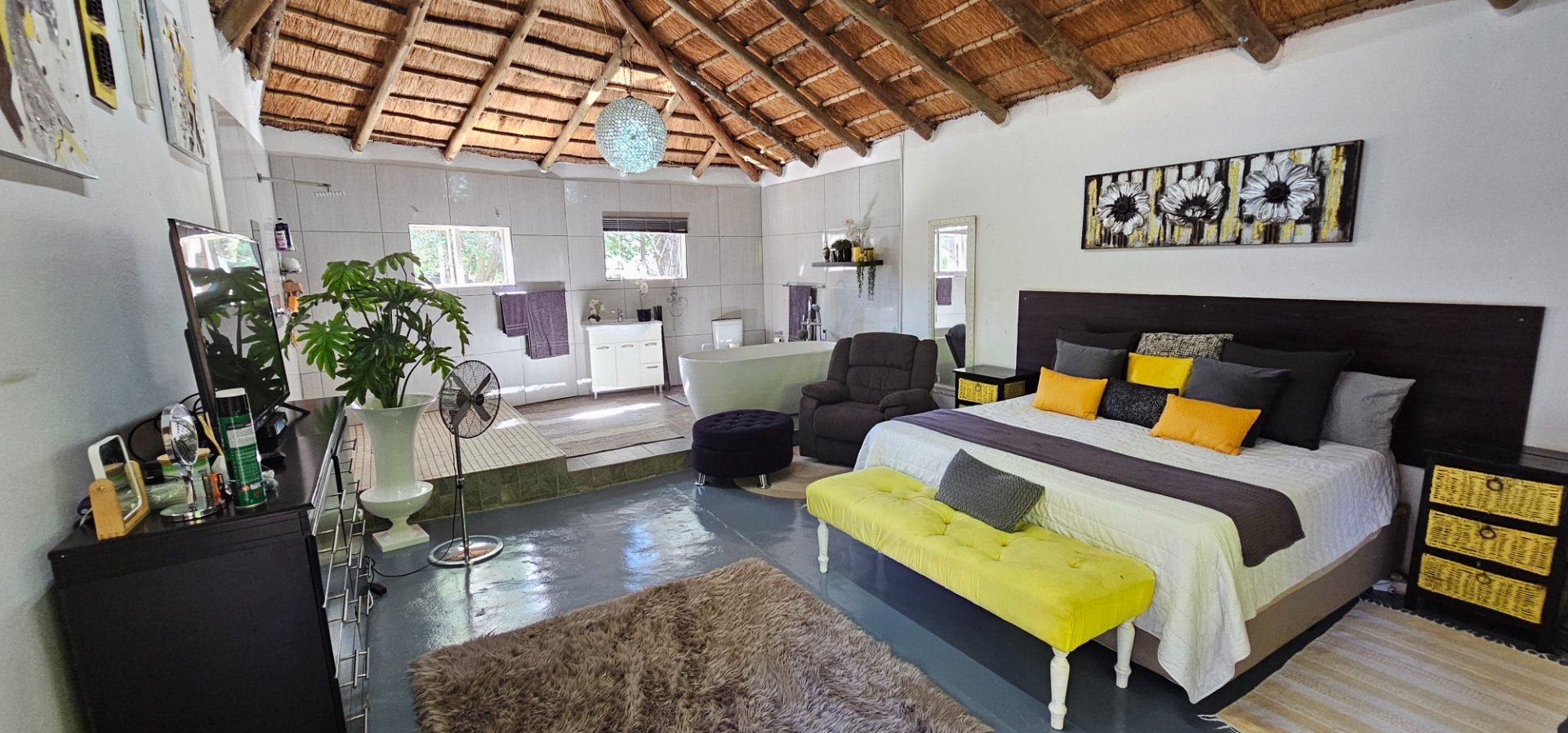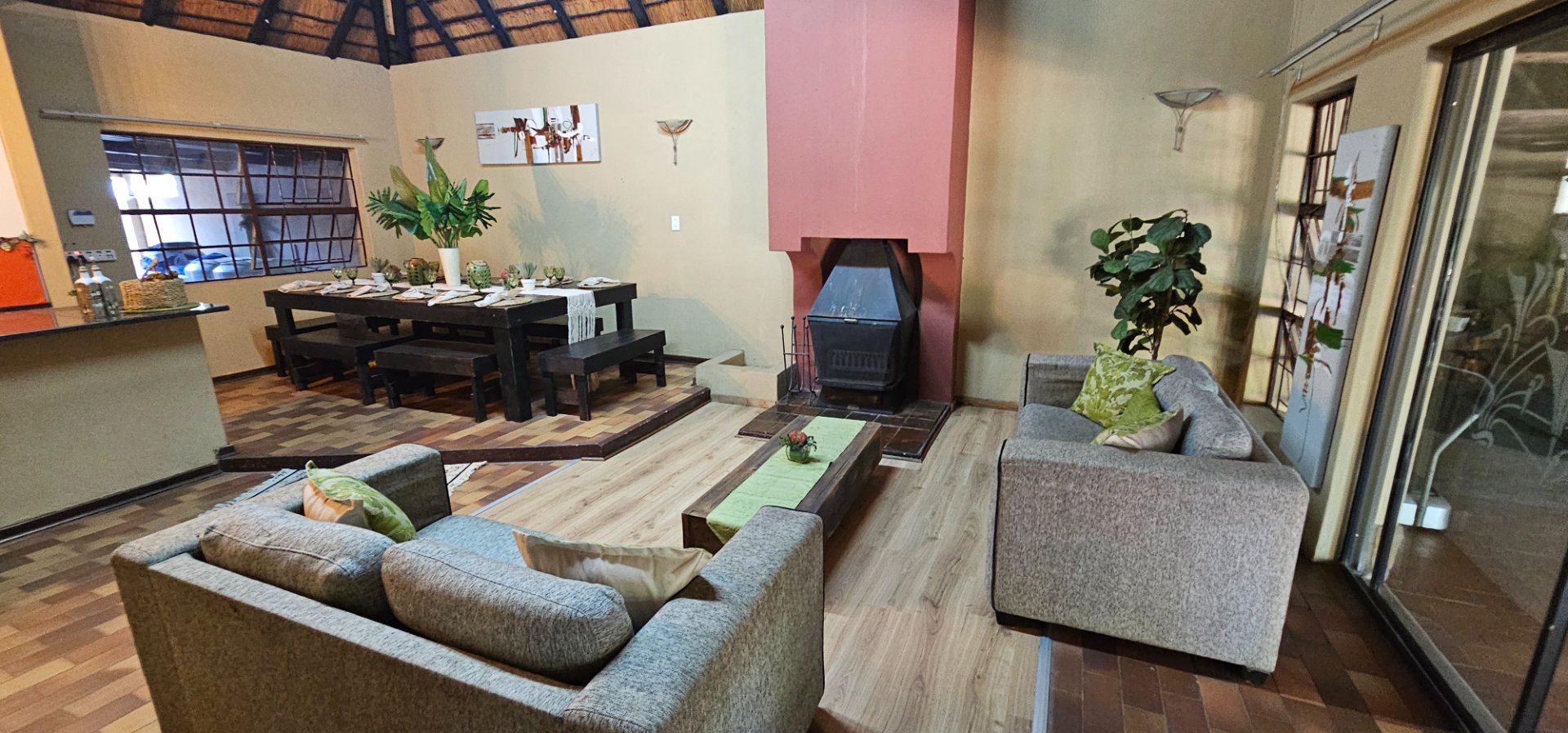 Unique Thatched Roof Charm: Modernized with brand-new Harvey tiles – beauty meets durability!