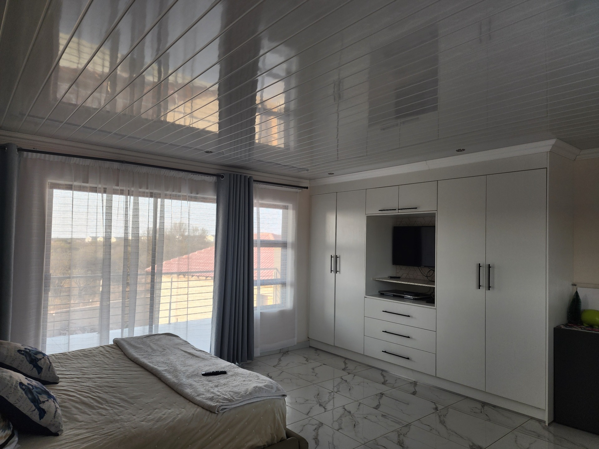 The main bedroom boasts sliding doors that lead out to a private yet spacious balcony, perfect for morning coffee or evening relaxation.