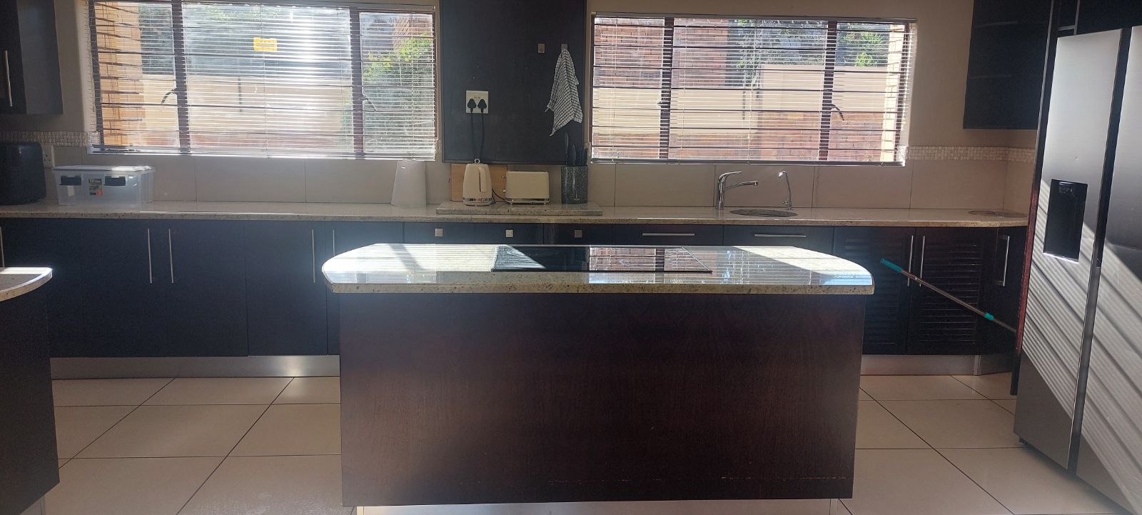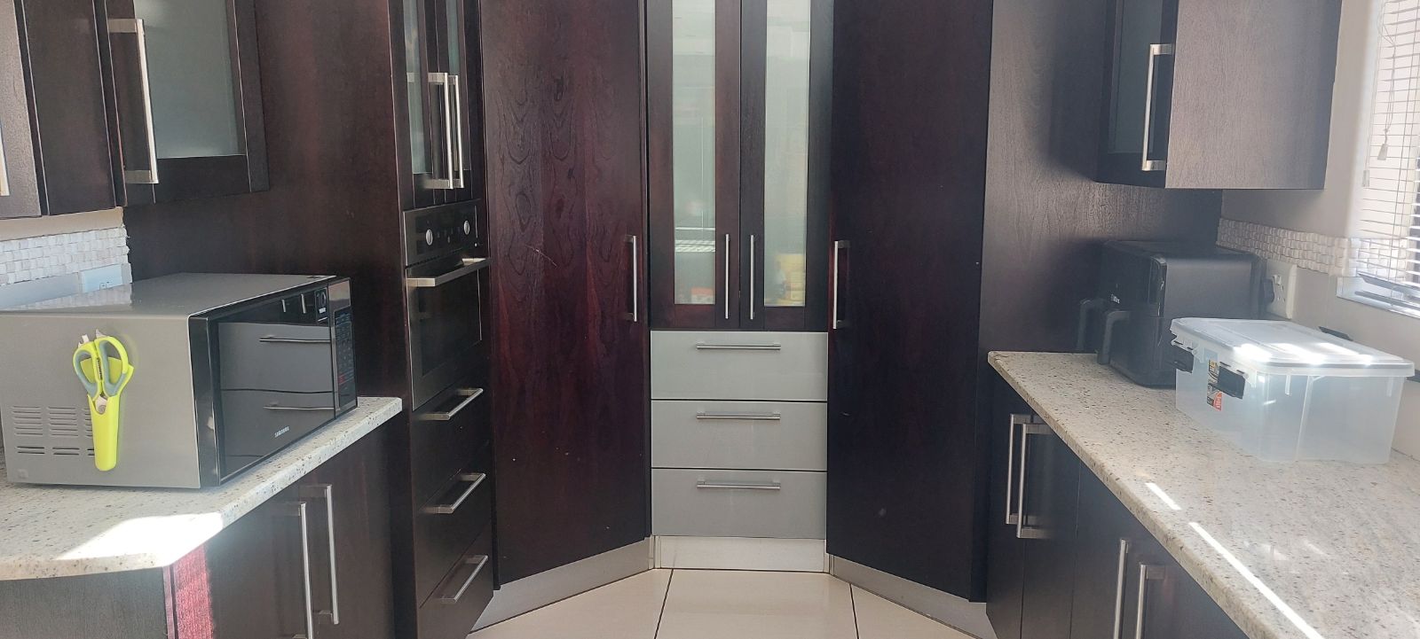 Modern kitchen with seperate scullery with lots of cupboard space;