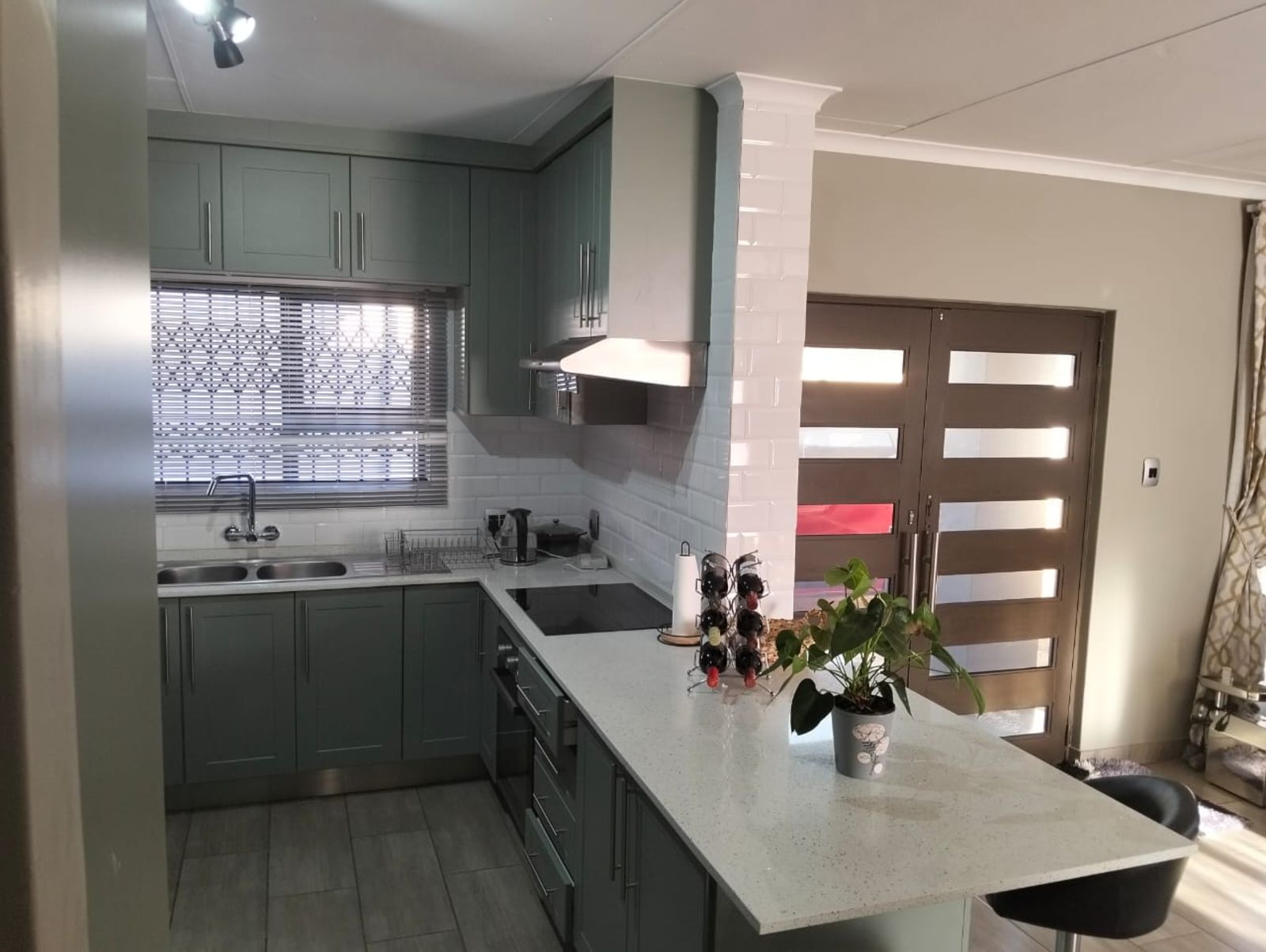 This charming property features a classic tiled roof and durable brick walls, offering timeless appeal and lasting value. Step inside to discover a spacious family lounge that flows seamlessly into a modern open-plan kitchen, fitted with sleek built-in cupboards, a built-in stove and hob, and plenty of counter space for family cooking or entertaining.