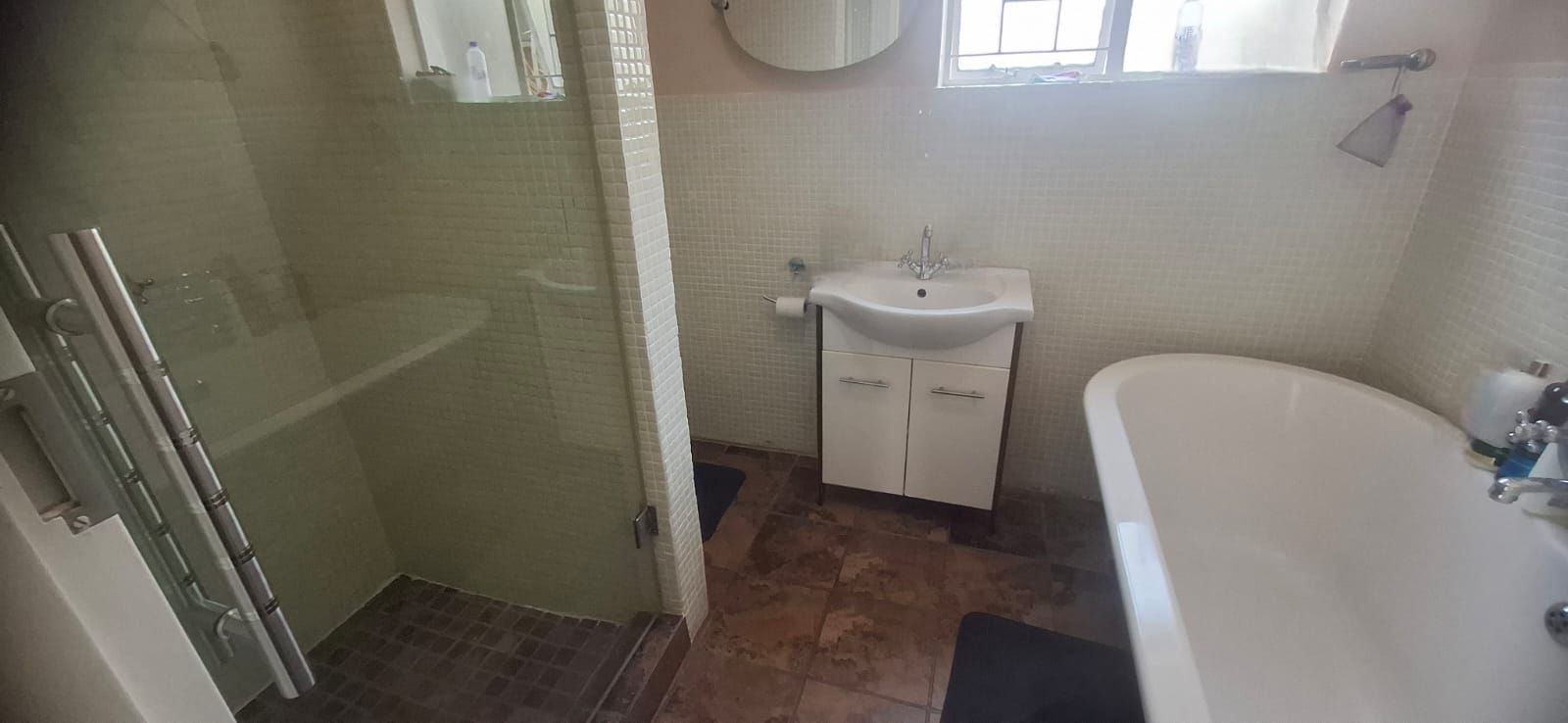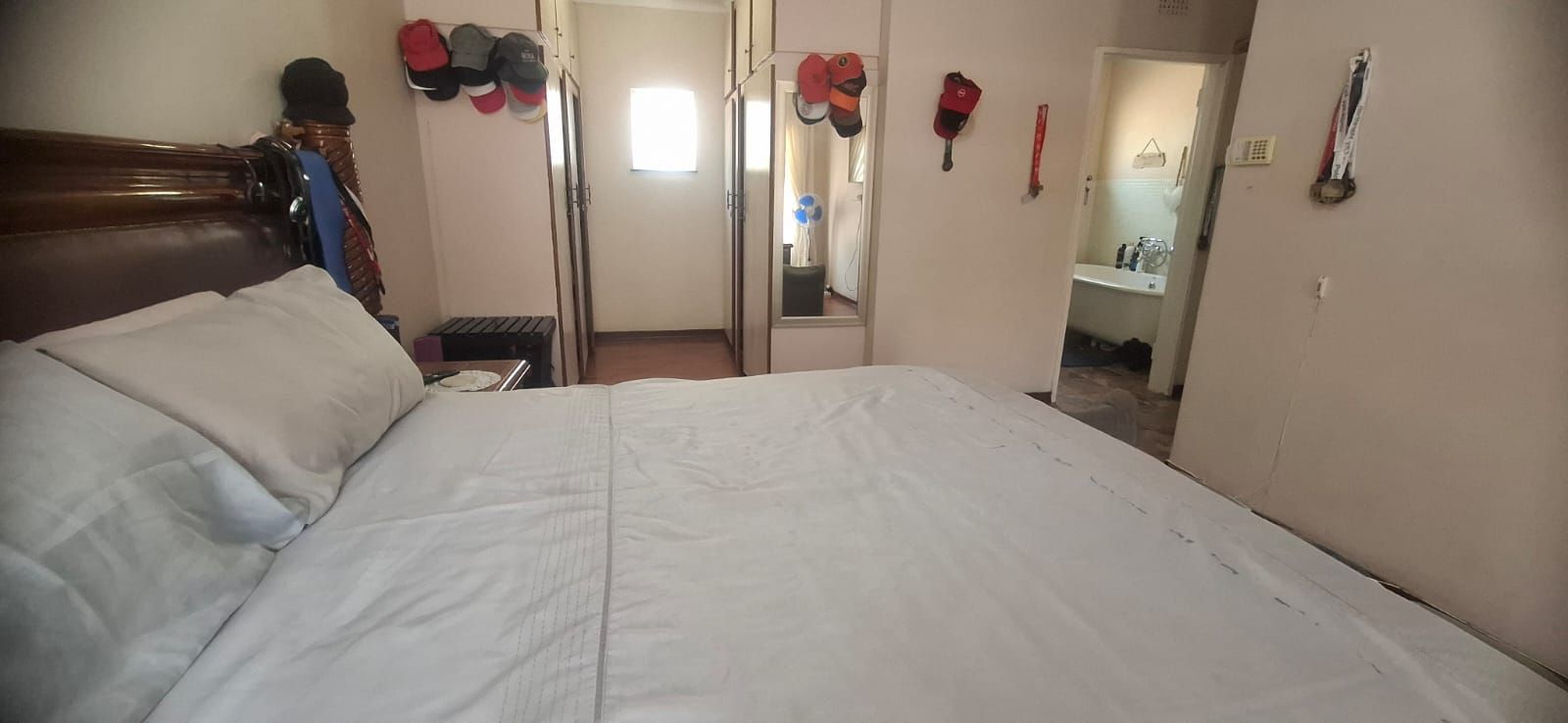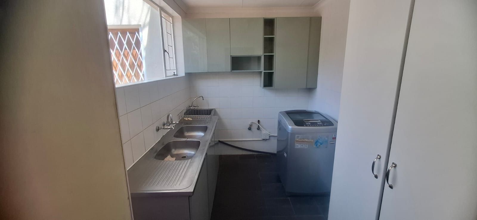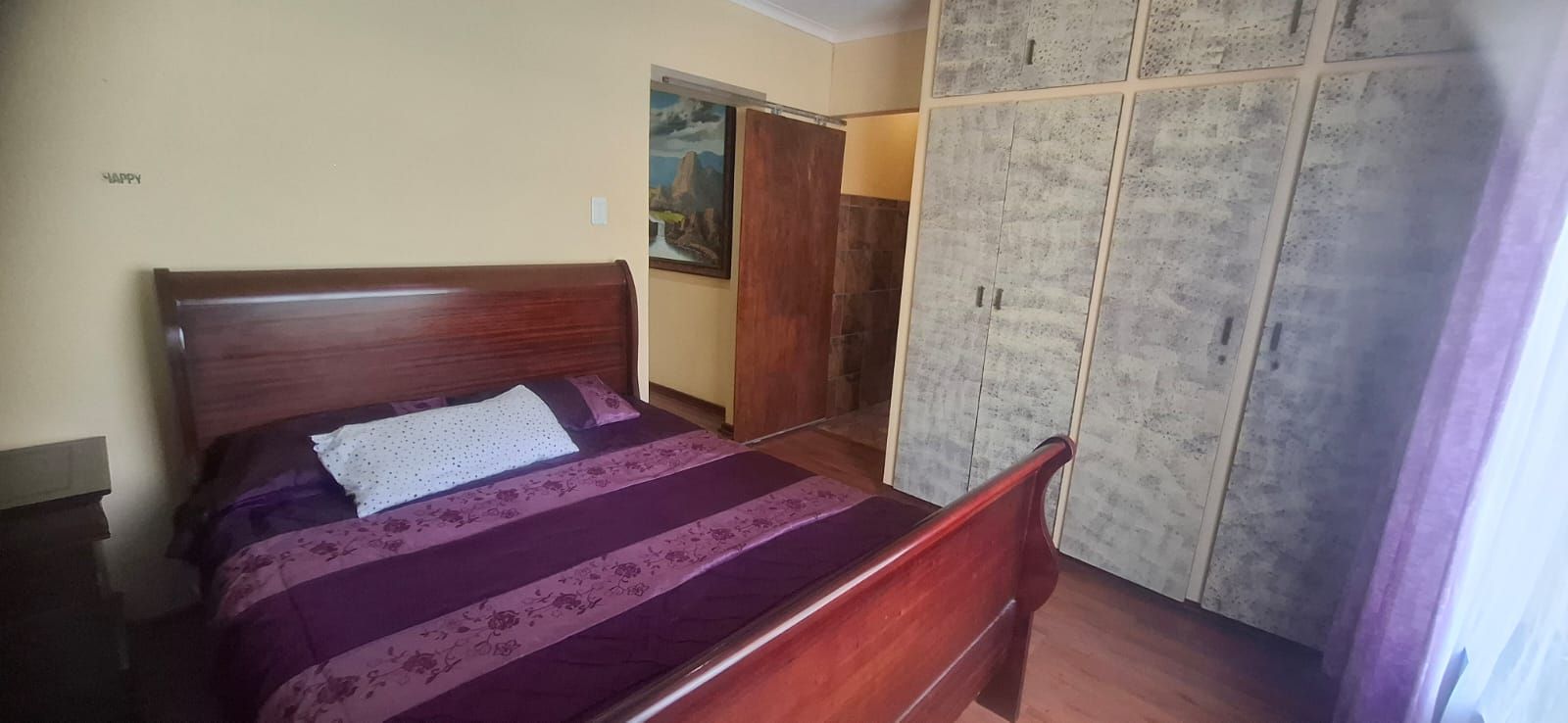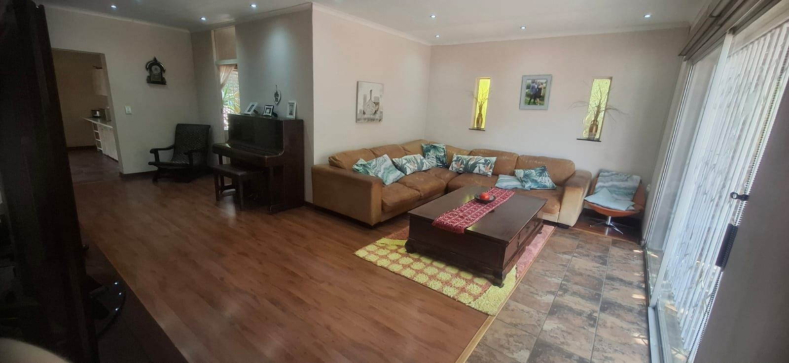 The kitchen is a standout, boasting modern cupboards, a generous layout with room for a central table, a 4-plate gas stove with 2 electric plates, pantry, and scullery.