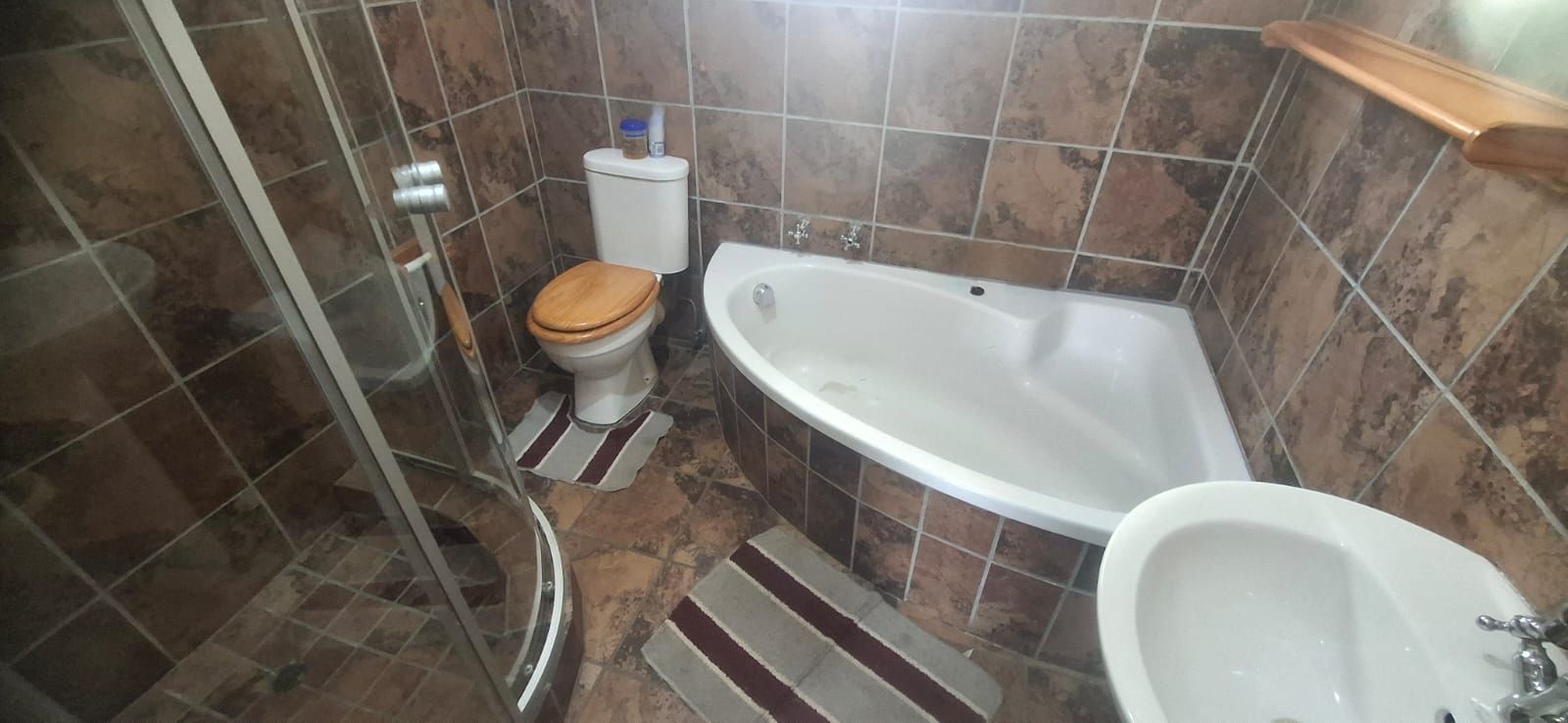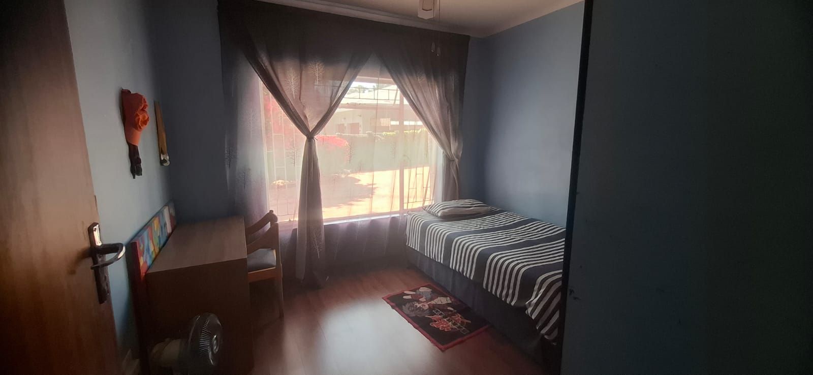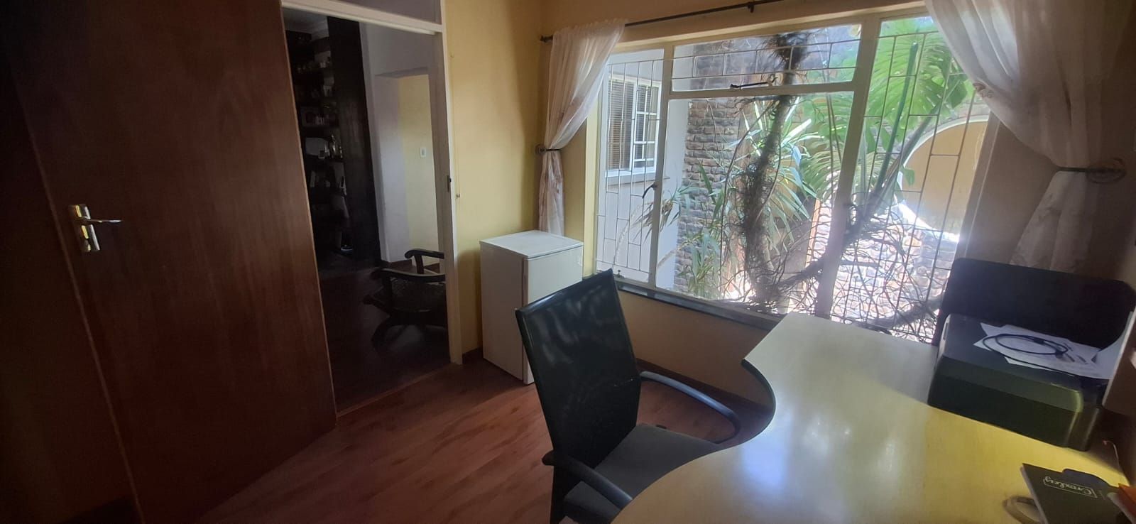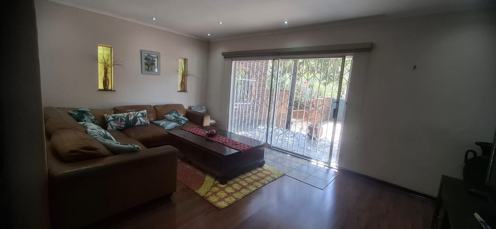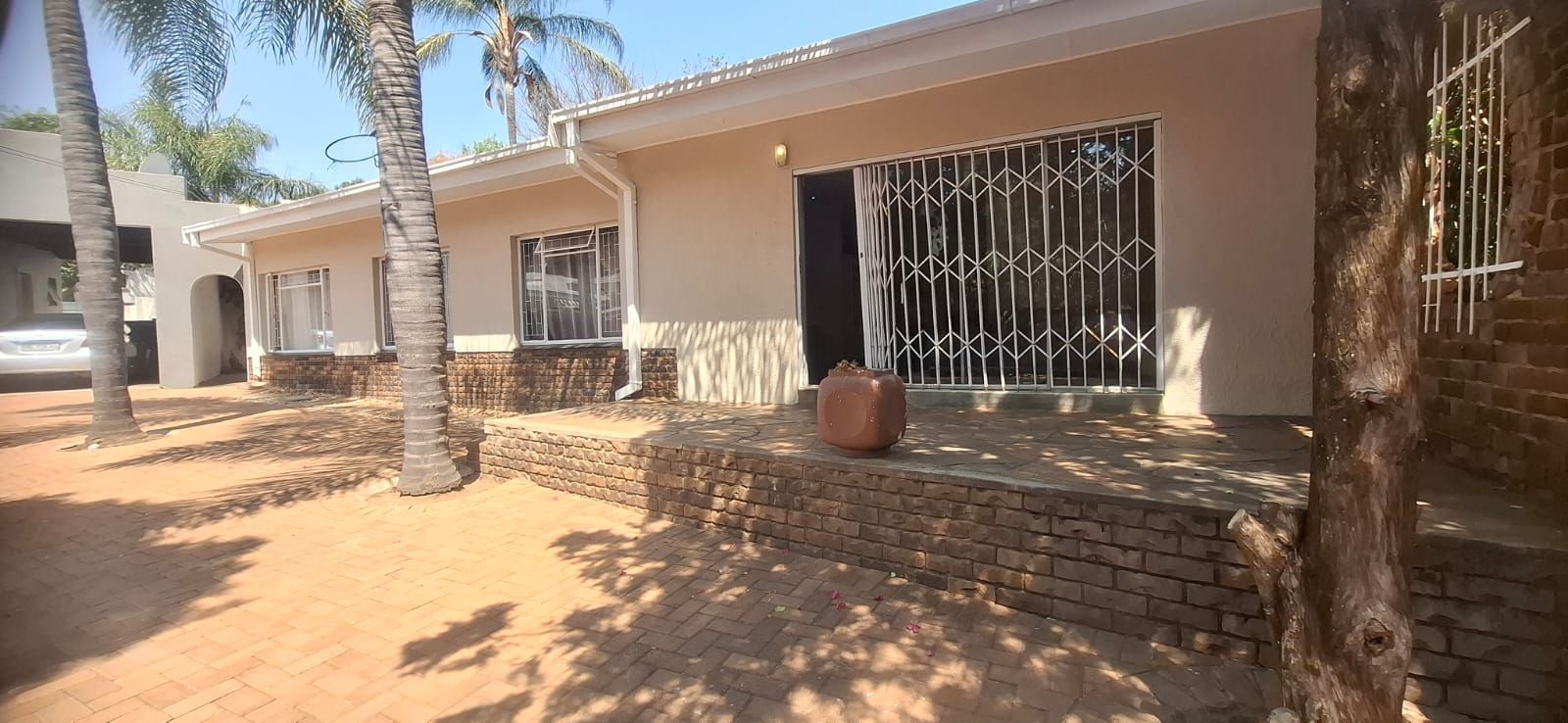 Outdoor living is equally impressive. The swimming pool, paired with a thatched lapa, sets the stage for family braais and celebrations. Parking is abundant with a double garage, carport, and caravan shelter, complemented by ample paved areas. Security is assured with a full alarm system and complete fencing. The low-maintenance garden and water tank add practicality and peace of mind.