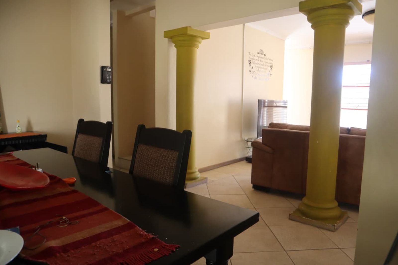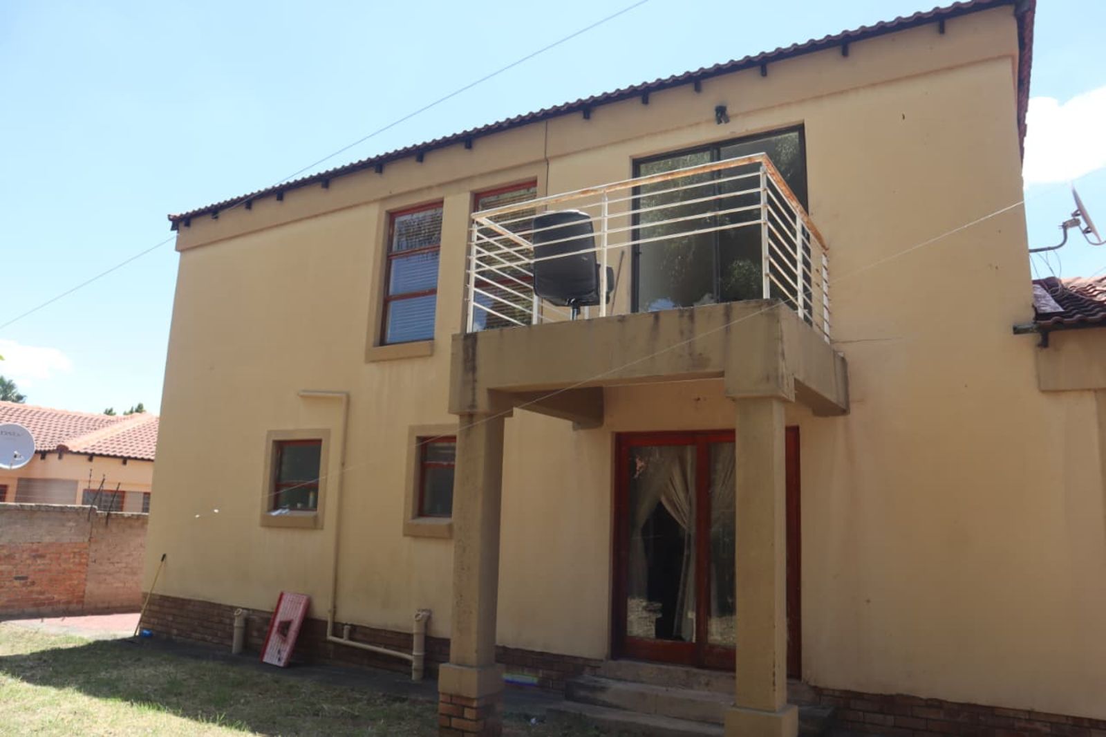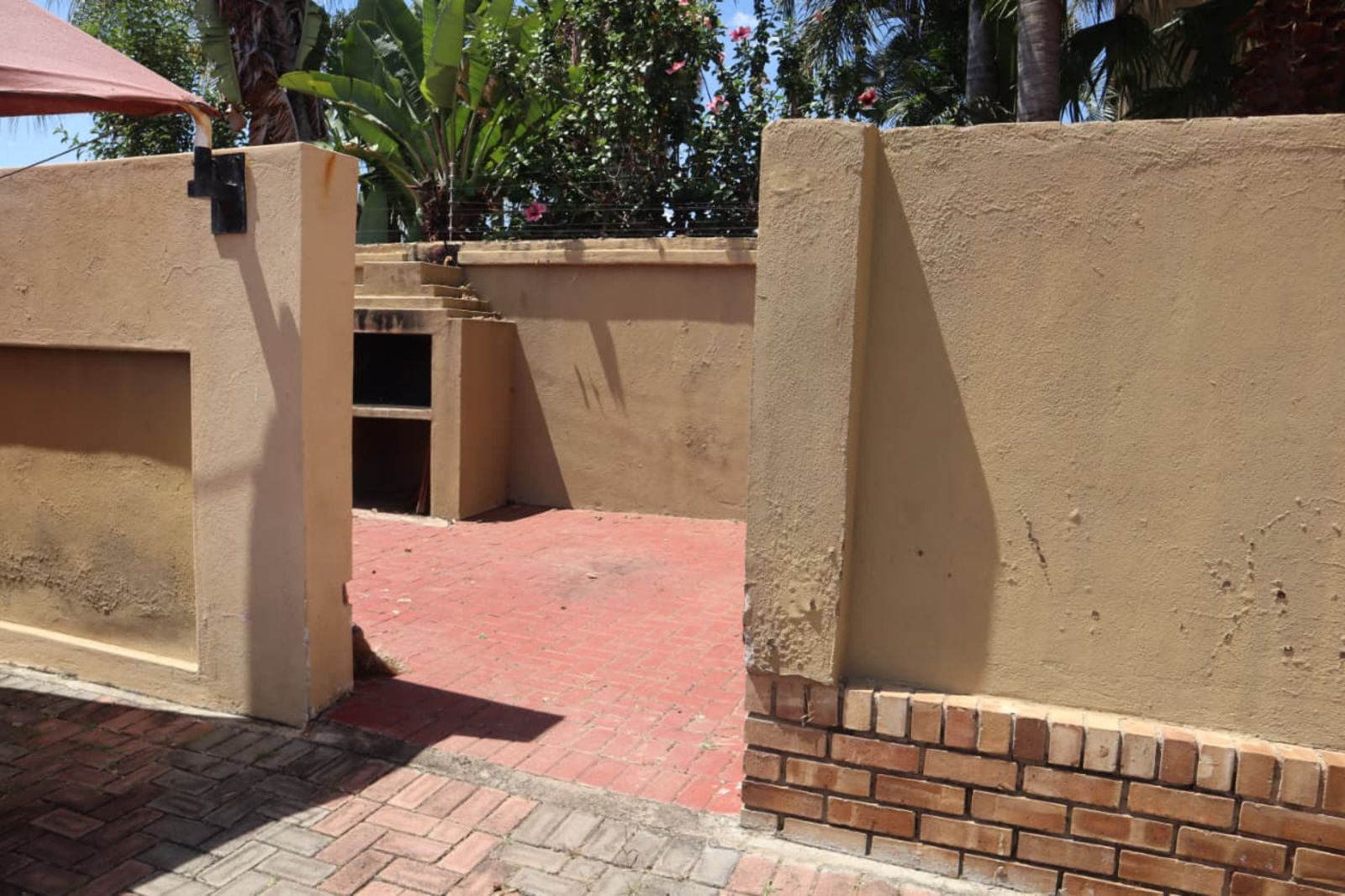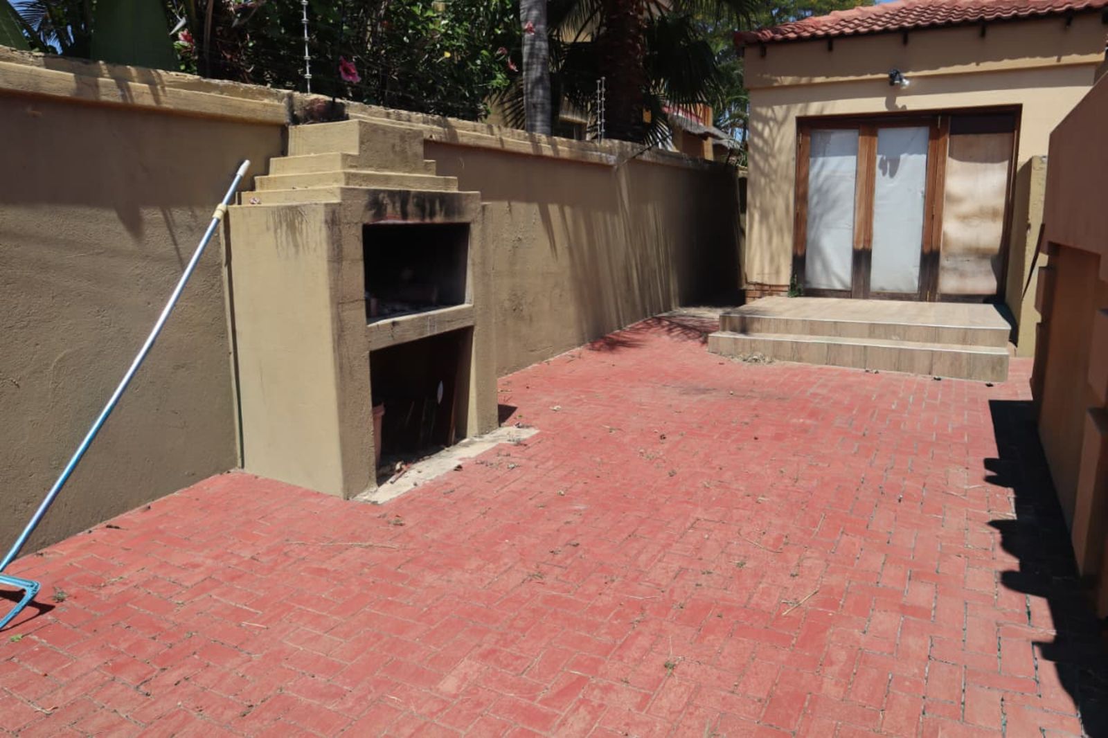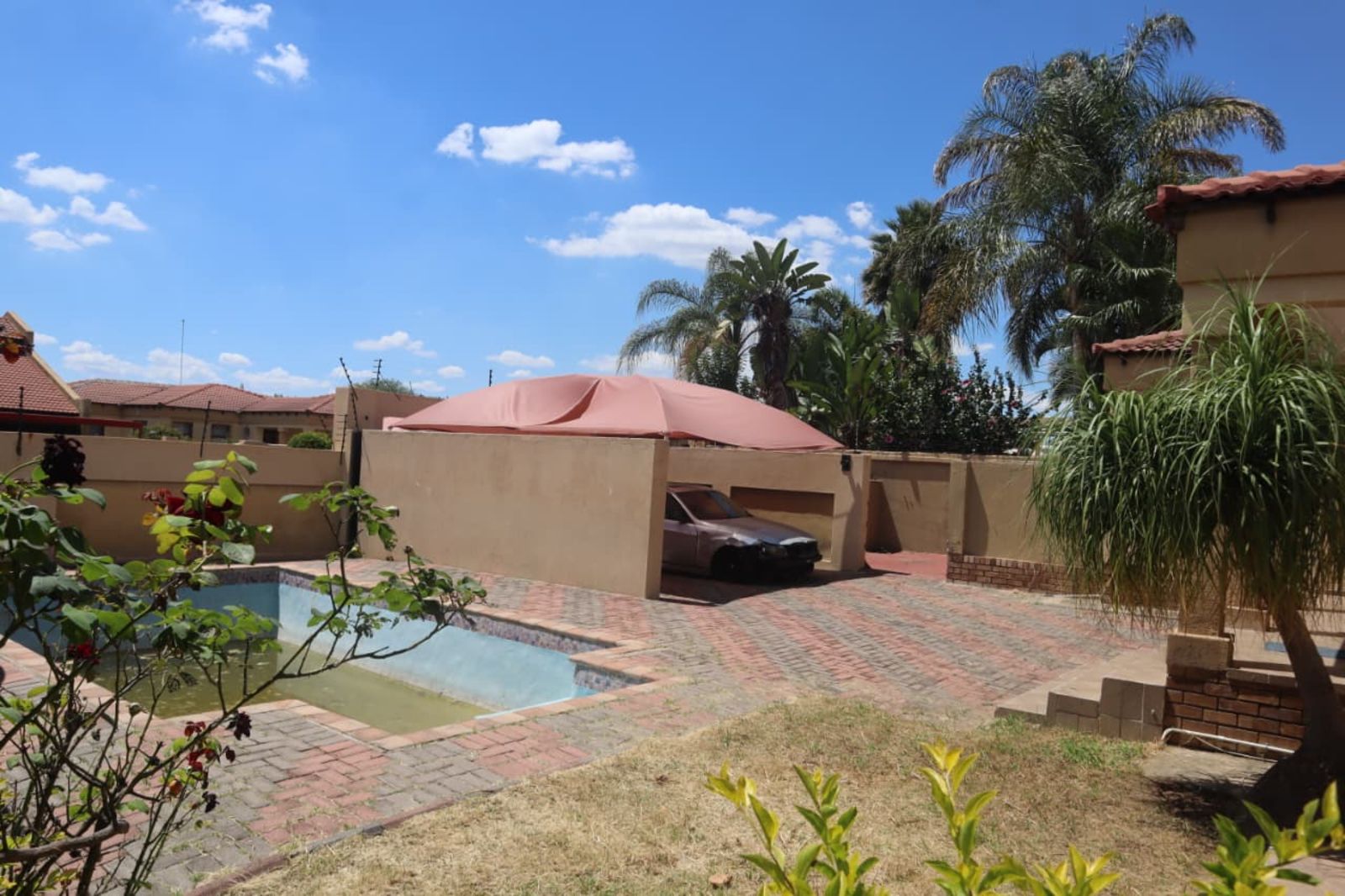 The heart of the home opens up to a private backyard oasis. Whether you’re hosting a weekend braai or relaxing by the sparkling swimming pool, the property is fully enclosed by a durawall, providing an extra layer of seclusion within the estate.