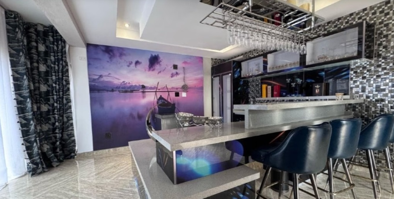 Further enhancing this exceptional home is a sophisticated, stylish bar, perfect for unwinding and entertaining guests. Ample storage space ensures a clutter-free environment, while the separate staff quarters with their own ensuite provide convenience and privacy.