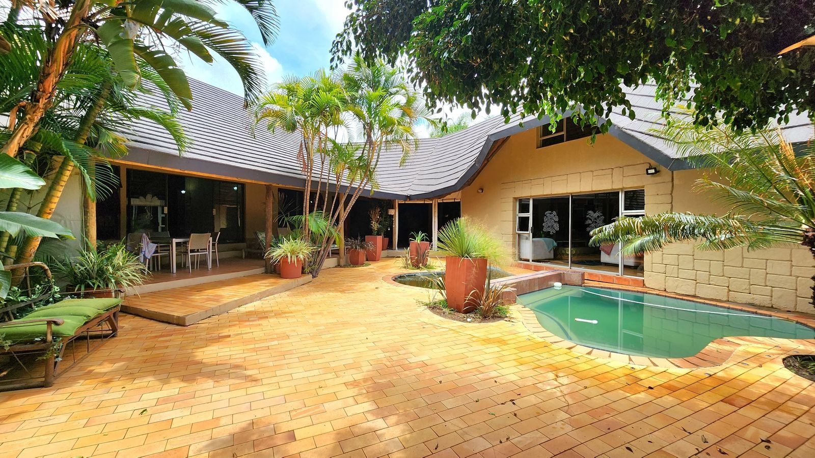 Outdoor living is made easy with a charming lapa, perfect for entertaining, and a sparkling swimming pool to enjoy on warm summer days. The property also includes 2 covered parking spaces for your vehicles' protection.