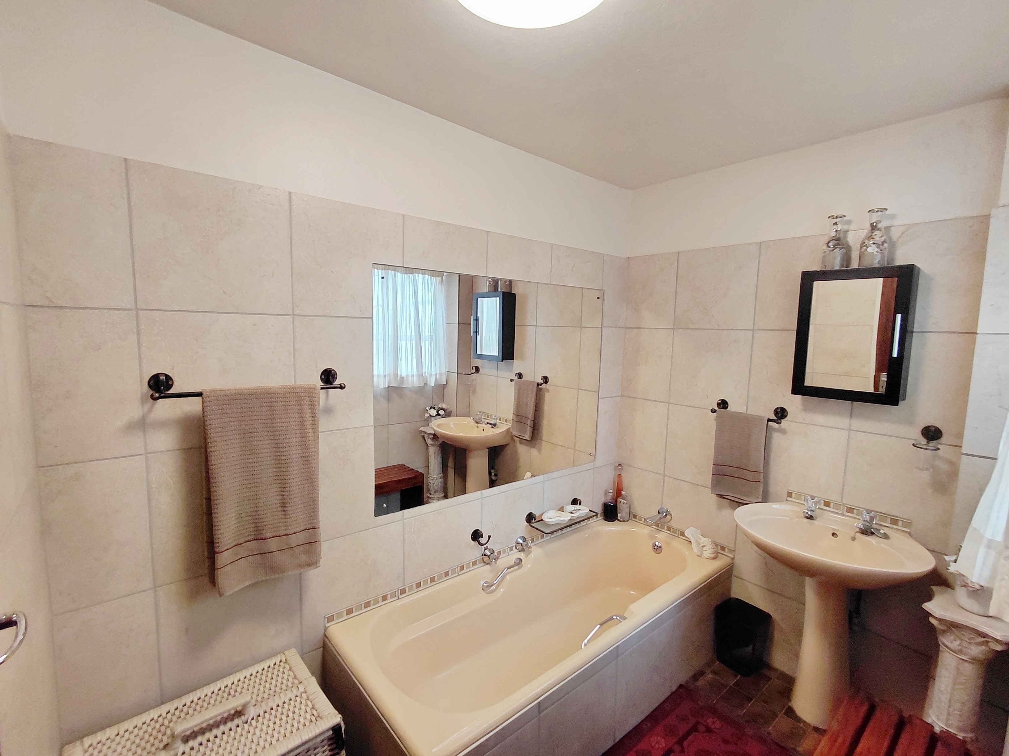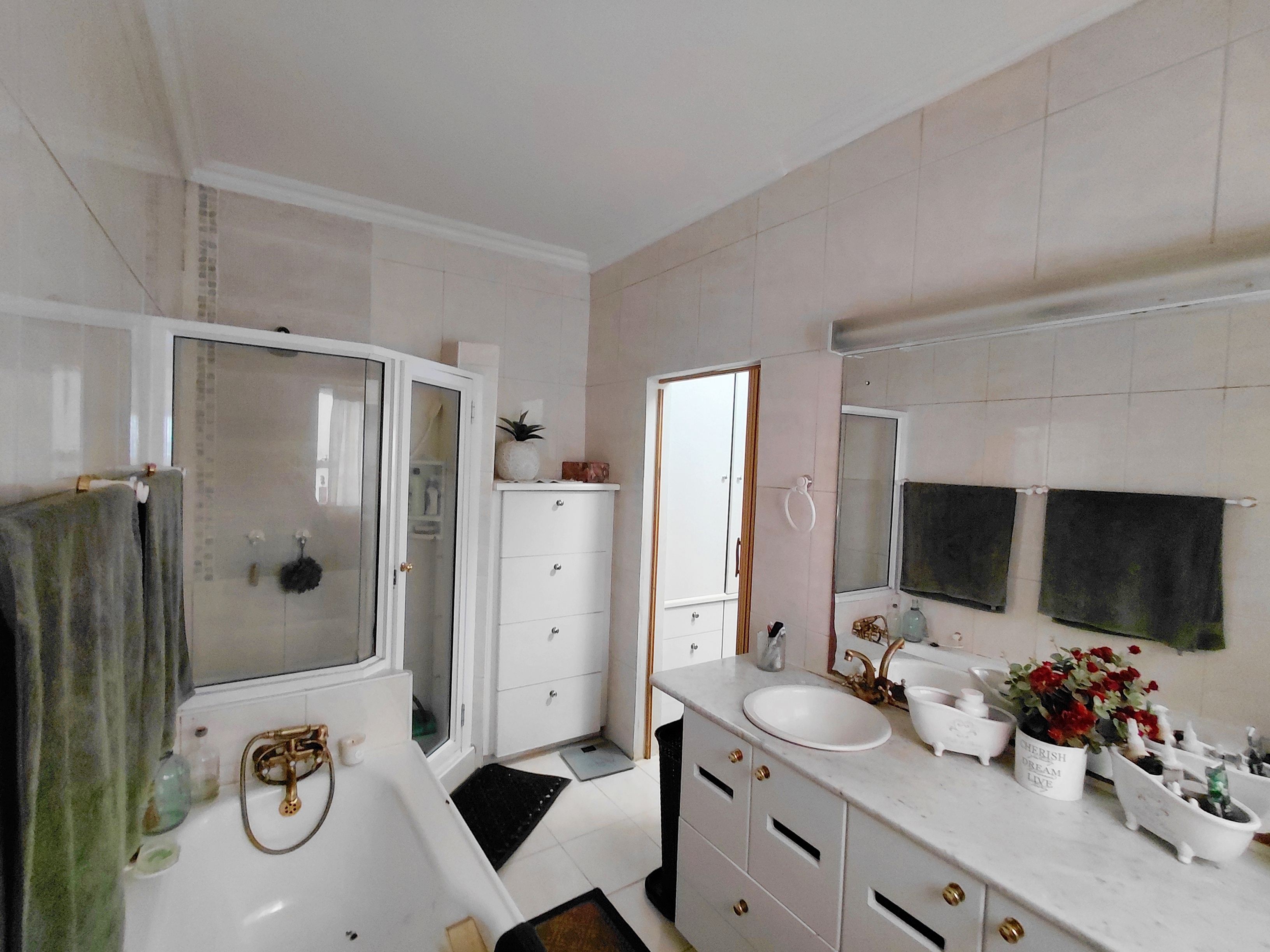 The property offers five generously sized, carpeted bedrooms, all with built-in cupboards. Among them is a delightful loft-style bedroom, perfect as a private retreat, hobby room, or study. With four bathrooms, including two en-suite, the main bedroom also enjoys the luxury of a walk-in closet.