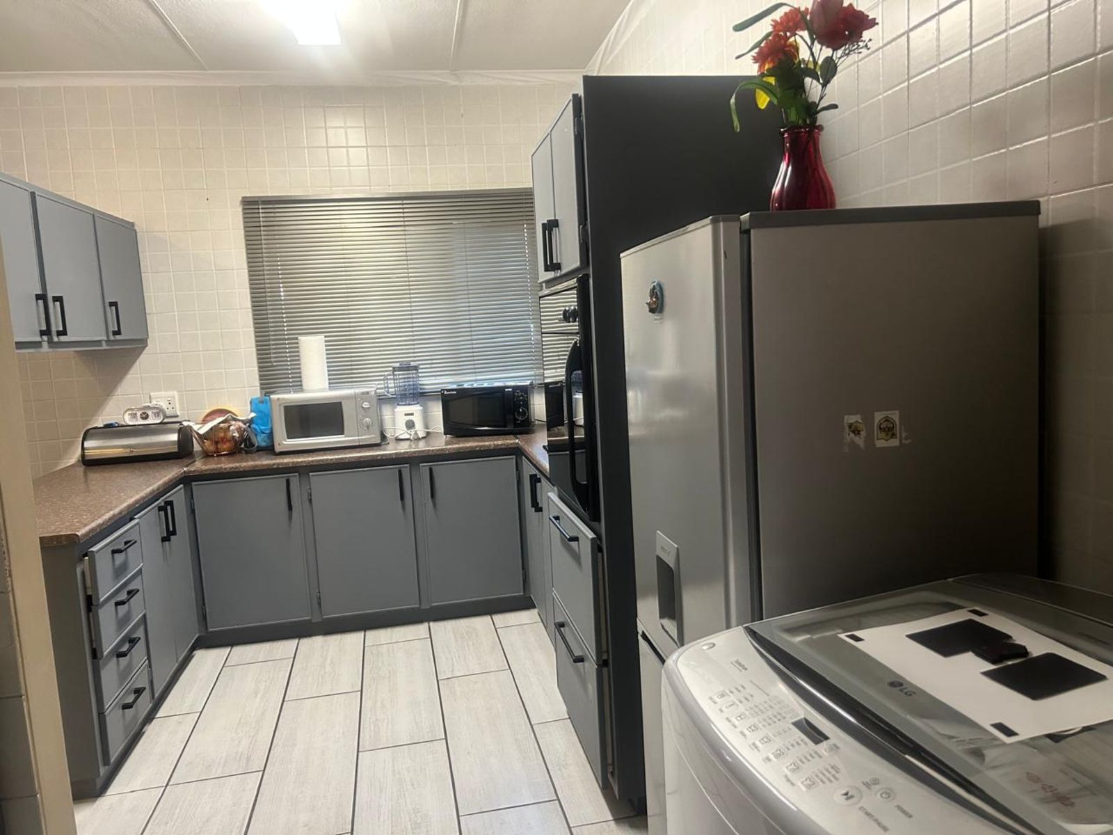 The open-plan layout creates a warm and inviting atmosphere. The kitchen flows seamlessly into the spacious TV room and dining area, making it ideal for entertaining or simply enjoying quality time with loved ones. The kitchen is equipped with modern finishes, ample cupboard space, and room for all your appliances.