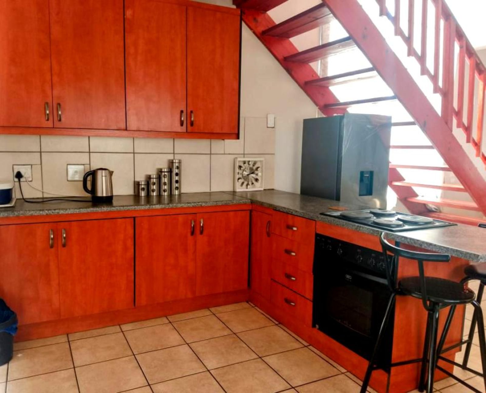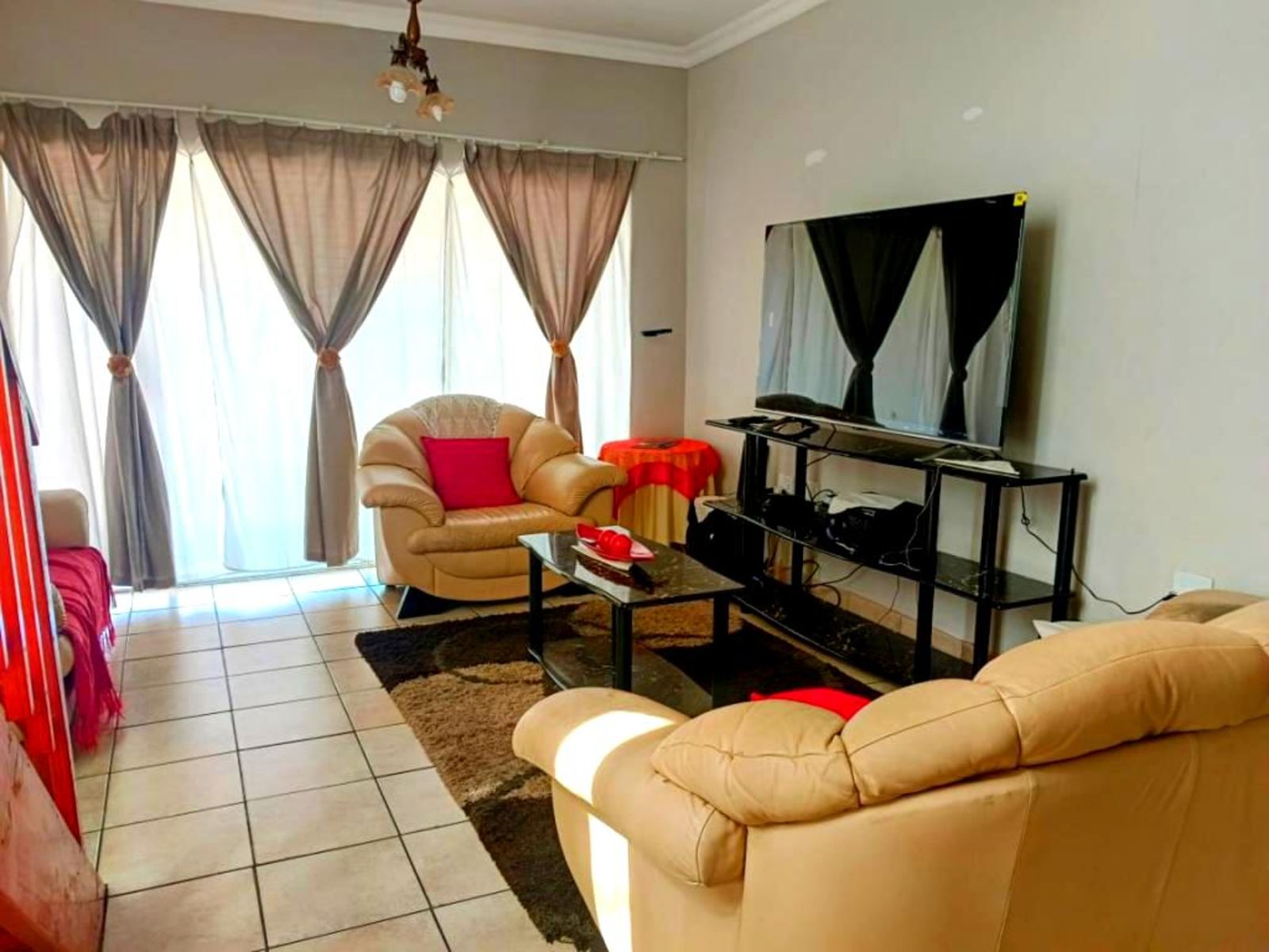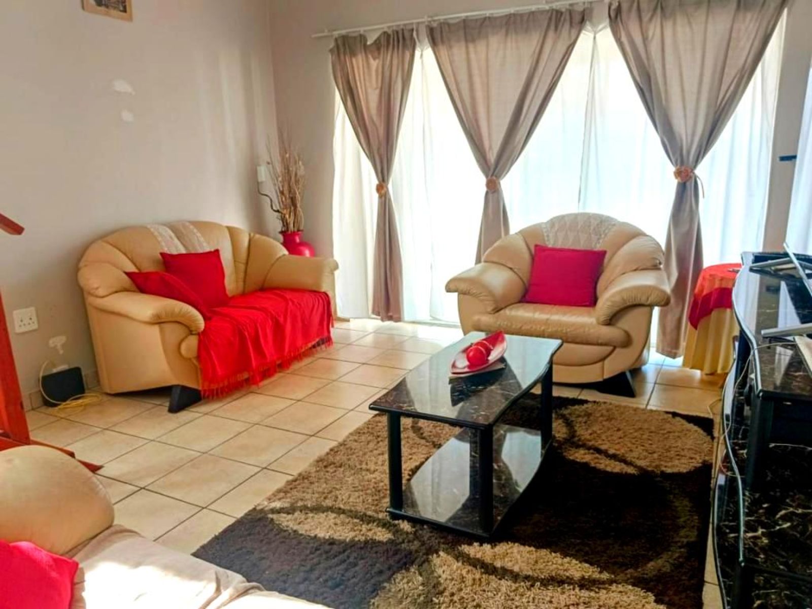 This charming double-storey townhouse is located in a secure and well-maintained estate, making it an ideal choice for first-time buyers or families looking to scale down without compromising on comfort. The ground floor welcomes you with a spacious open-plan lounge and kitchen area, featuring ample built-in cupboards and two sliding doors that create a seamless flow between indoor and outdoor living spaces. The layout is designed for easy living and entertaining, offering both functionality and style.