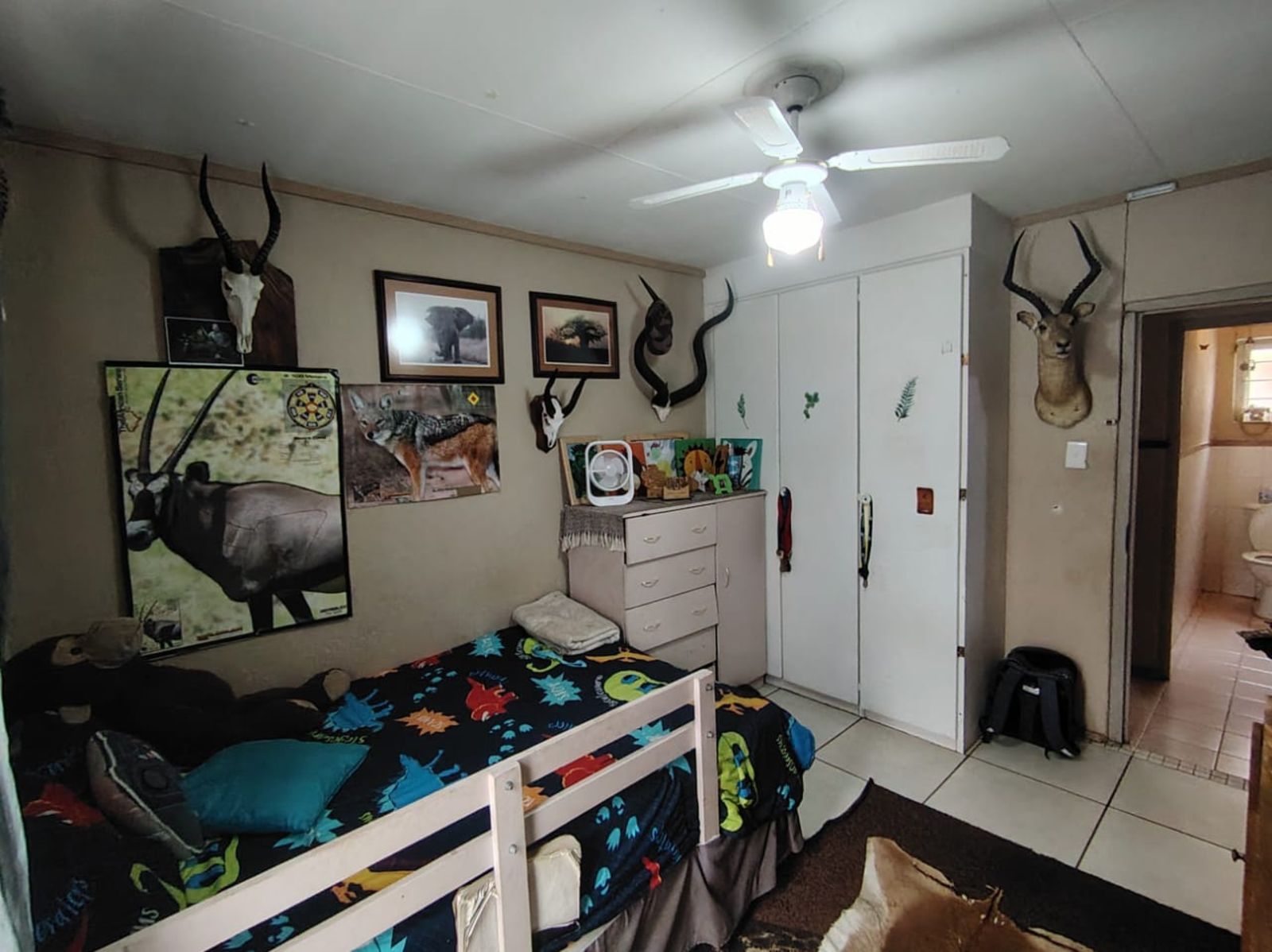 The home offers an inviting open-plan layout that leads out onto a covered veranda with a built-in braai, creating a perfect space for relaxing or entertaining. The property is also equipped with a 5,000L JoJo water tank, an outside toilet, a DSTV satellite dish, and a Wendy house that can be used for storage or as a workspace. For added peace of mind, the house includes a reliable alarm system.