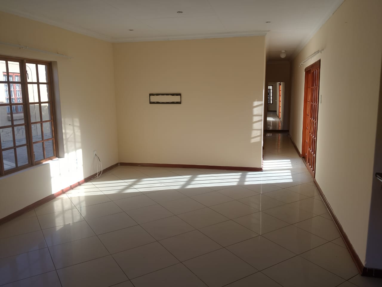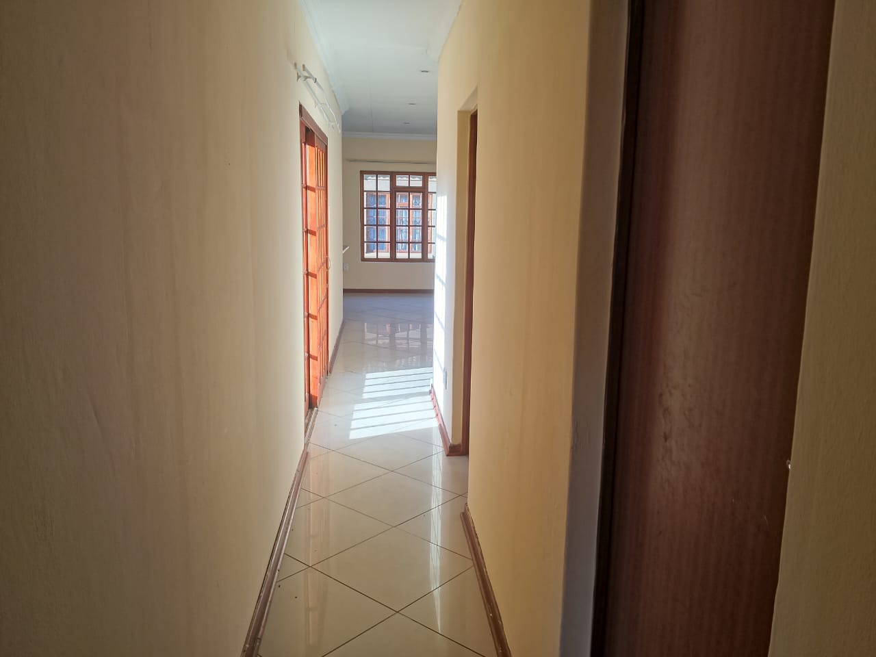 A passage leads to three bedrooms – one with an en-suite bathroom, while the other two share a bathroom.