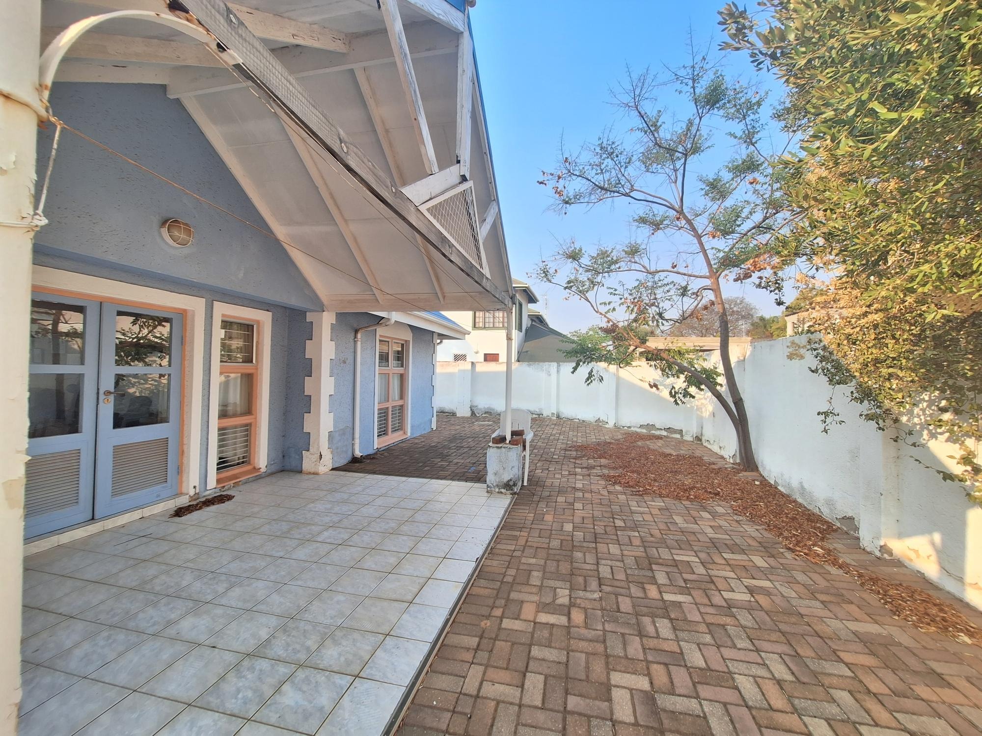 Outside, the property boasts two garages and an extra parking space, perfect for accommodating guests or additional vehicles. The yard is fully paved, minimizing maintenance and leaving a blank canvas for outdoor features like a built-in braai or pergola to make this space your own. While there is no established garden, the yard size allows for plenty of creativity to craft an entertainment-friendly oasis.