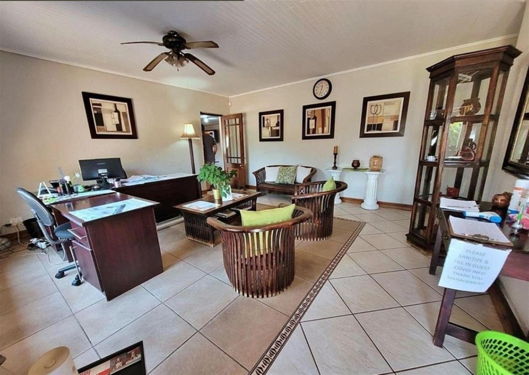 Upon entering, you are greeted by a welcoming reception area that sets the tone for a warm and inviting atmosphere. The property also boasts a well-equipped admin office, laundry room, and public toilets, ensuring convenience for both staff and guests alike.