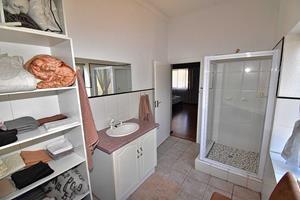 In addition to the main house, the property includes a charming cottage with its own private entrance. This self-contained unit offers a single bedroom, a lounge, a sizable kitchen, and a bathroom. Adjacent to the cottage is a laundry room with an additional bathroom, perfect for use as staff quarters.