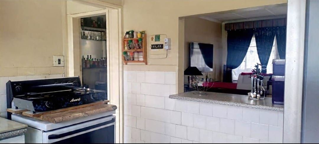This well-proportioned home offers spacious, tiled bedrooms with ceiling fans, including a large main bedroom. The living areas are open plan and tiled, featuring a generous lounge and a spacious dining room with a convenient serving hatch. The kitchen is practical with melamine finishes and steel fittings, complemented by a four-plate stove. The home includes a standard bathroom with a shower over the bath, as well as a separate guest toilet.