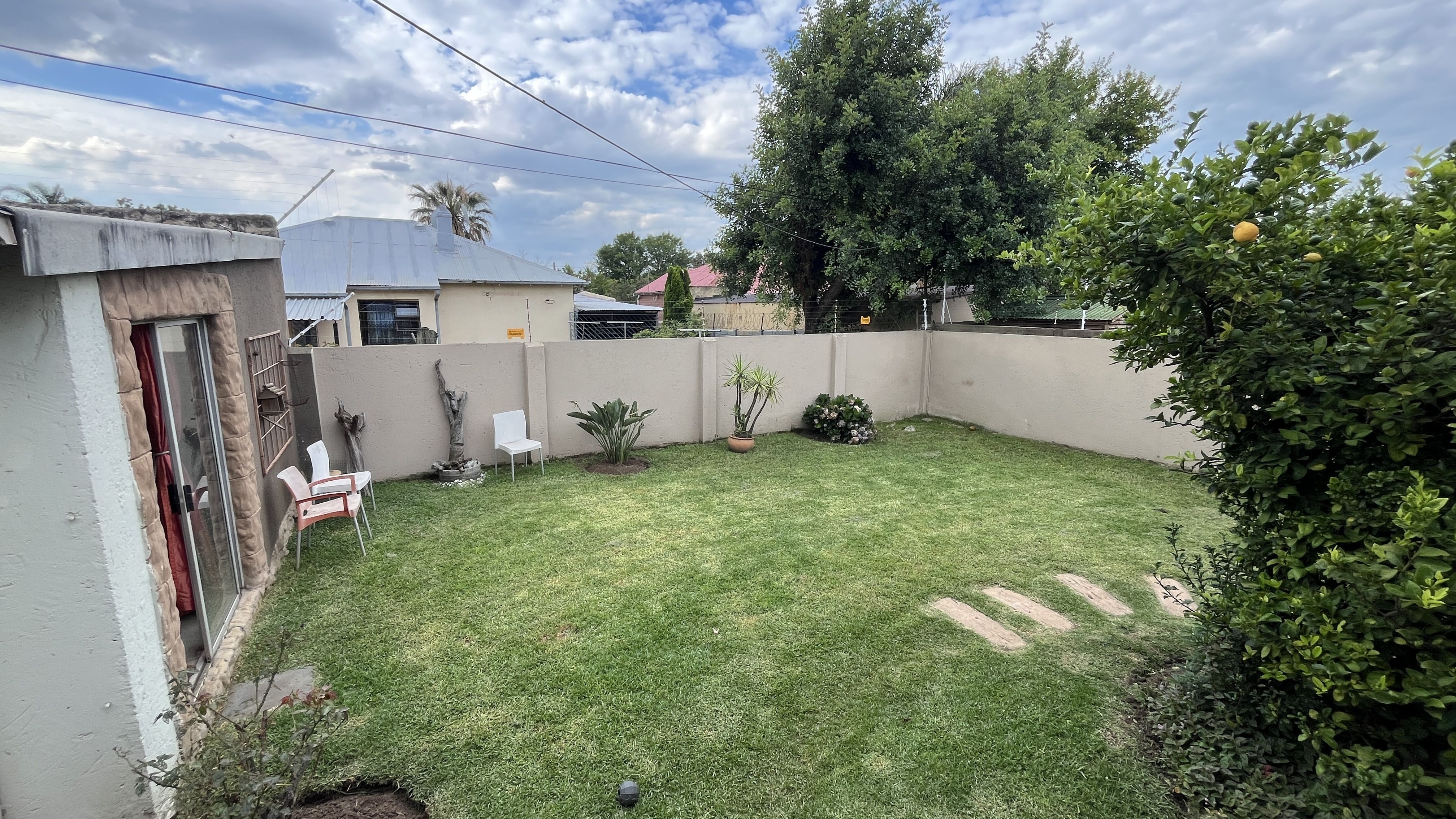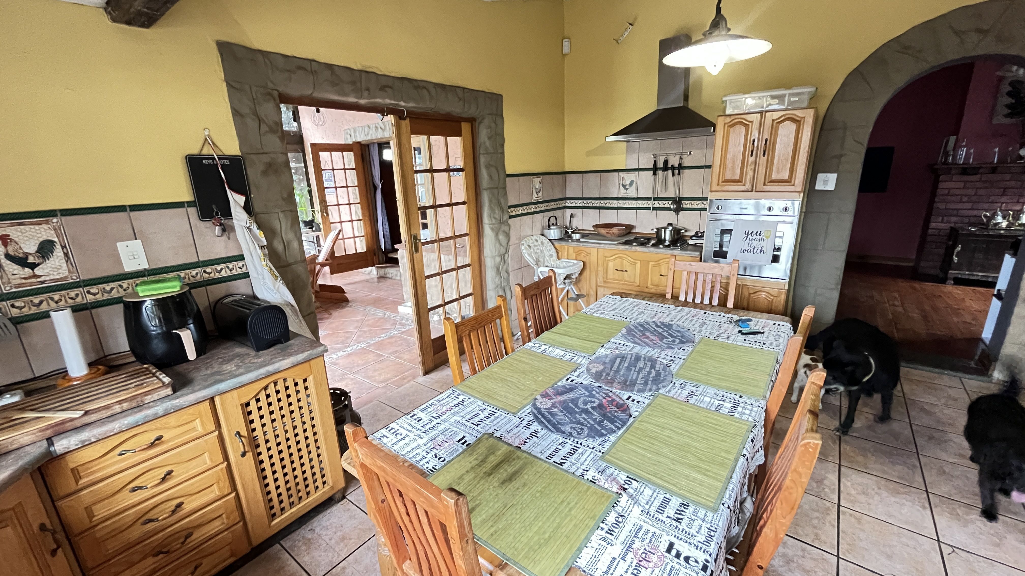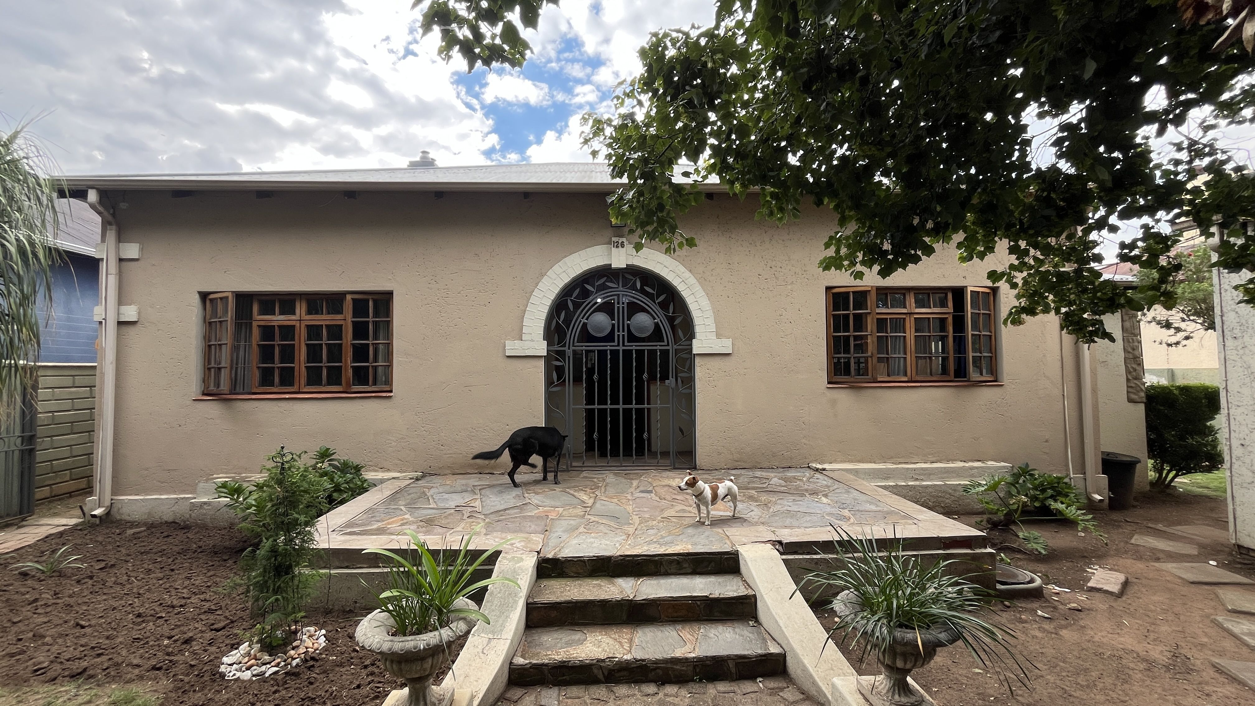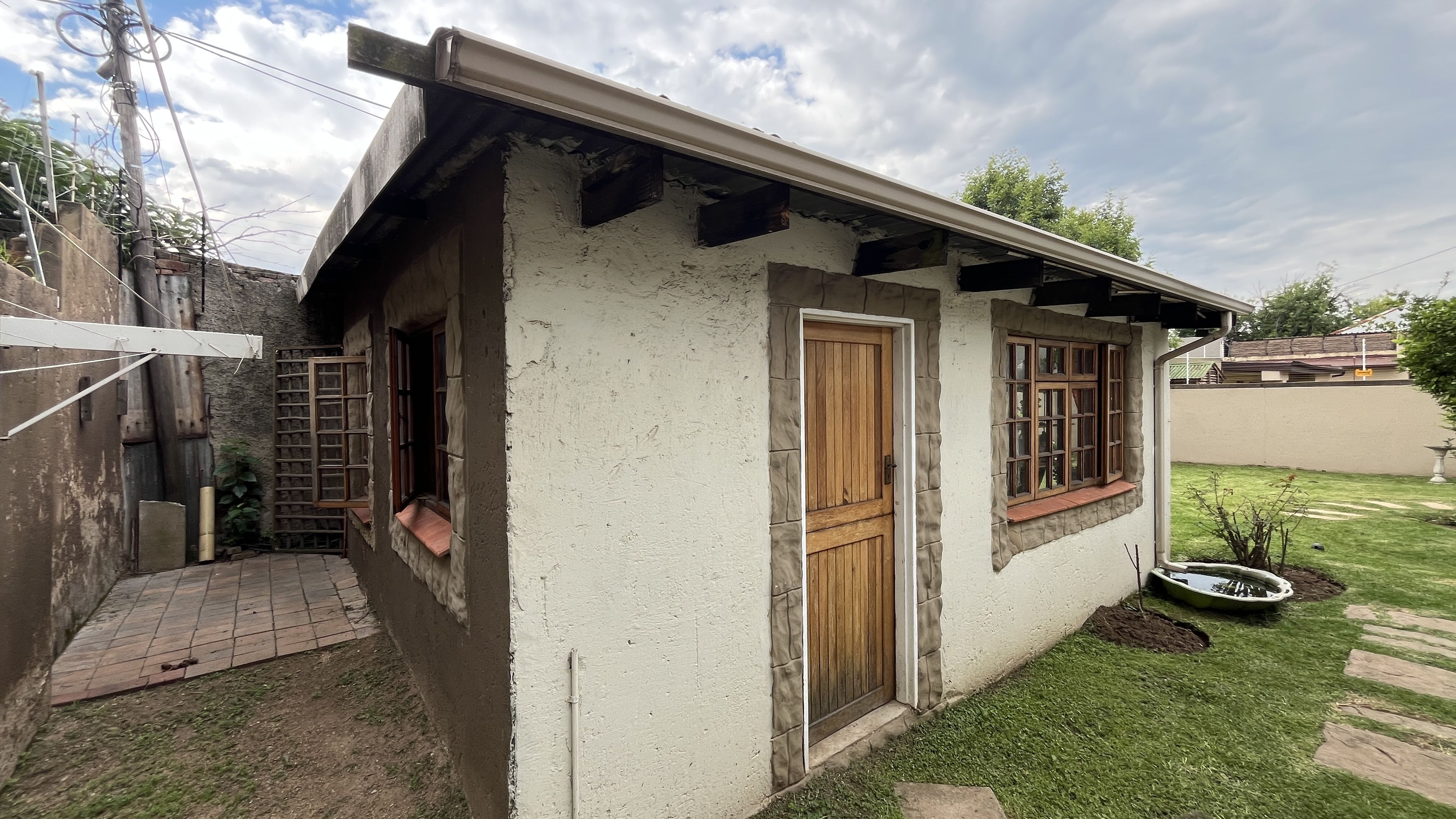 This enchanting retreat features a private main bedroom with en-suite bathroom and a second bedroom opening onto an enclosed entertainers' patio, perfect for gatherings or relaxation. The lounge and dining room each have a fireplace, with Oregon wooden floors adding warmth and romance. The tiled kitchen and bathrooms balance charm with practicality, while stone archways and French wooden doors add old-world elegance. A separate scullery leads to the back garden, enhancing the home's rustic appeal. The entertainment patio has a built-in braai and fireplace, ideal for dining or cozy evenings. A 1 bedroom student pad offers a lounge, stable-door entrance, and private bathroom, perfect for guests or a retreat. With three garages and parking for up to five cars, this home combines charm and convenience, ideal for those seeking a peaceful, romantic haven. Call today for an exclusive viewing.