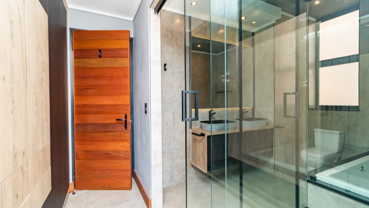 Apartments feature spacious open-plan living areas with 3060mm ceilings (3600mm in penthouses), seamless indoor-outdoor flow, and custom built-in braais for effortless entertaining. Premium finishes include Nero Ezee Quartz Caesarstone kitchen tops, European Oak vanities, matt black sanitaryware, frameless glass showers, concrete basins and designer lighting. Kitchens are fully functional with space for modern appliances, making these units ideal for both owner-occupiers and rental investors.