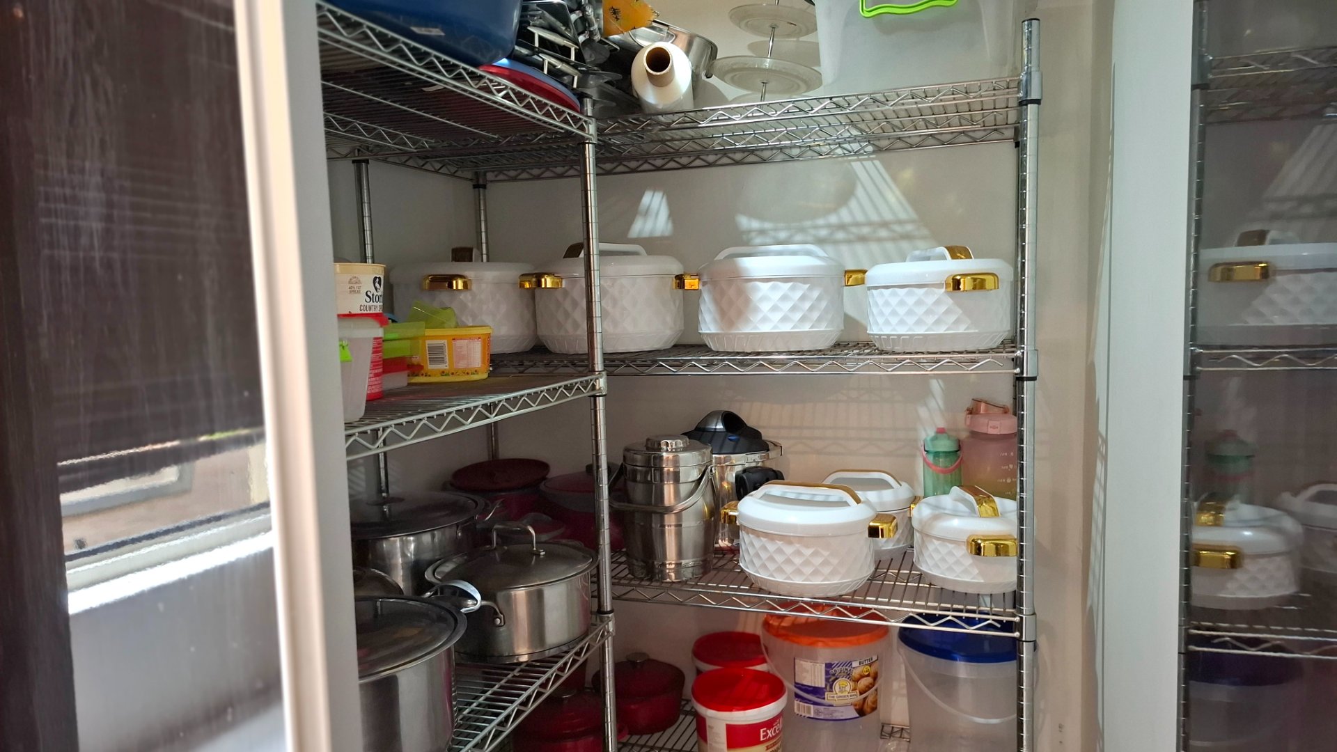 Modern open plan kitchen with a Caesarstone Breakfast nook, Modern stove and eye level oven and a large pantry, fitted with wine racks, cupboards, and special unique features.