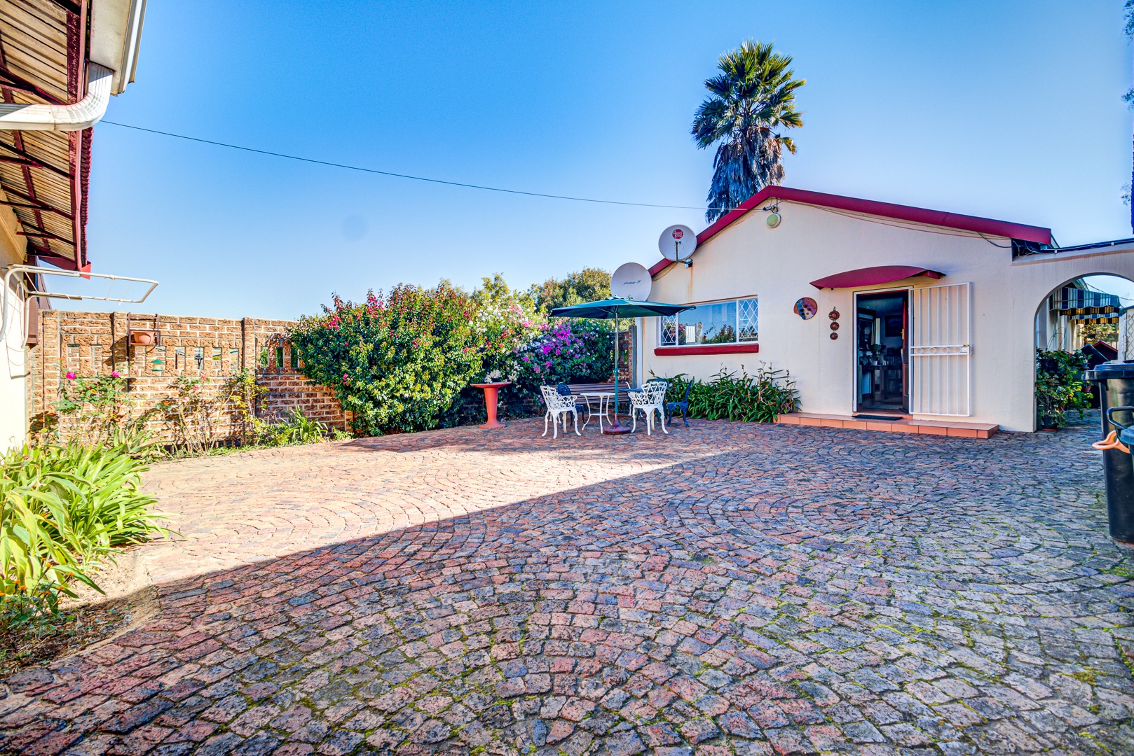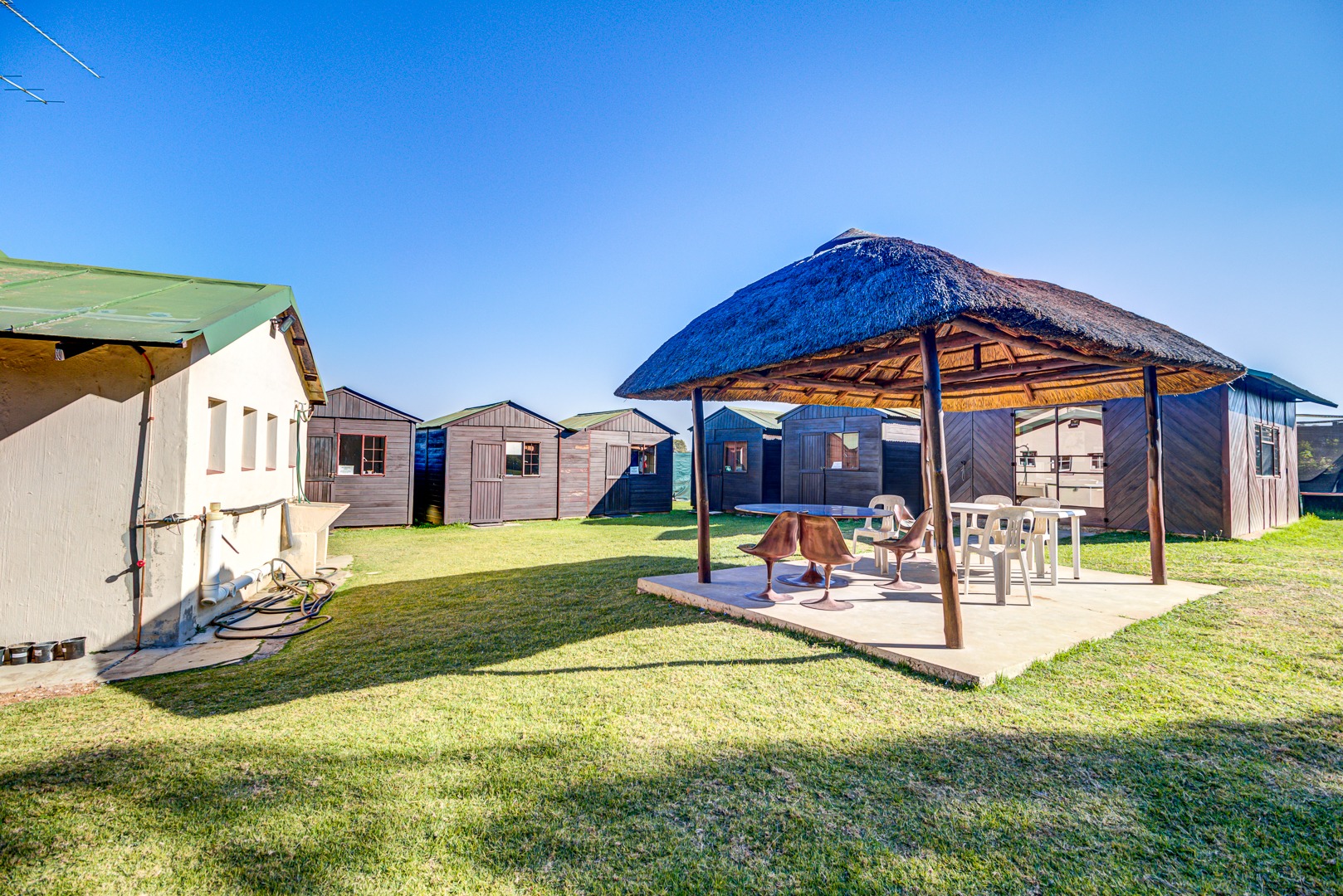 Currently this dynamic plot is home to a large residence with 3 cottages and a rondavel which previously homed a school. There are 2 separate entrances to this plot for easy and convenient access to all.