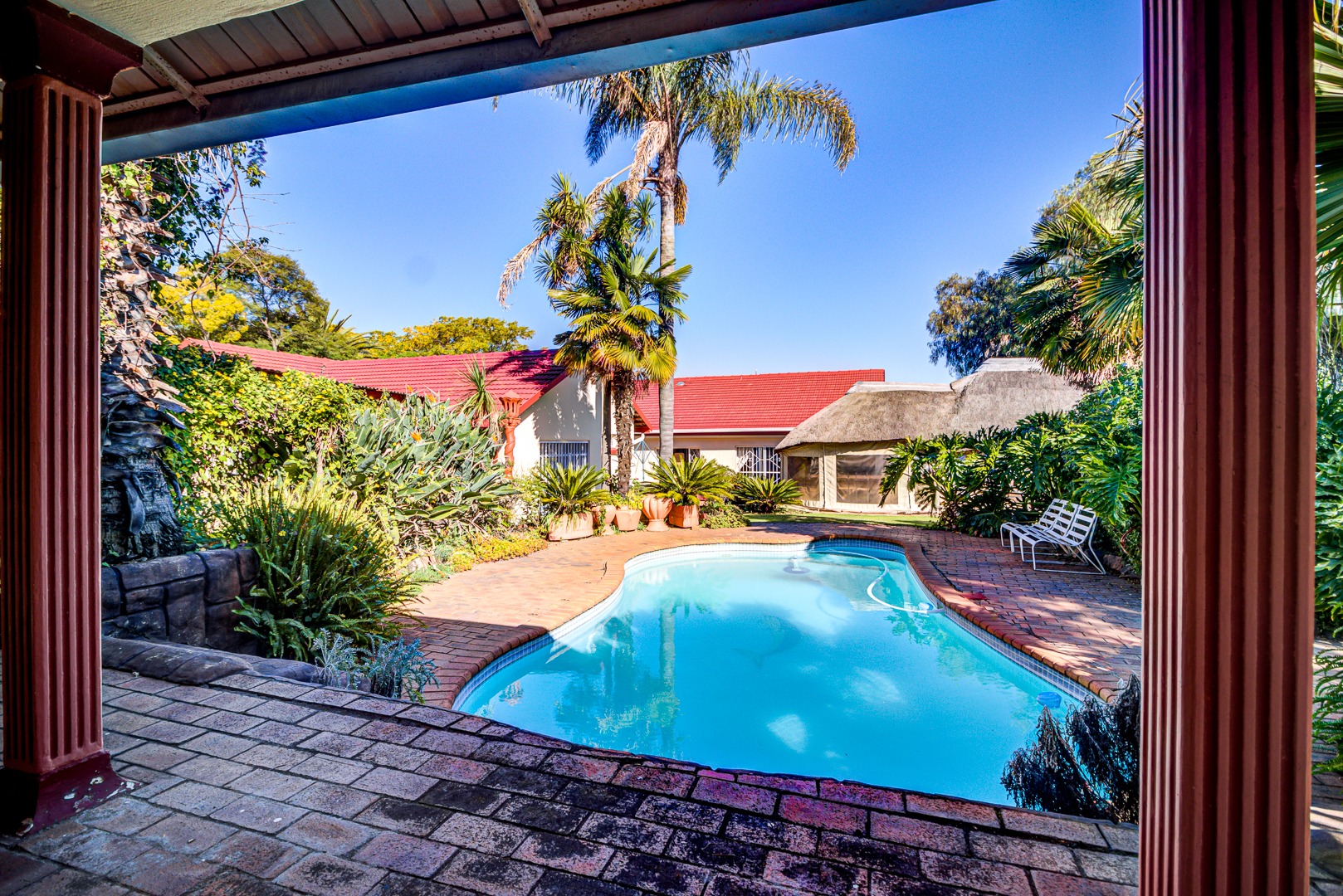 Pool with large lapa (Built-in braai with pub. Enclosed with aa-weather proof blinds)