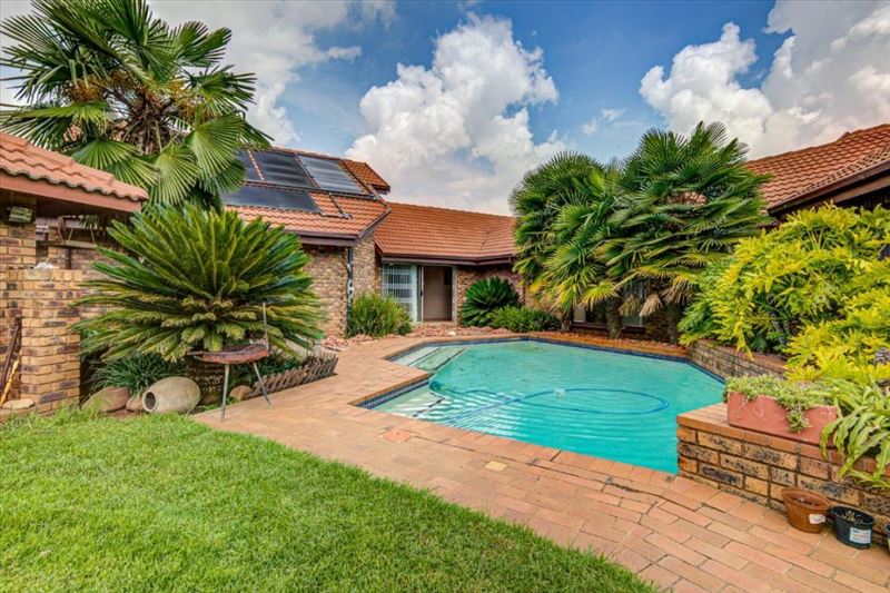 This large family home offers 4 bedrooms, 3 bathrooms (including 1 en-suite), and a guest loo, with solar geysers in both main bathrooms for energy efficiency.