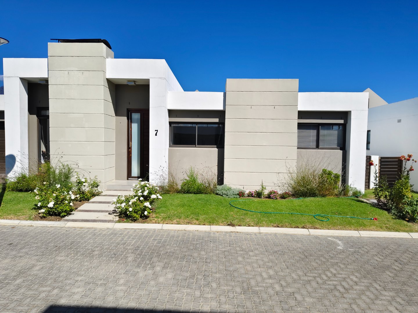 The La Petite gated estate is located in Genl Hertzog Boulevard opposite one of the more prominent schools in Wellington. It is a boutique estate with only 11 properties. The homes offers a modern design with luxury interior fittings. It is a single-storey residence with a dubble garage. The three bedrooms are sizeable and can fit double beds. The master bedroom has an en-suite with double vanity basins the other two bedrooms are serviced by a separate bathroom.