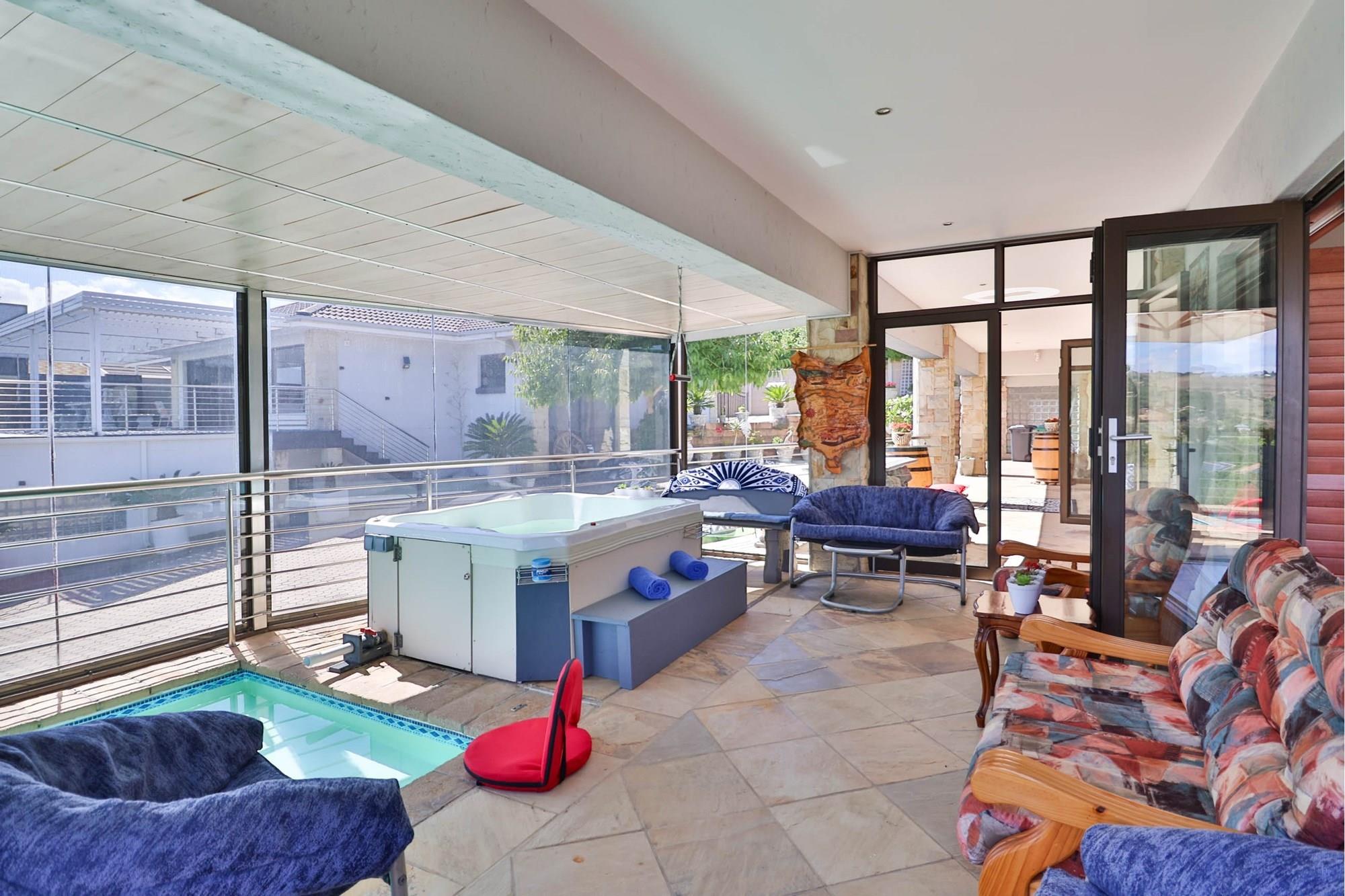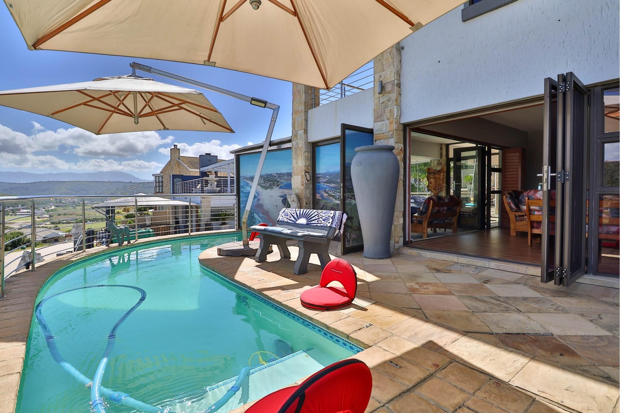 Splash pool with filtration and salt chlorinator with capturing views of the of the valley and great Brak River.