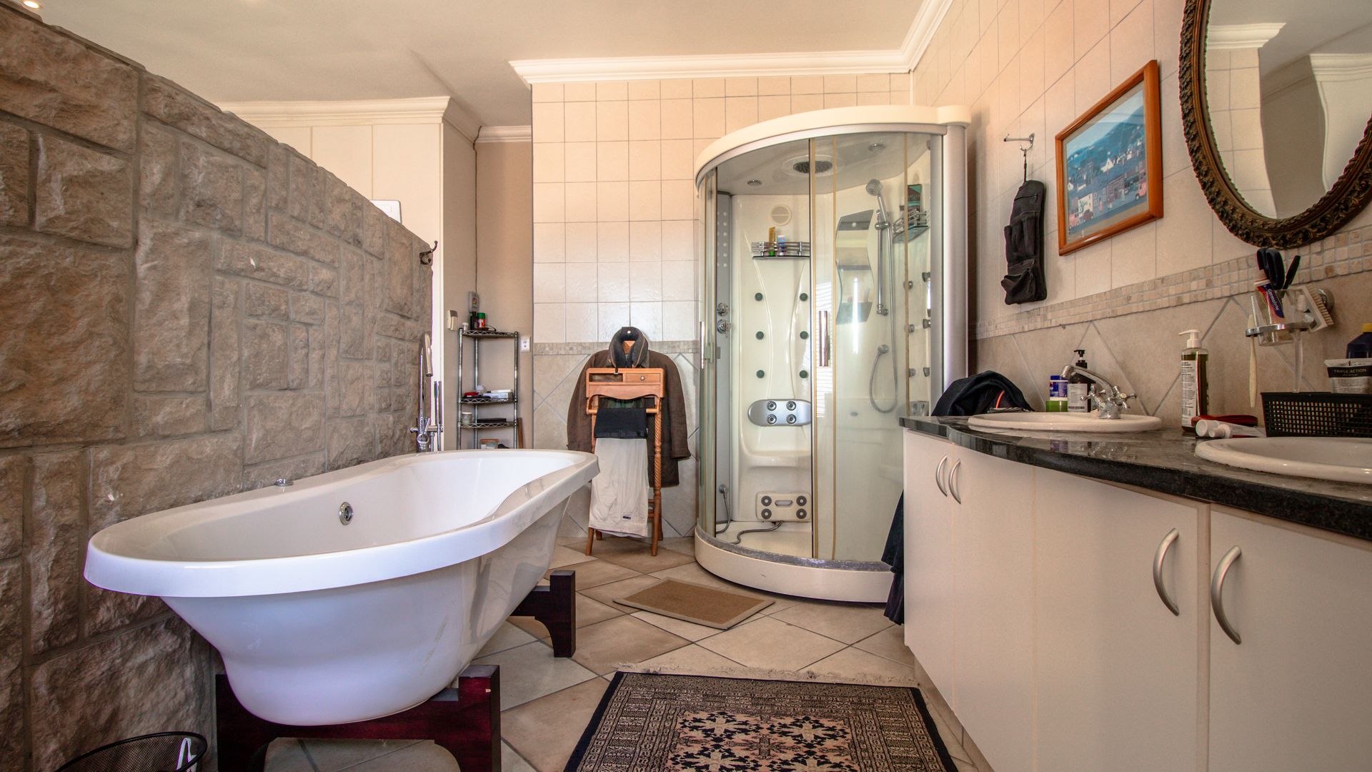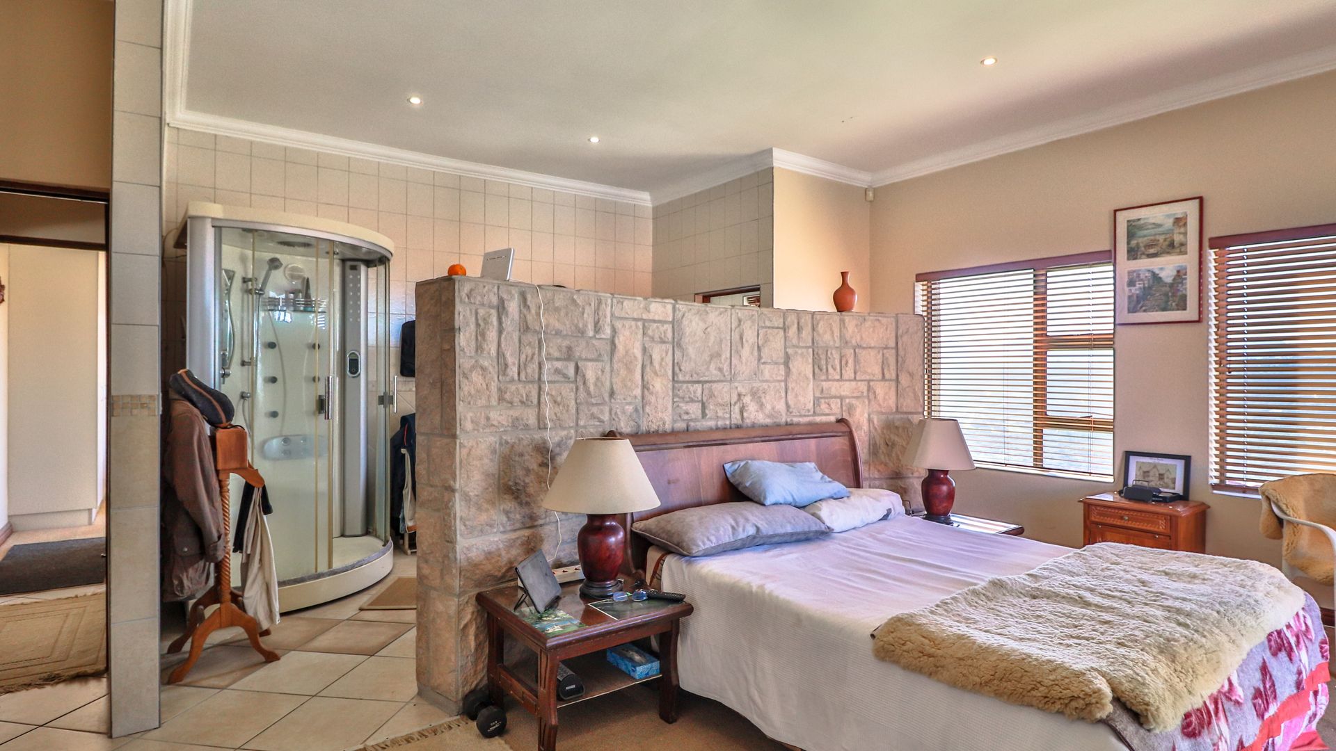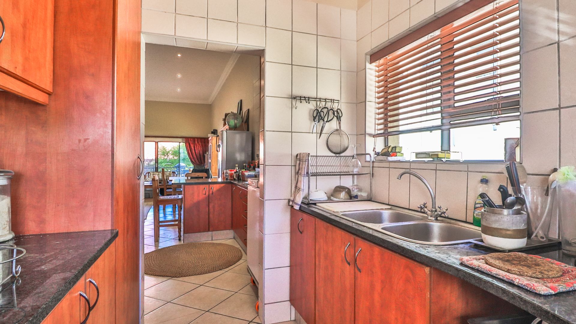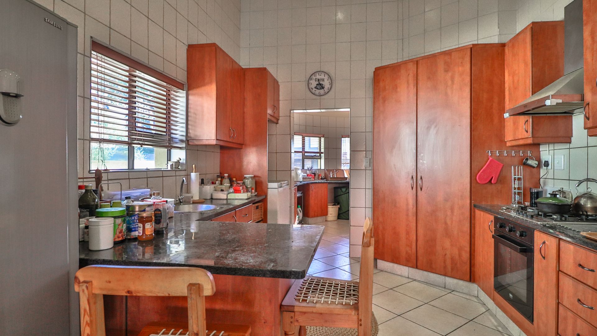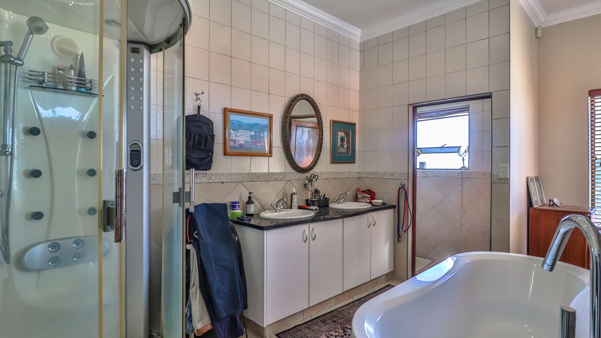 Upon entry, you are greeted by a spacious open-plan living and dining area, bathed in natural light. The modern kitchen is a true heart of the home—stylish and functional, with a fully equipped scullery and dedicated laundry area to keep everything in its place. A sliding door opens onto a covered stoep with a built-in braai, making this the ideal space for relaxing or entertaining while enjoying the slight ocean view.